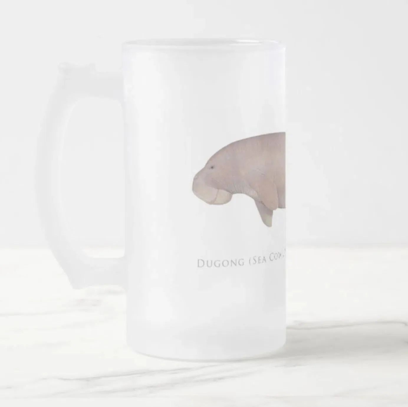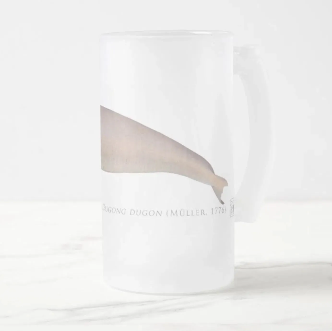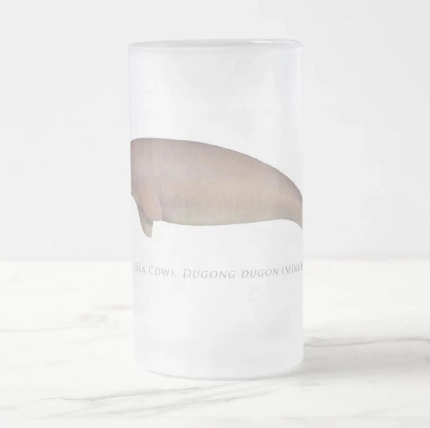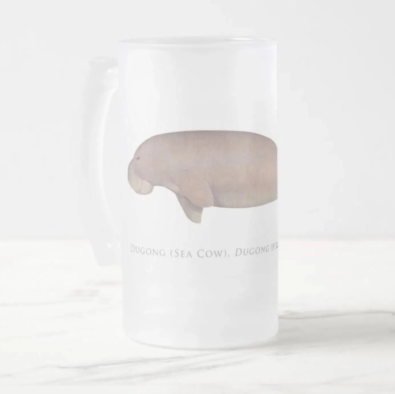 Dugong-lovers, say cheers to marine wildlife with this scientifically accurate illustrated Dugong stein. Crafted from frosted glass featuring a detailed illustration of a Dugong by marine biologist Dr. Lindsay Marshall, this unique marine mammal drinking vessel will make you smile every time you reach for a beverage while bringing a bit of the sea into your home. 16 ounces of fun for the wildlife enthusiast.