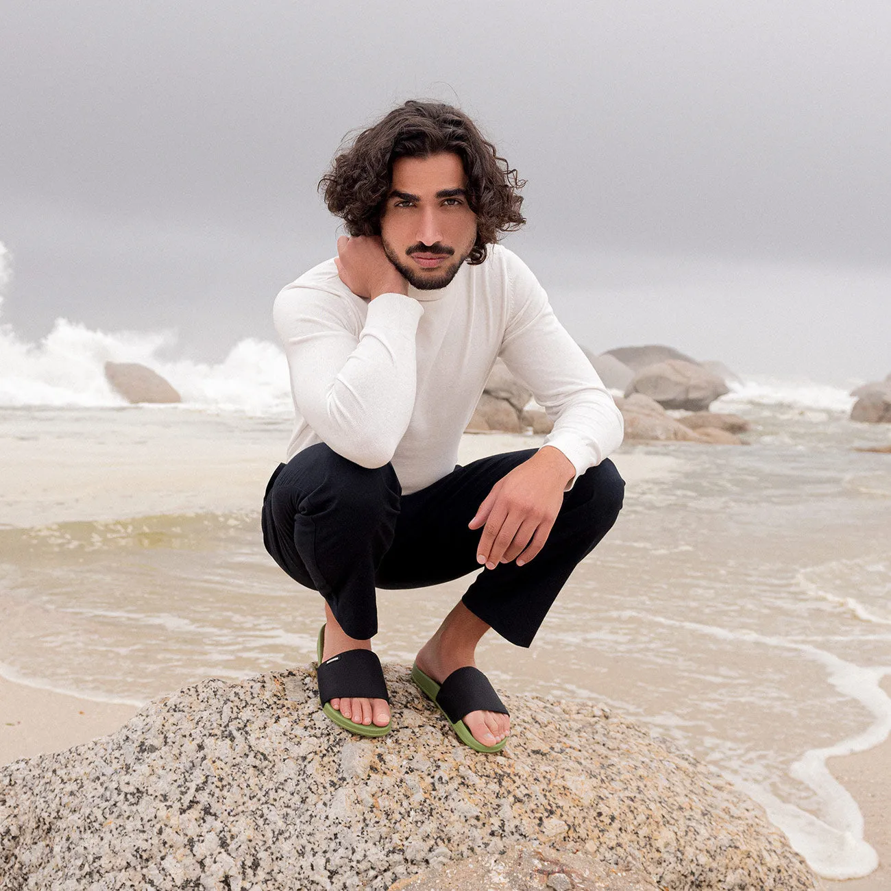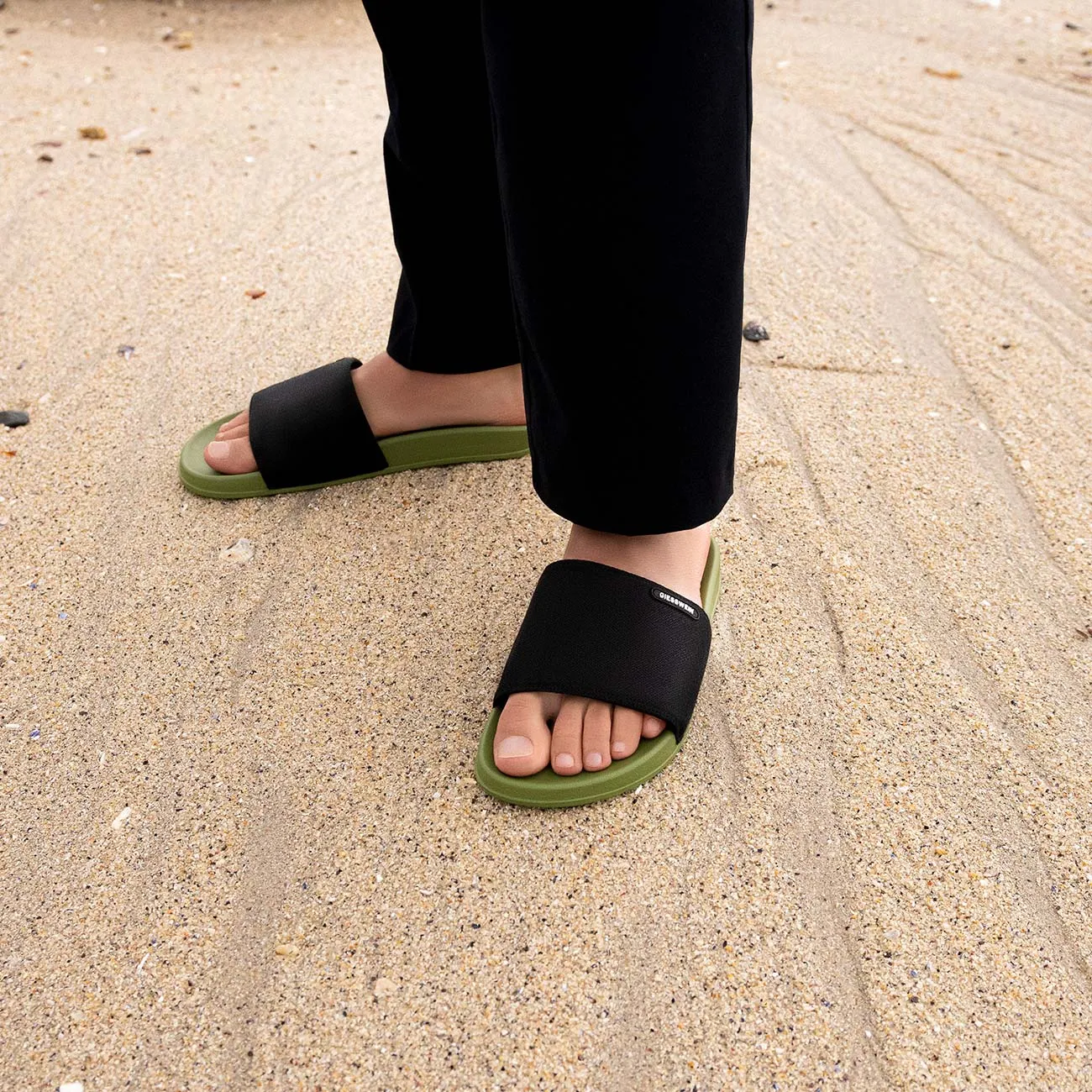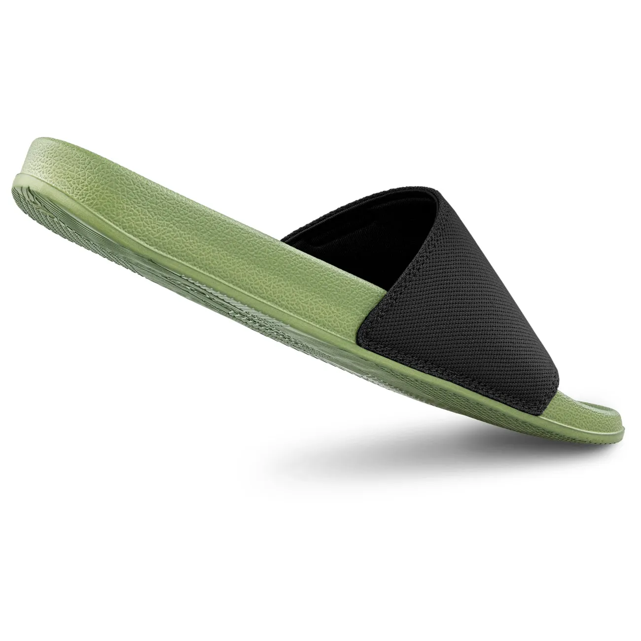 Stand out in the crowd and be part of the green scene with our Eco Slides. Perfect for summer days, whether it’s holidaying or a city stroll. Our Eco Slides are made in part with algae extract which gives their sole an incredibly eye-catching and distinctive green hue, the ultimate in casual unique footwear! The upper is made using recycled PET with our signature 3D knit technology for incredible comfort and durability. Sculpted sole made from a combination of EVA and Algae, environmentally friendly and comfortable with a distinctive green tone.