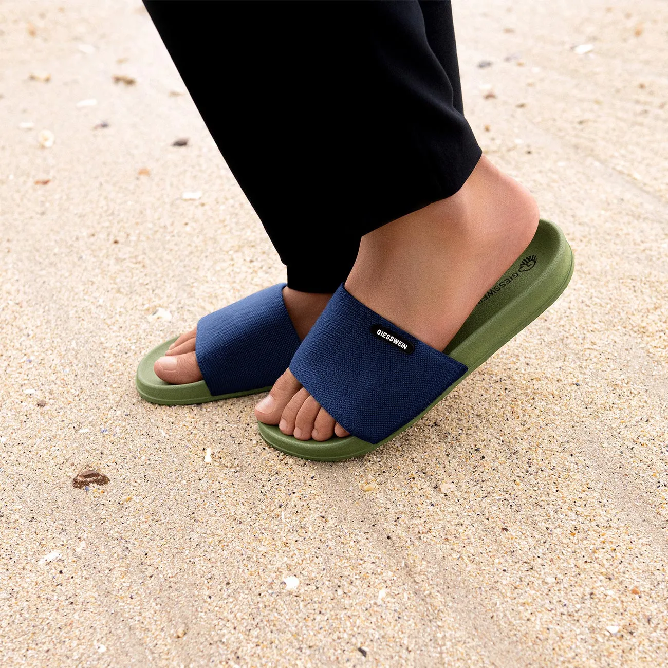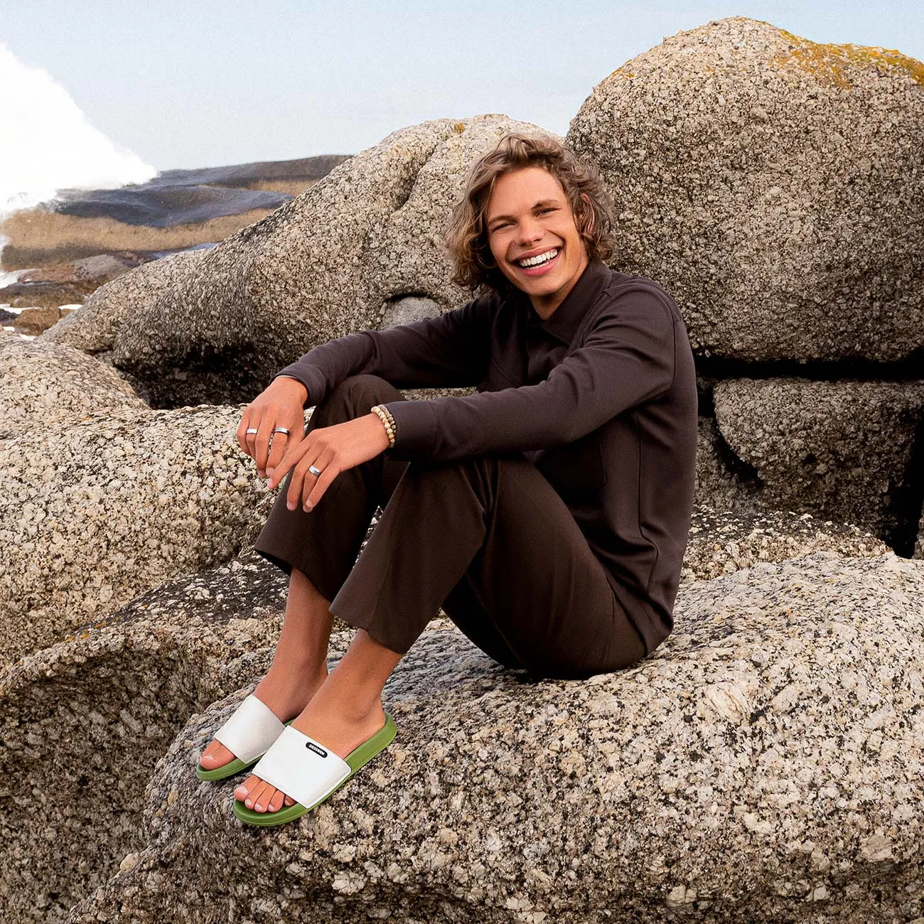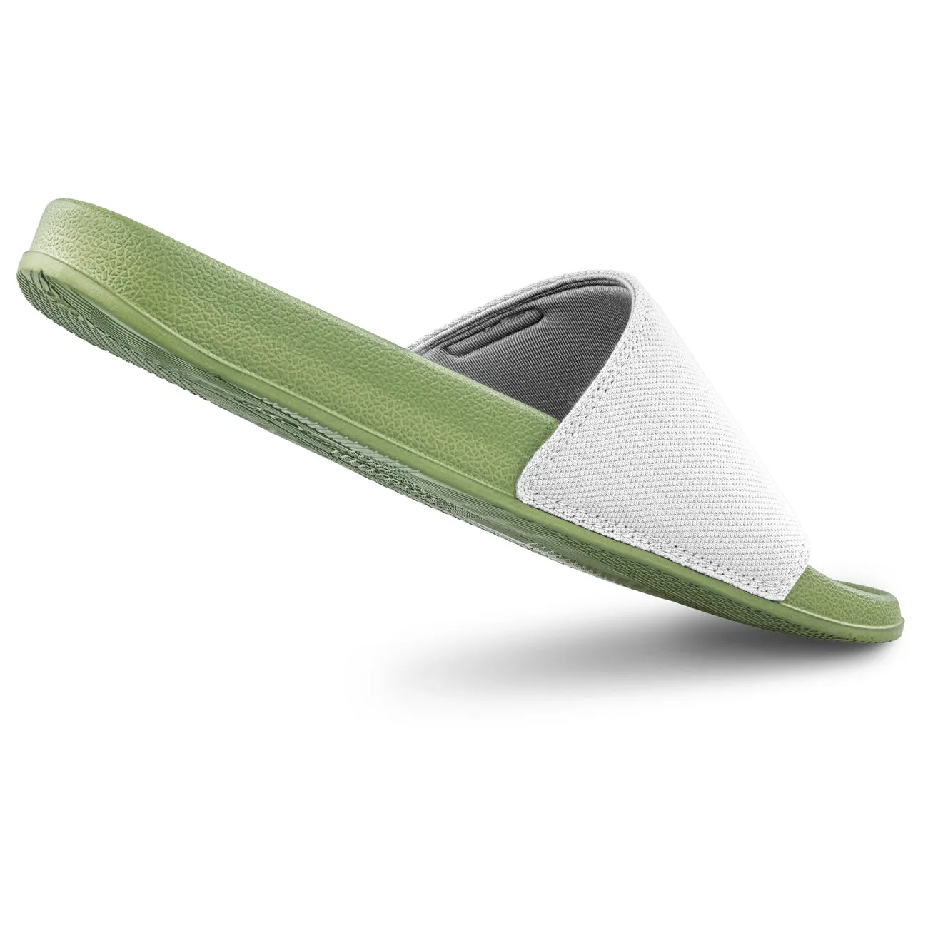 Stand out in the crowd and be part of the green scene with our Eco Slides. Perfect for summer days, whether it’s holidaying or a city stroll. Our Eco Slides are made in part with algae extract which gives their sole an incredibly eye-catching and distinctive green hue, the ultimate in casual unique footwear! The upper is made using recycled PET with our signature 3D knit technology for incredible comfort and durability. Sculpted sole made from a combination of EVA and Algae, environmentally friendly and comfortable with a distinctive green tone.