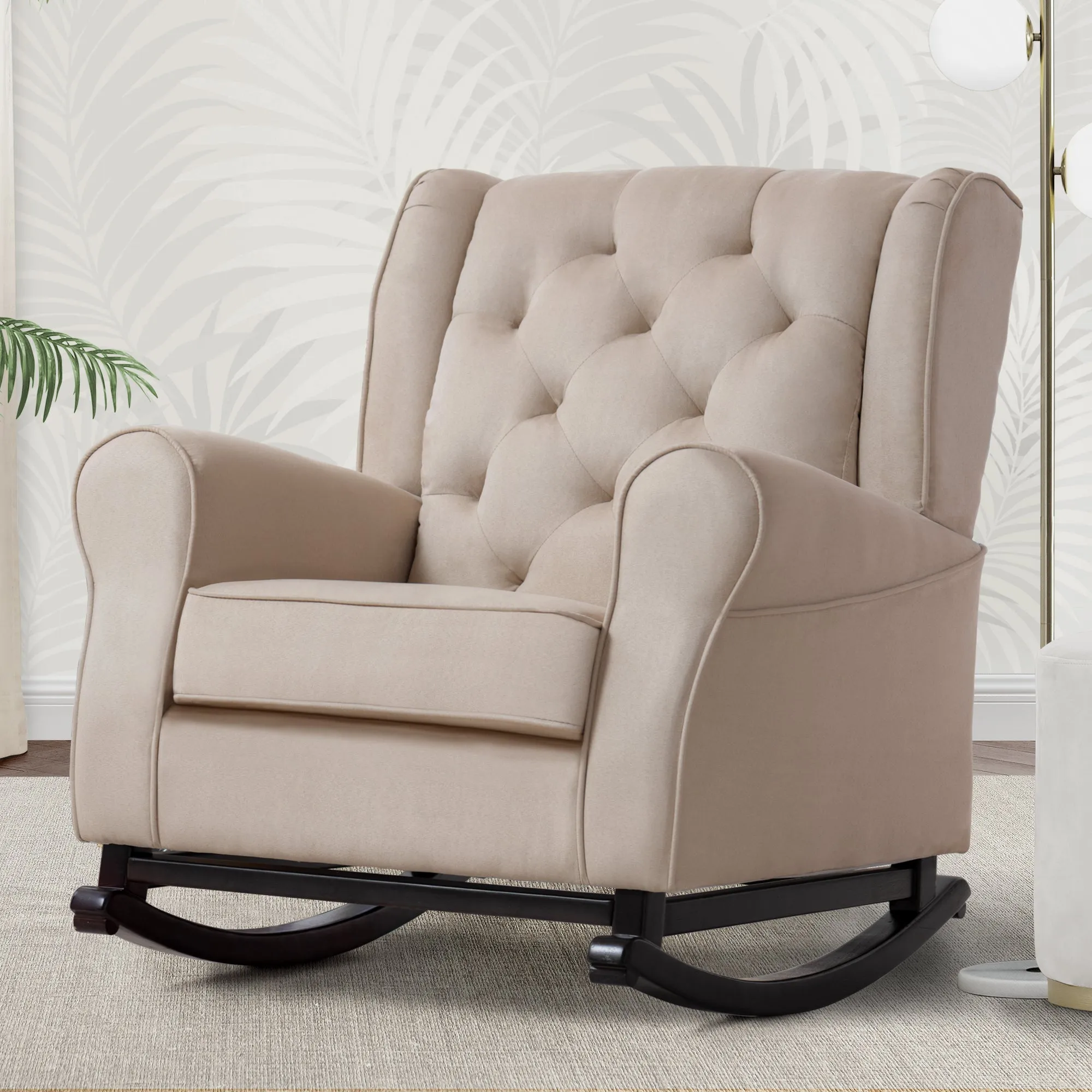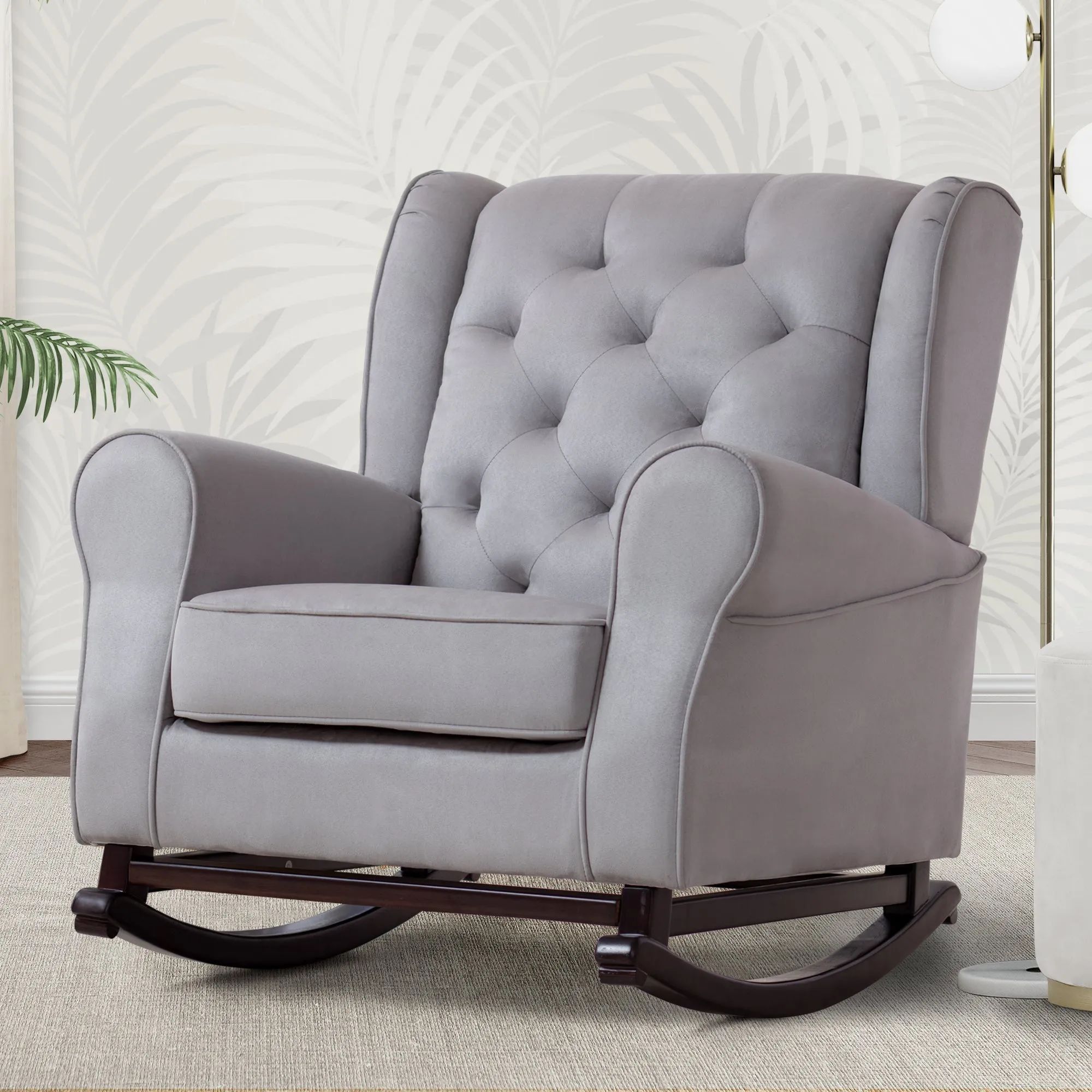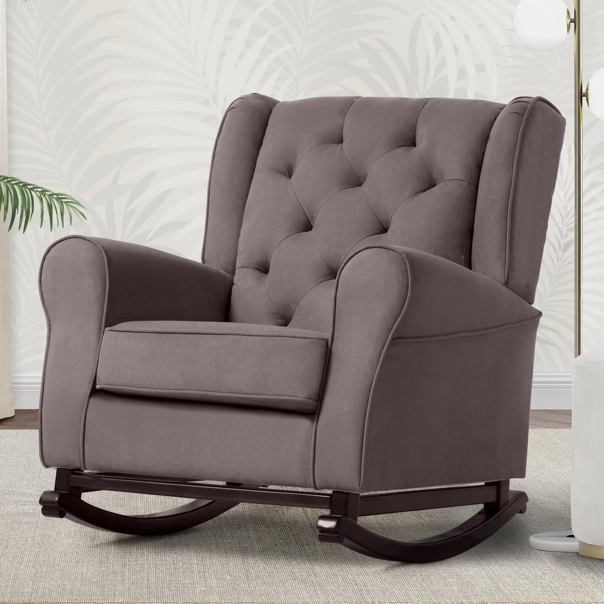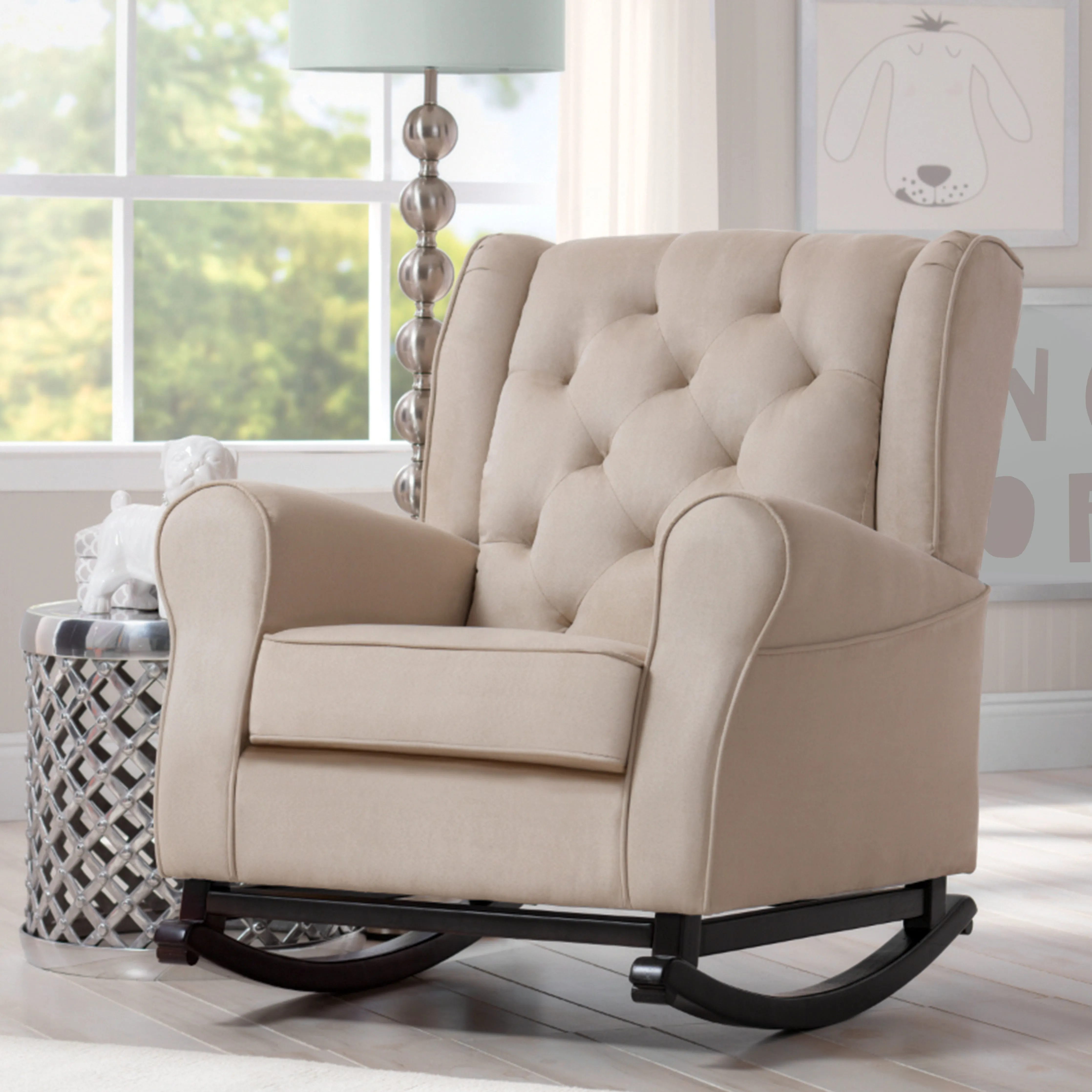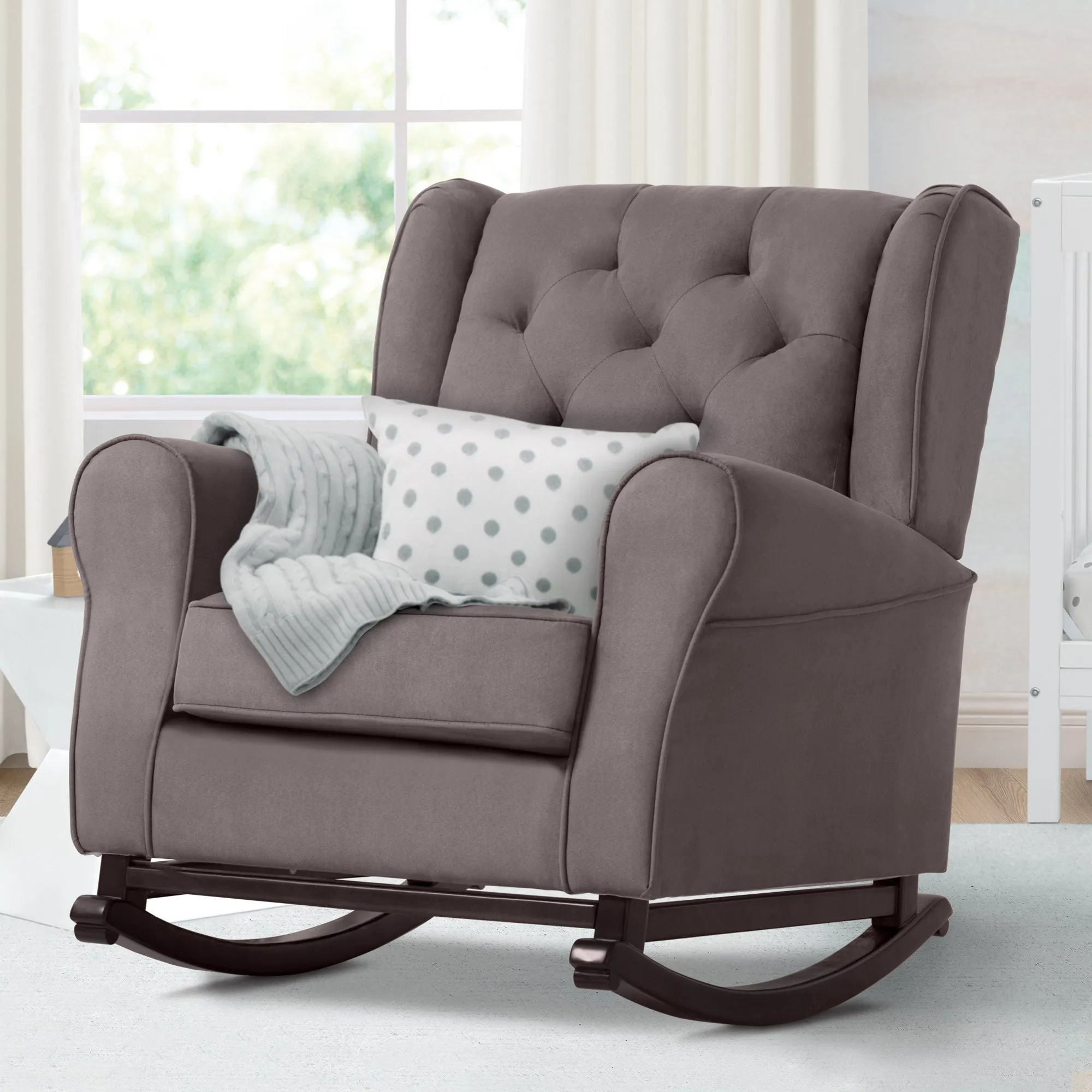 Your baby's new nursery won't be complete without a plush rocking chair, and the Emma Nursery Rocking is the perfect way to finish the space. Crafted to comfort tired babies and parents, this chair features a thickly padded seat cushion and armrests, plus it sits above wood rocker feet that create a smooth swaying motion. Its classic styling allows for it feel right at home in a nursery, living room or any shared space that needs a cozy spot.