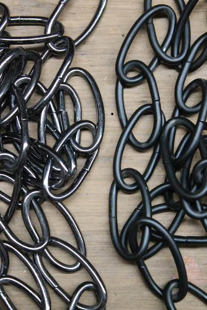 - Chain suspension with black protruding twisted cloth cord. Supplied with black chain.