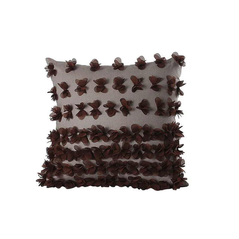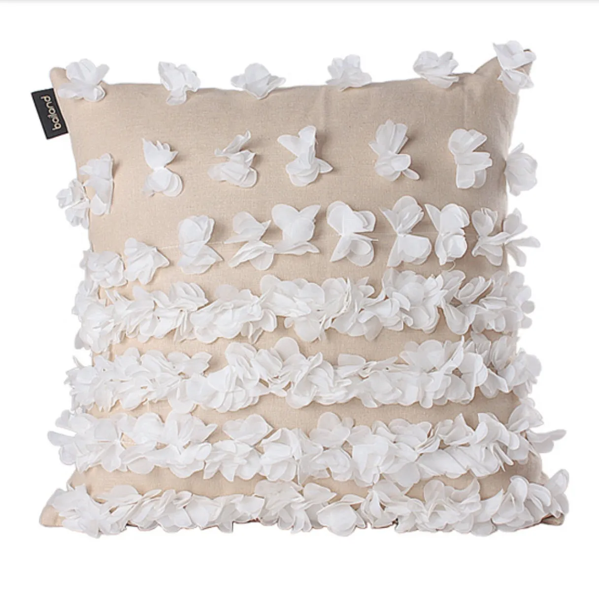 Give a room a quick makeover with the addition of this Frilly Cream and White Throw Cushion. It is in a neutral shade of beige and white so it will go perfectly well with just about any room color motif or design theme. Great when placed either against a dark-colored velvet sofa or a minimalist bedscape. You will also love this pillow's tasteful frilly flower style and linen fabric that's guaranteed to add texture and interest to any space. Available with white or brown flowers.