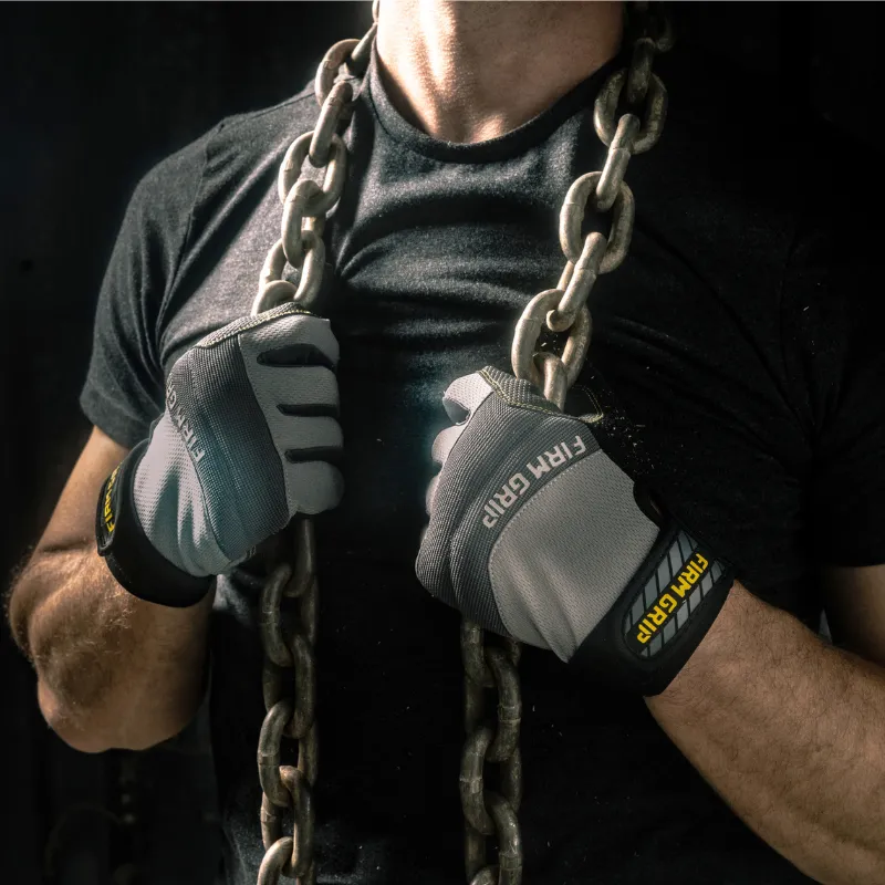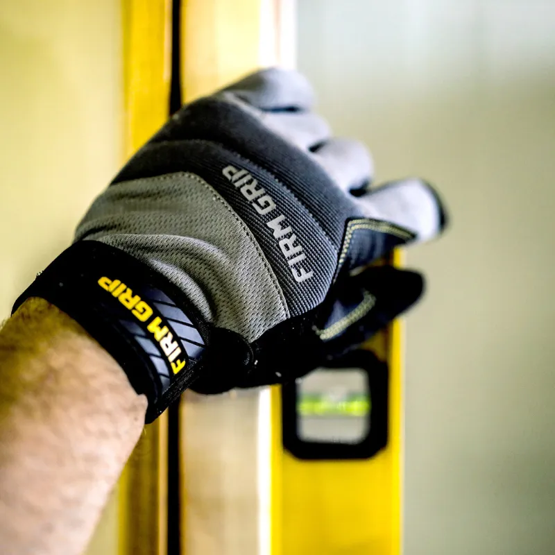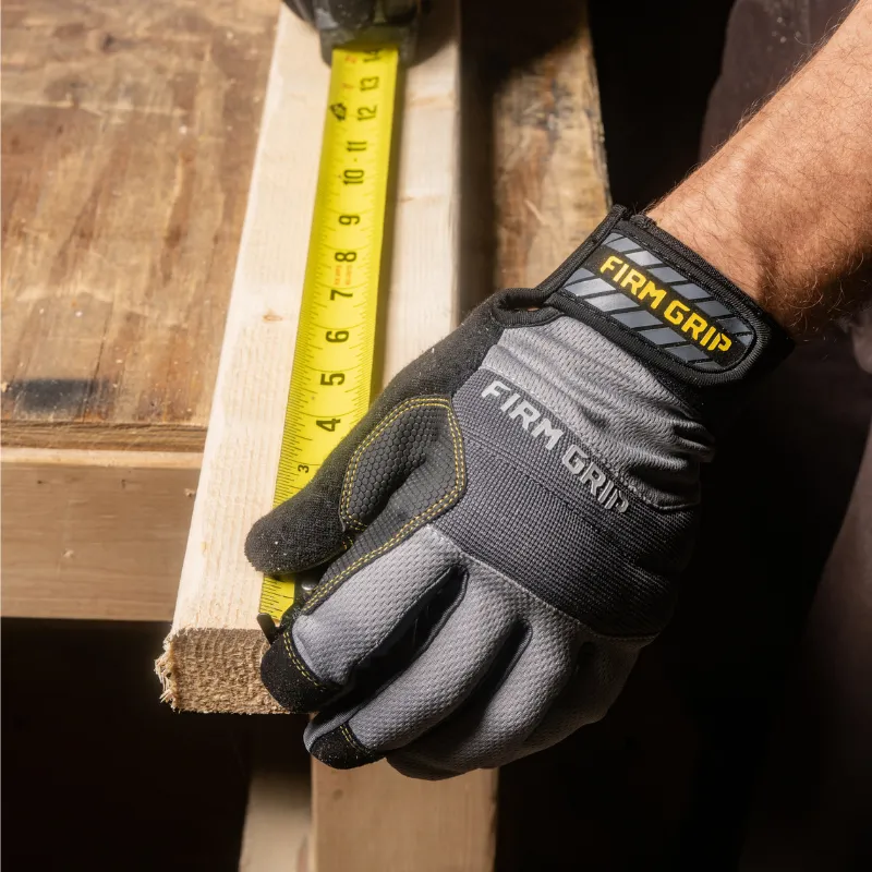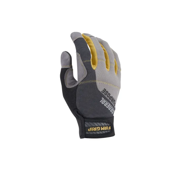 A trusted, high-performance design and the go-to glove for a wide variety of projects, Firm Grip General Purpose work gloves are reinforced to protect your hands while providing an extremely comfortable fit for all-day use. Tough synthetic leather and a grip-enhanced palm let you confidently and safely handle everything from large power tools to small parts requiring precision and dexterity. These versatile work gloves also feature stretch panels between the fingers that breathe for enhanced comfort and padded knuckles for improved protection.