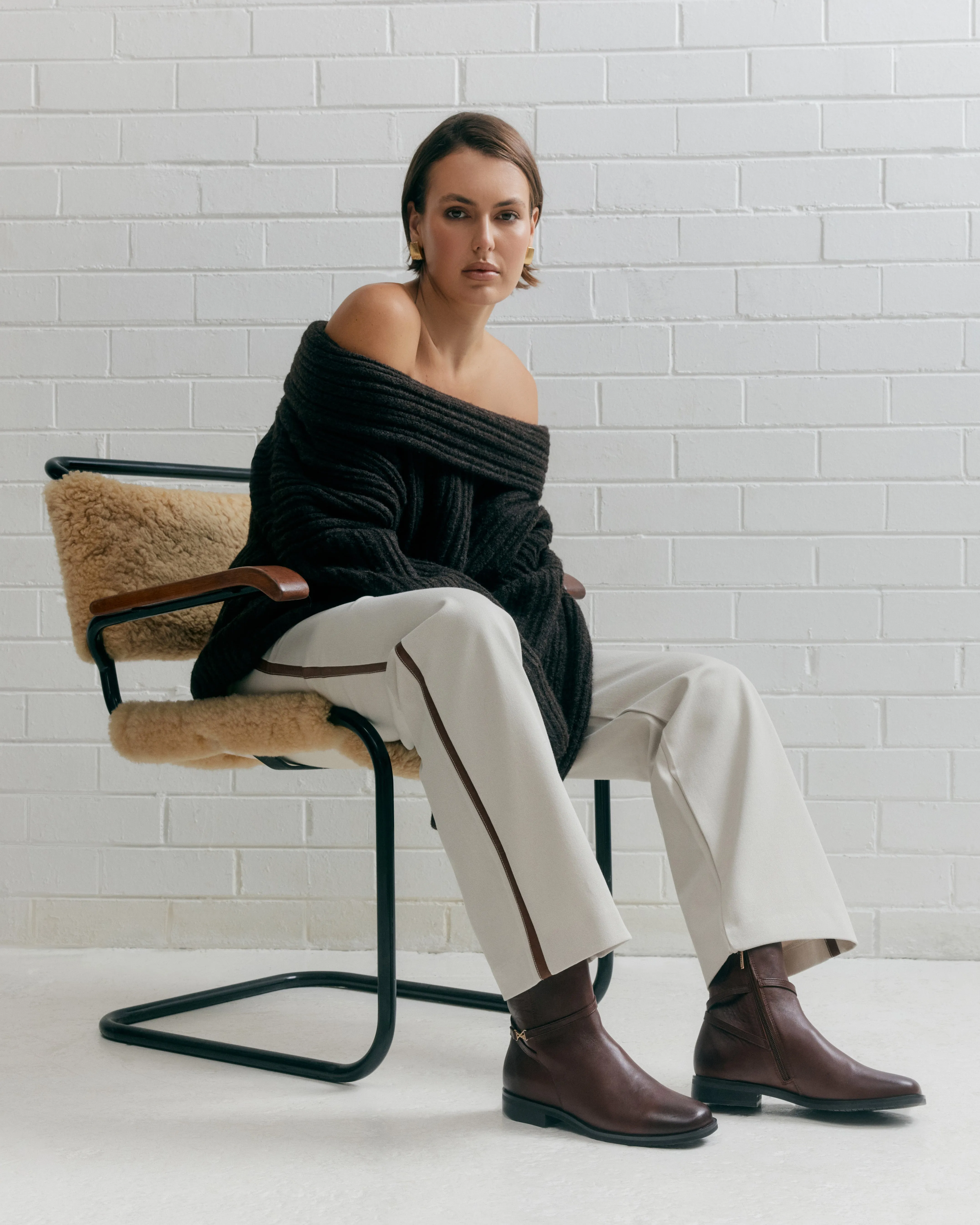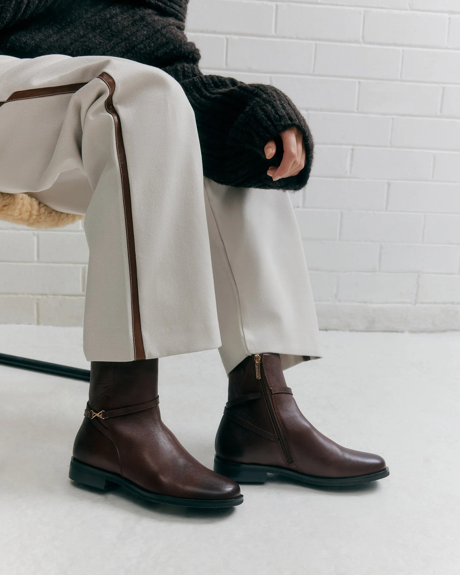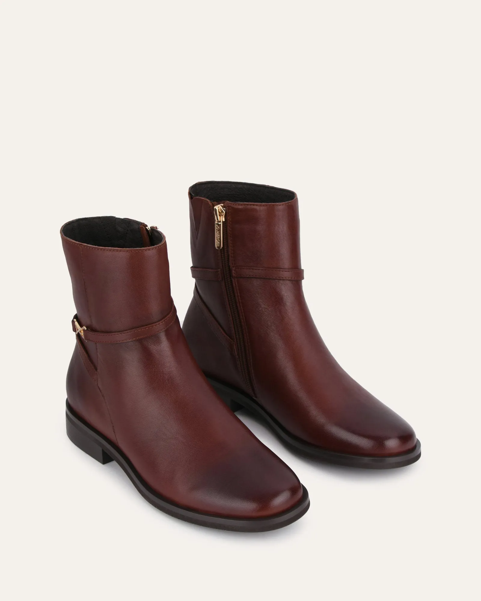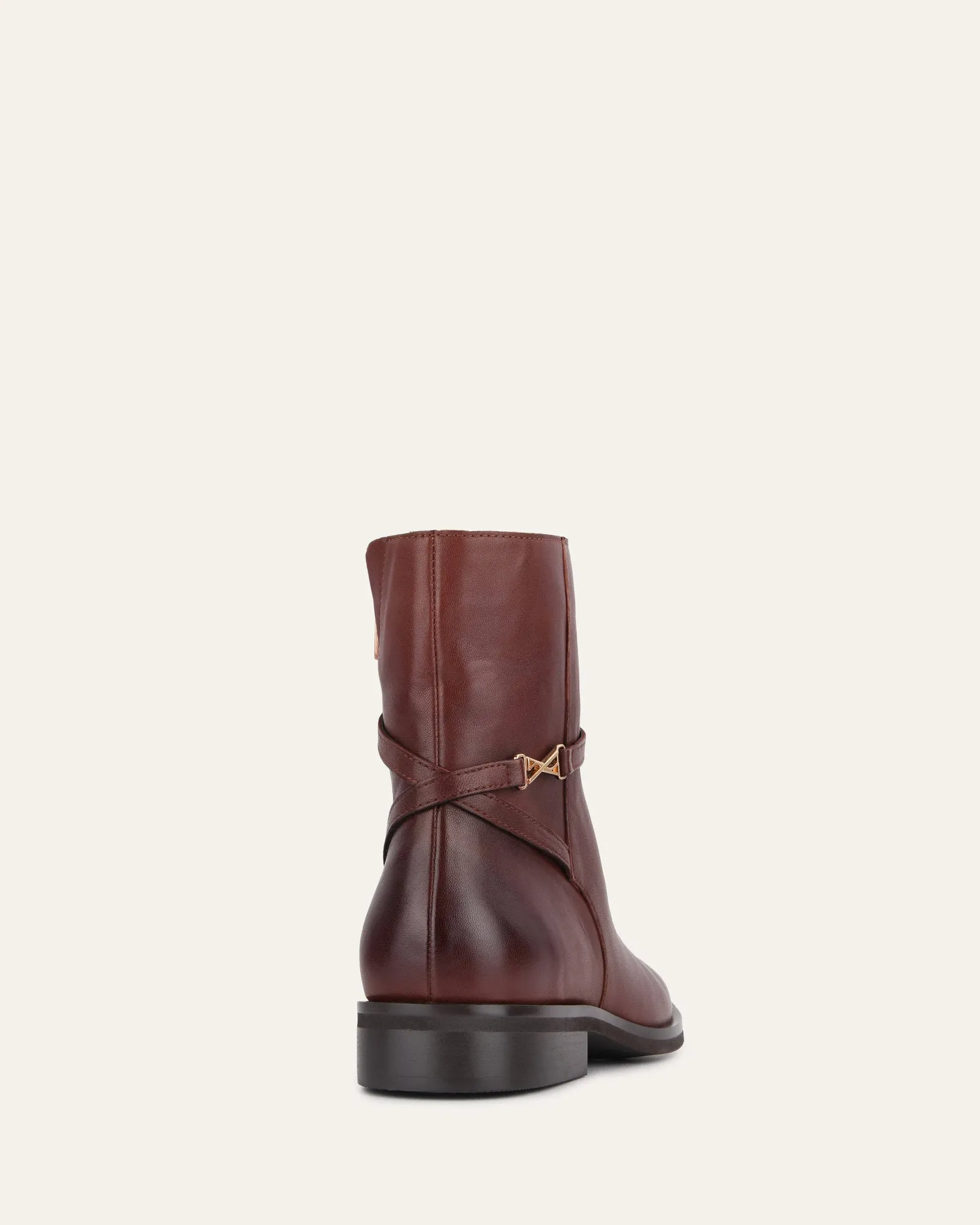 Build on your capsule wardrobe with GILBERT. Crafted from a soft calf leather, hidden elastic v-gusset and softly rounded toe shape for the perfect ankle boot. Match your accessories to the soft gold metallic tone hardware to the wrap around leather ankle strap.