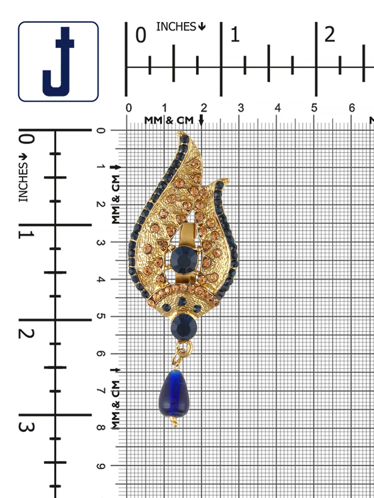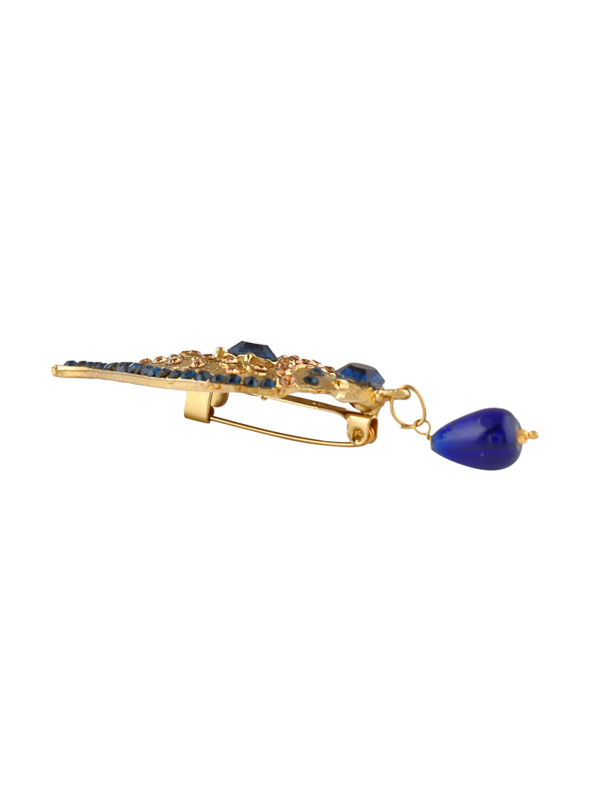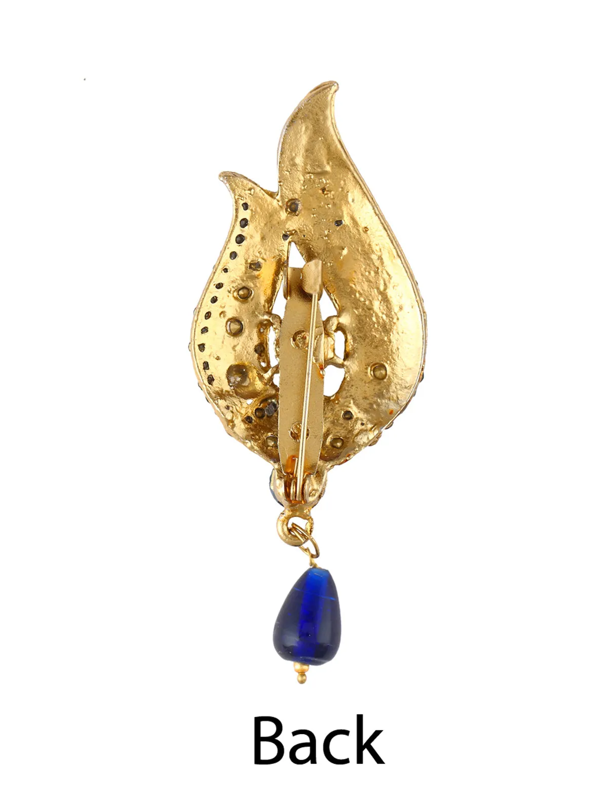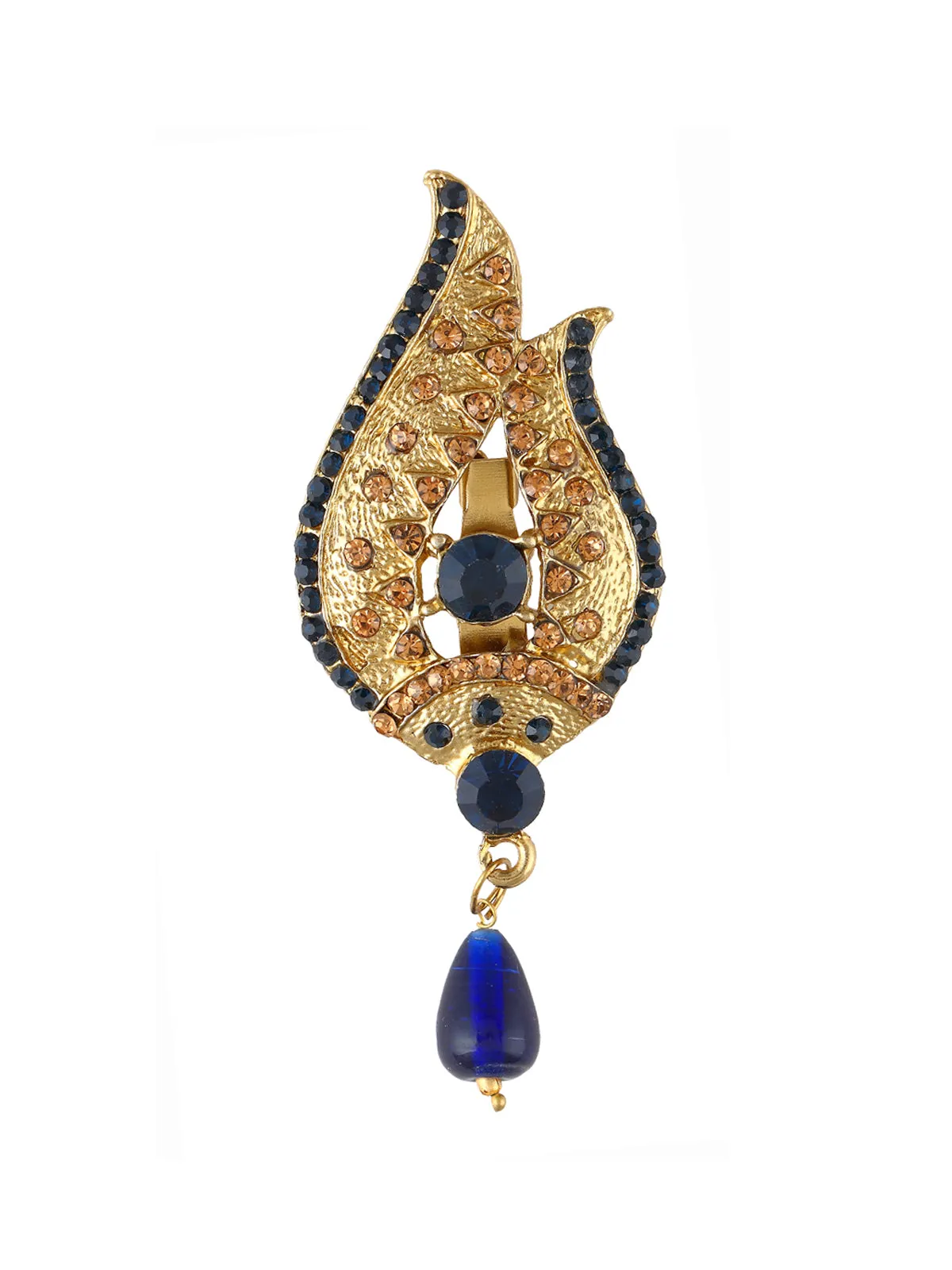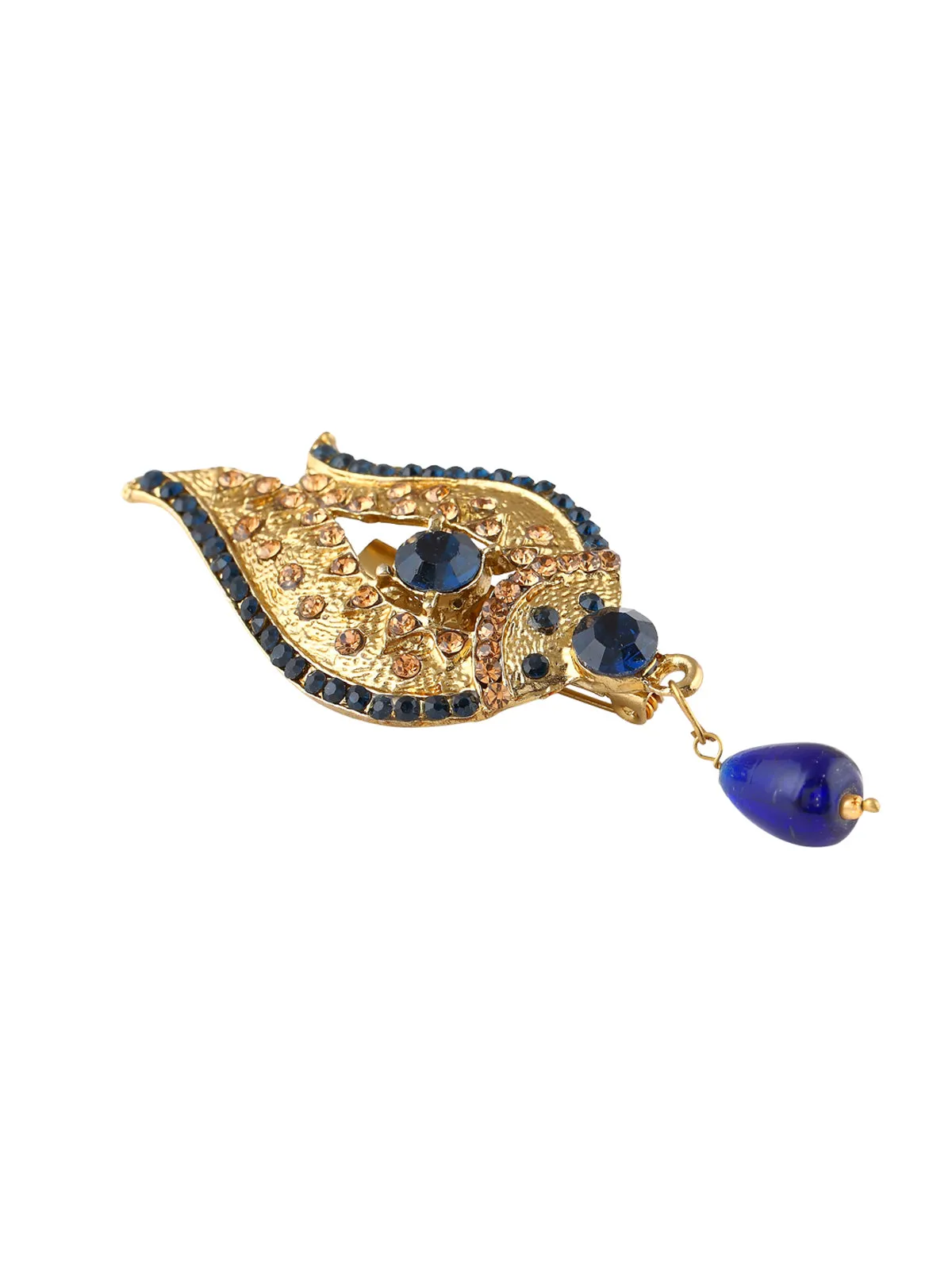 Leaf design antique gold with a navy blue color diamond brooch with a pearl hanging is a must-have brooch in your jewelry collection which will add that extra touch of ethnicity to all your Indian design wear.