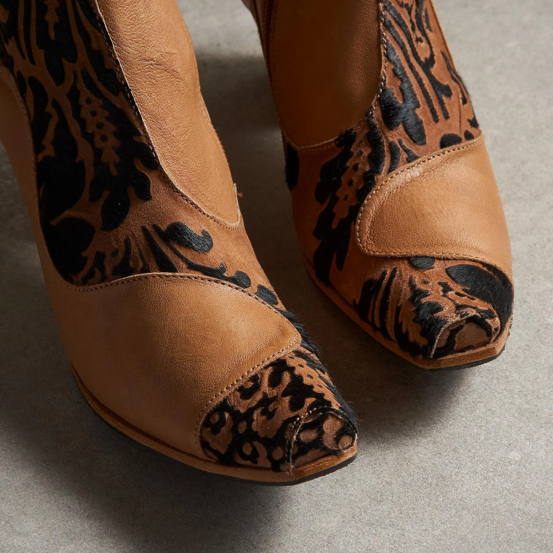 Western-inspired, textured, paisley pattern adorns these exquisite, leather boots with distinctive overlays, snipped toes, and inner, side zippers. Imported. Euro whole sizes 36-42. 36 (US 6), 37 (US 7), 38 (US 8), 39 (US 9), 40 (US 10), 41 (US 11), 42 (US 12). 2' heel.