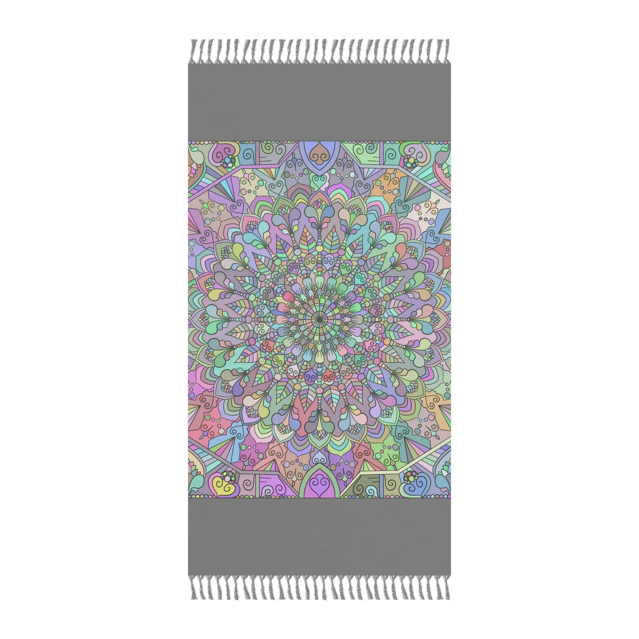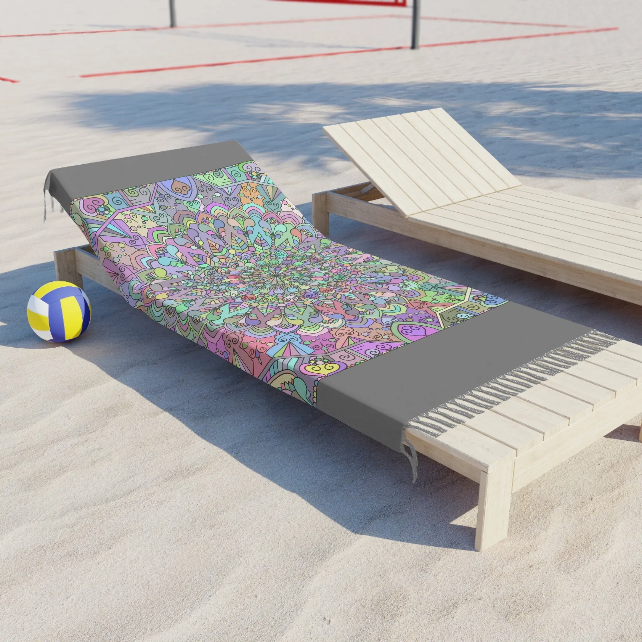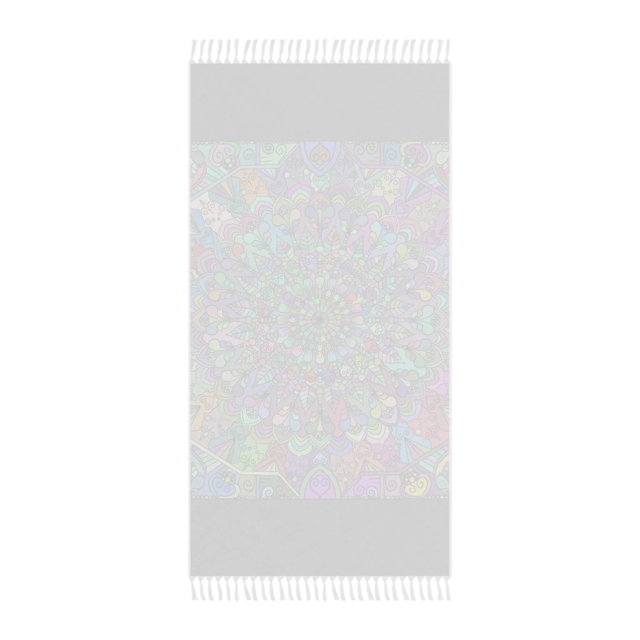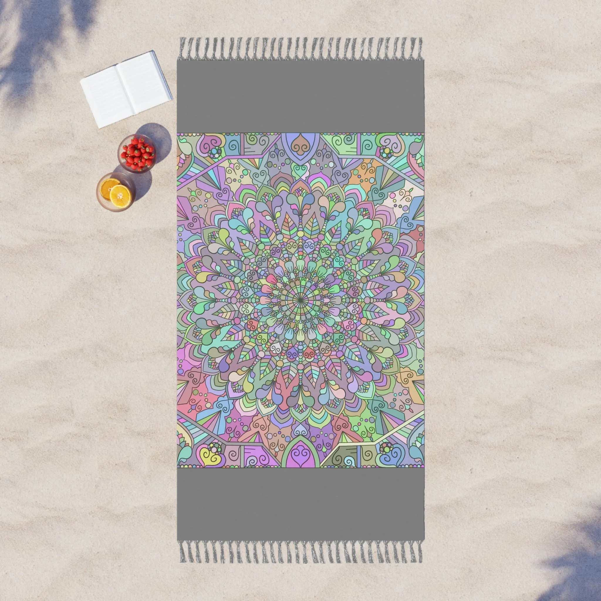 Enhance your beach day or outdoor escapade with our exquisite boho beach cloth, featuring handmade, intricate mandala artwork. This original piece of fine art shines with a lovely mandala design in light gray and pastel hues, promising to turn heads and make you shine wherever you are.