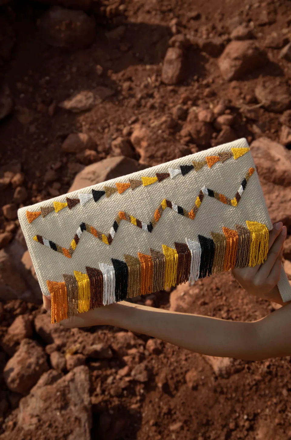 The Handwoven Fringed Clutch was designed to combine The Wixarika culture and beliefs into your everyday life. Each bag was individually Handcrafted by our artisans and includes very intricate crystal beading fringes and designs around the beautiful bag.