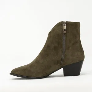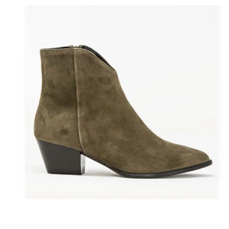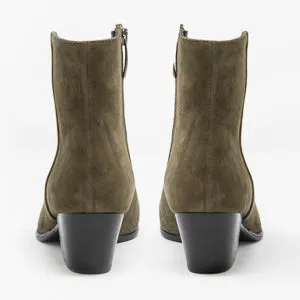 The new Autumn boots have arrived. Set on Cuban heels, they are crafted from khaki suede and pointed toe. These boots are a wear with anything style and you can wear them through the year. Team them with jeans or a statement dress.