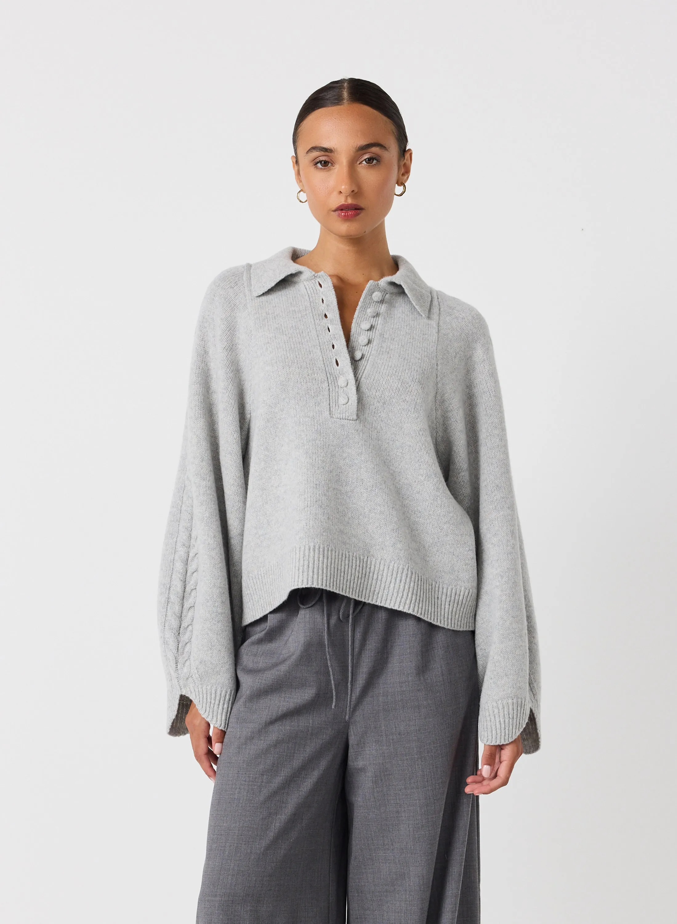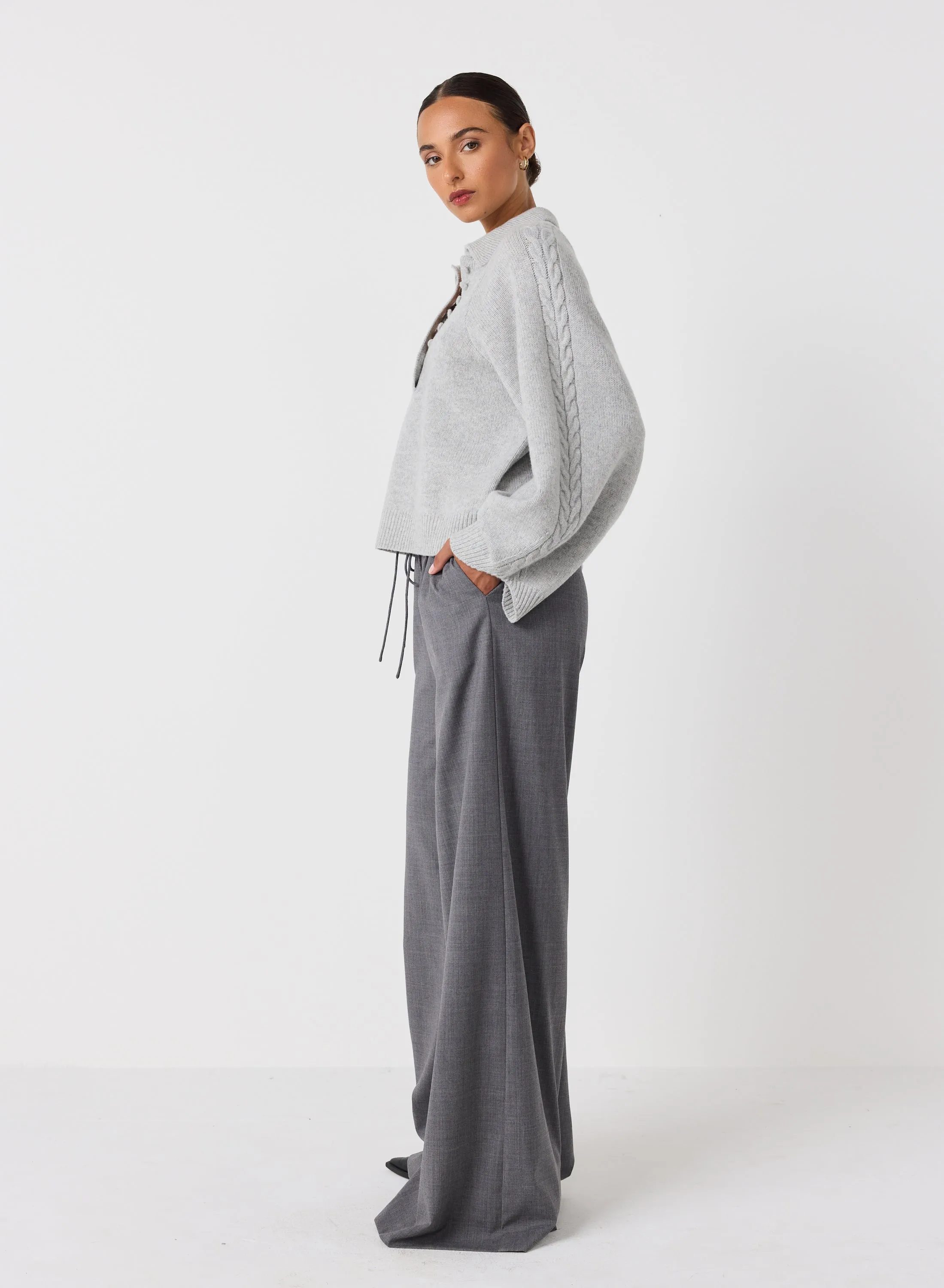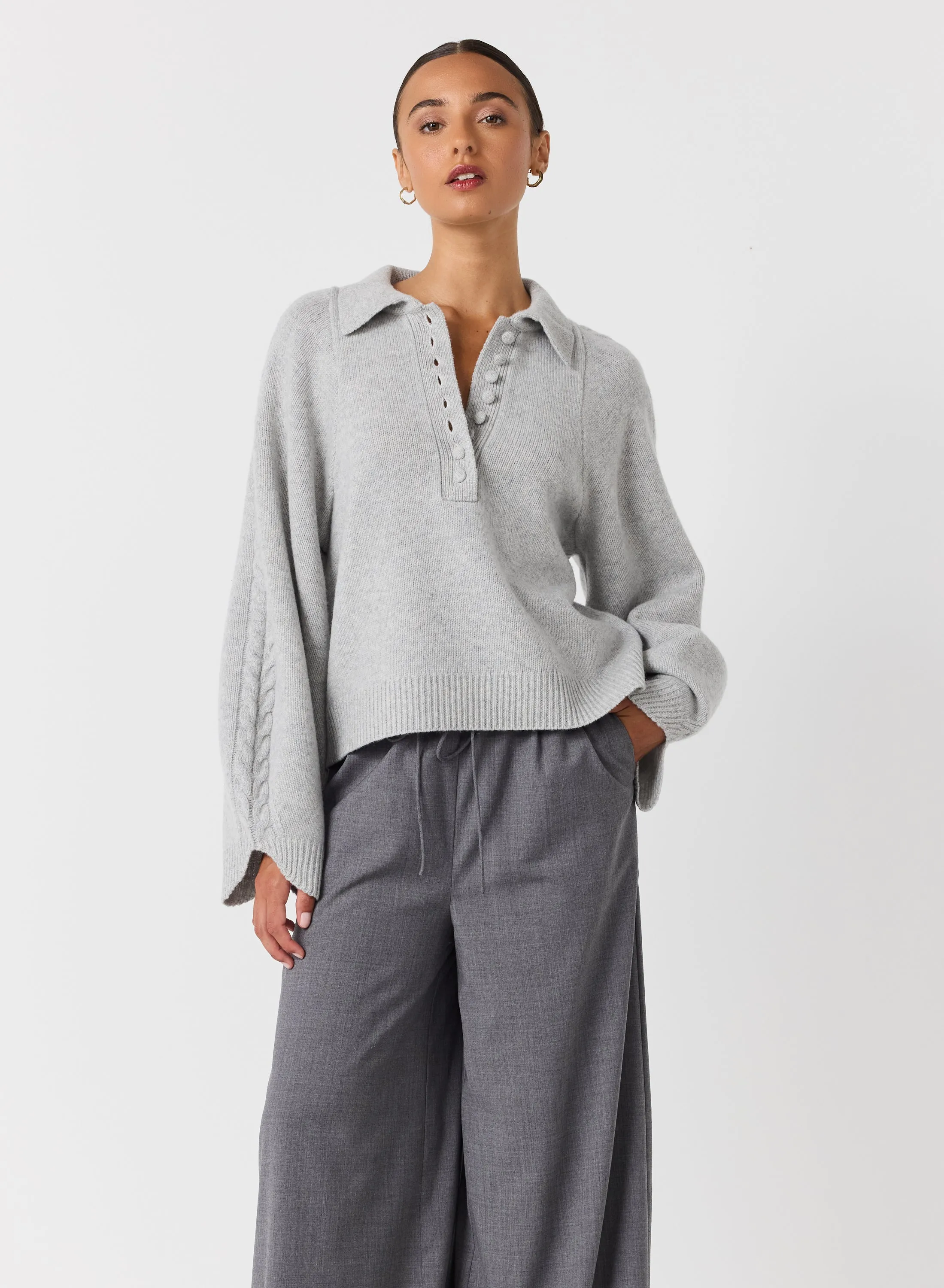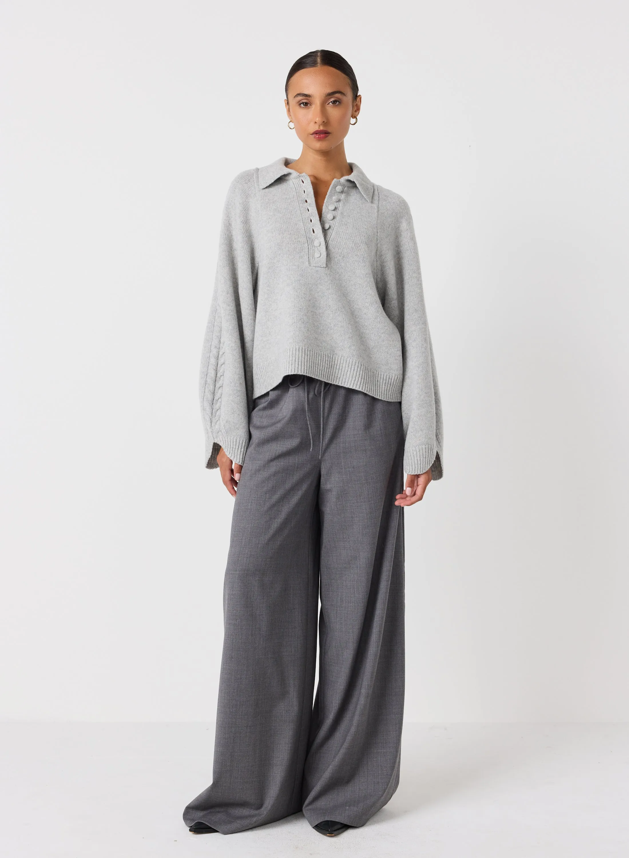 Crafted from a plush wool-cotton blend with a heavy weight, our Jenny Knit features a delicate cable knit designed to add an exquisite touch to your sophisticated wardrobe. An undeniably luxurious piece with a timeless aesthetic, it's the perfect way to exude style and poise.