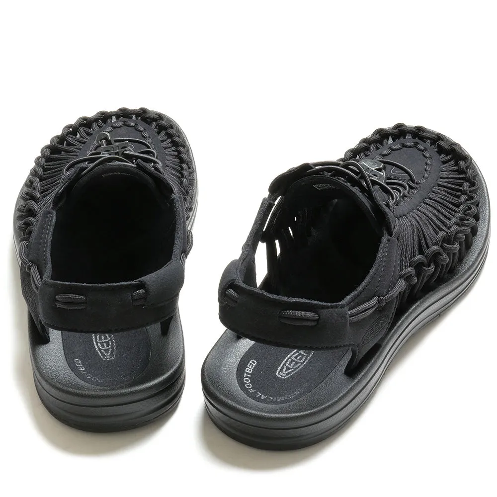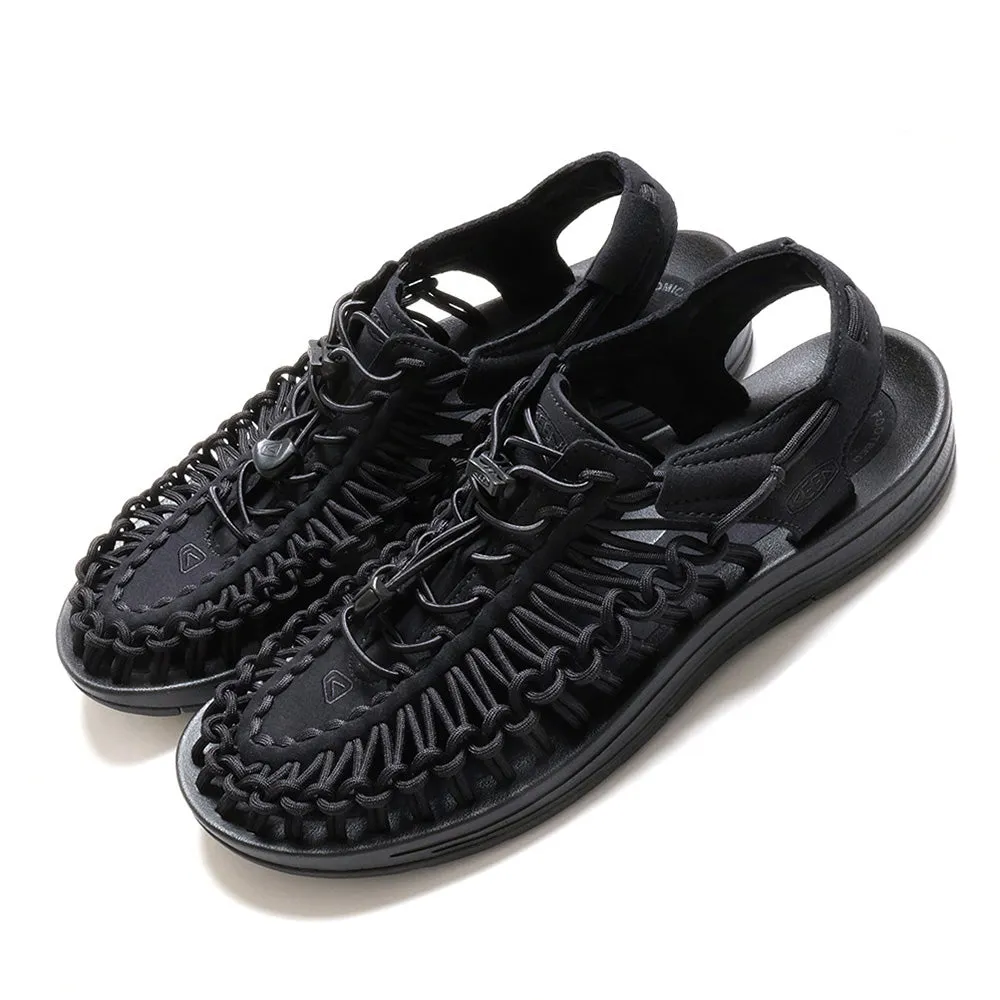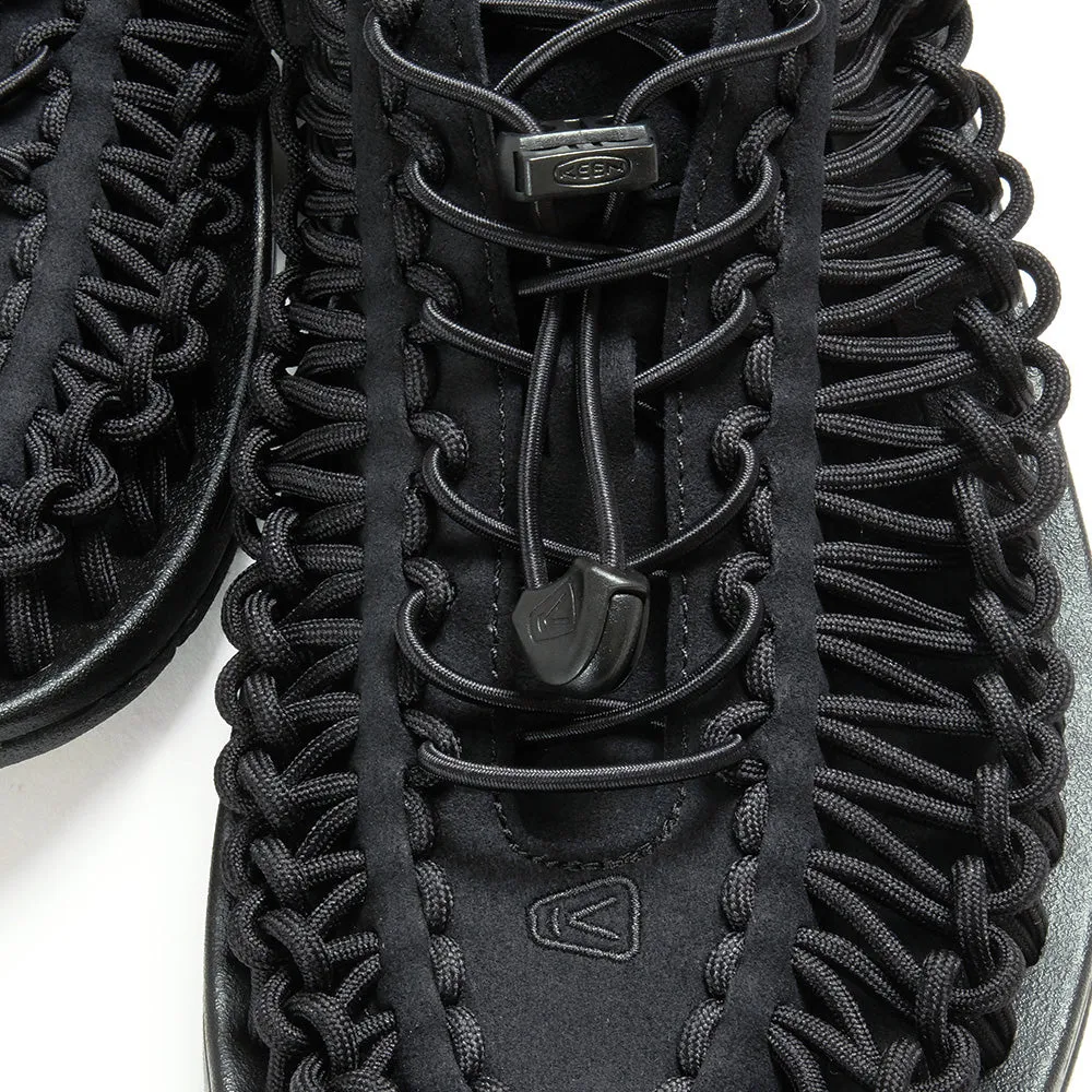 2本のコードと1枚のソールから作られた次世代のスニーカー・ユニーク。リサイクルプラスチック使用のバンジーコードとレース留めトグルが瞬時に足を固定し、しっかりとしたフィット感を実現。足裏の形状に合わせて立体成型された軽量PU(ポリウレタン)製のフットベッドは滑りを抑え、吸汗性を高めるマイクロファイバートップシートを中央に配置。レーザーサイピングを施されているアウトソールは水を弾き、濡れた路面でも優れたグリップ力を発揮。素足ではもちろん、ソックスの選び方で3シーズン対応できます。