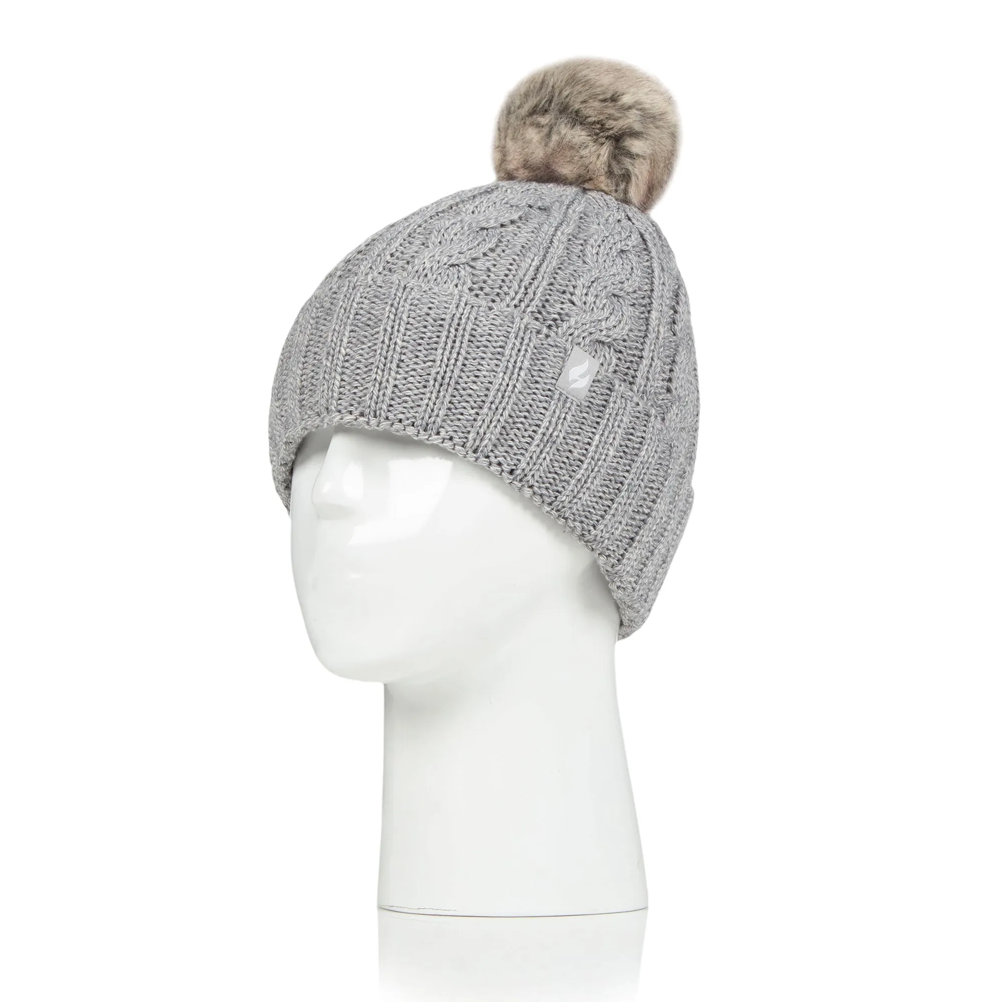 Whether you need reliable cold-weather protection or just an extra touch of warmth while strolling around town, this Ladies Maine Original Pom Pom Hat in Light Grey is guaranteed to warm up your life. This women's thermal hat features a chunky knit in soft yarn with a turnover cuff and faux fur pom pom.