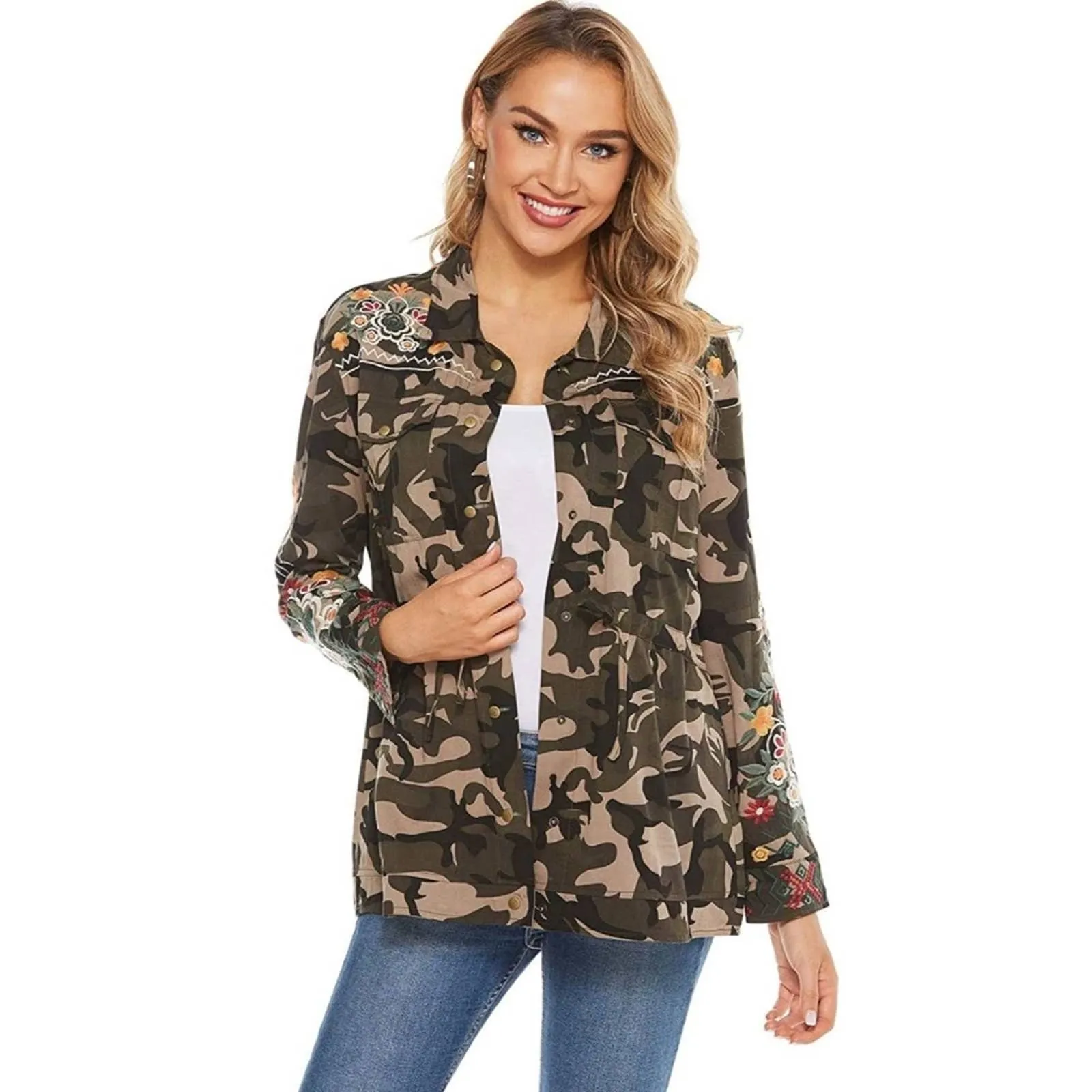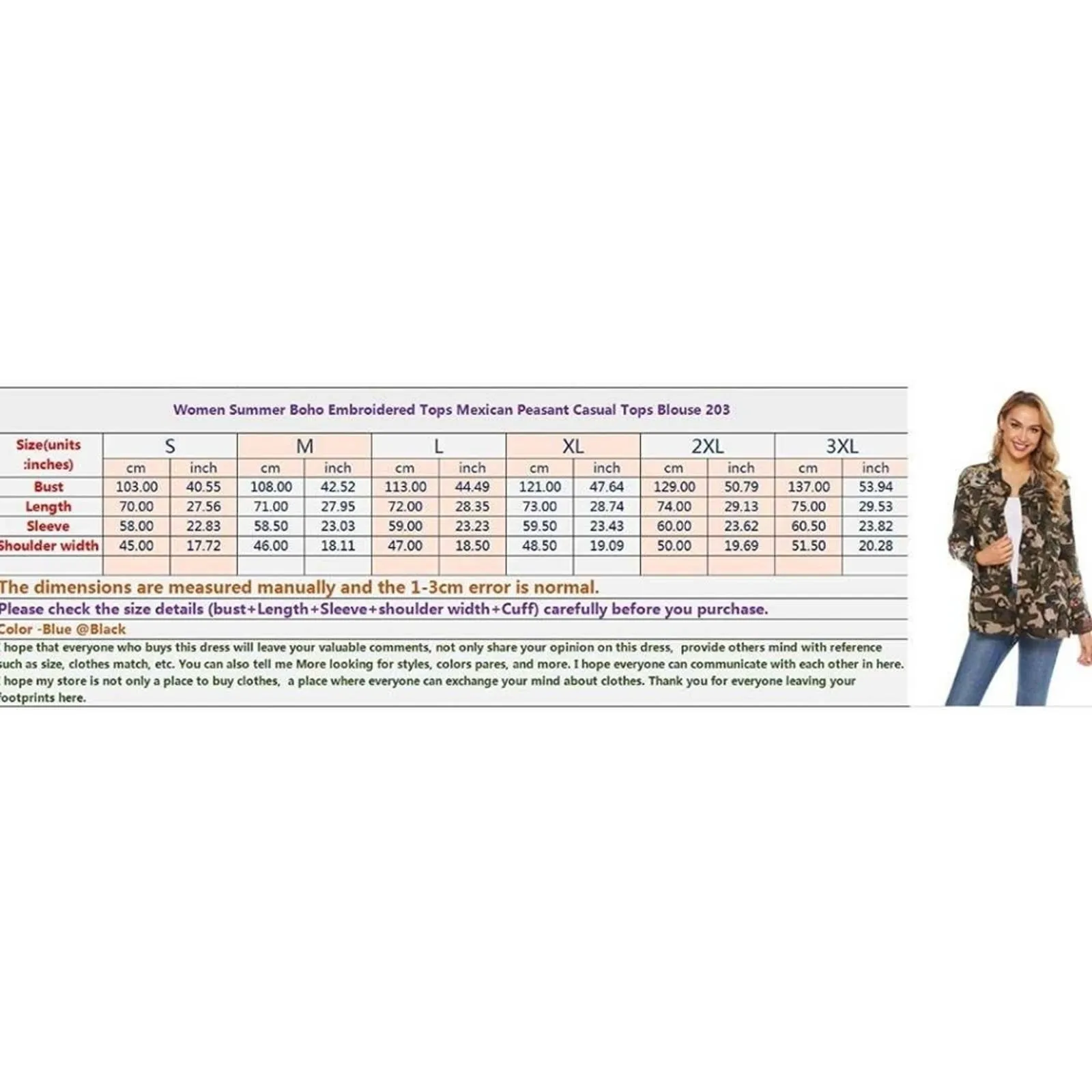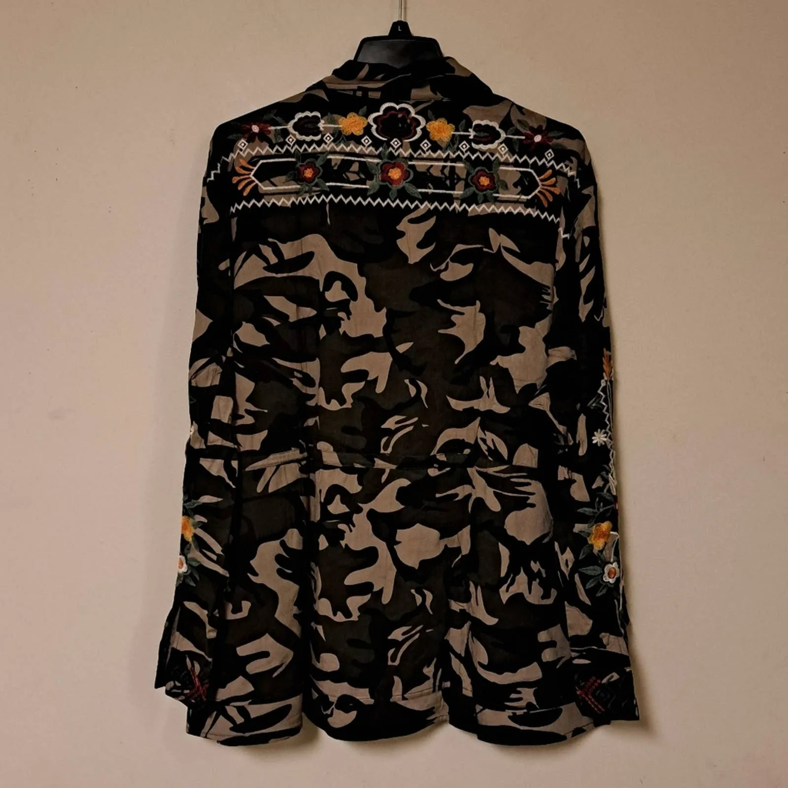 This camo embroidered blouse is made from 100% Cotton Rayon and is beautifully crafted. It is soft and comfortable to wear.