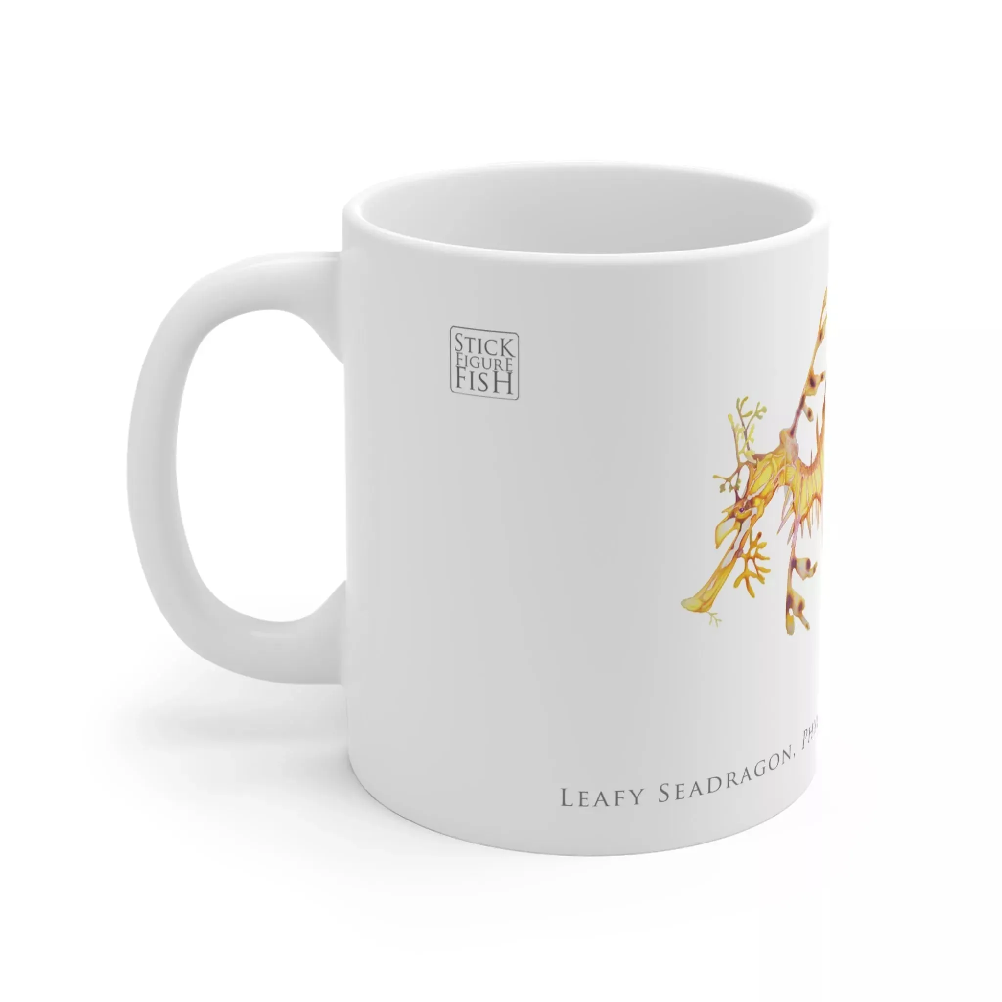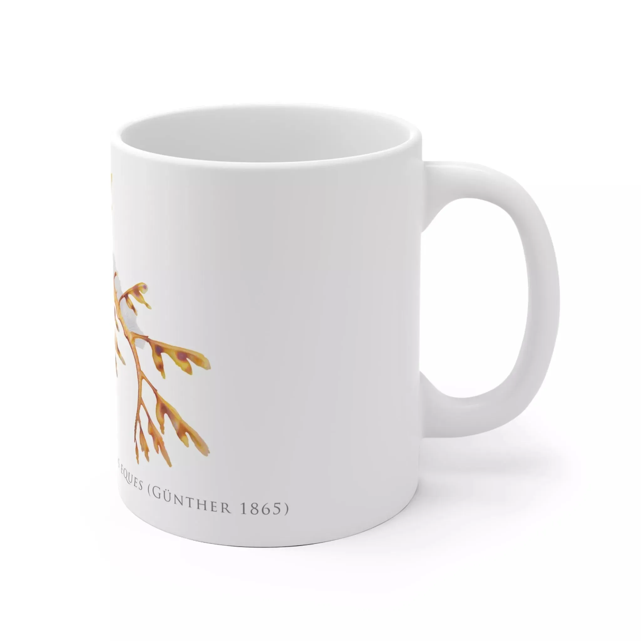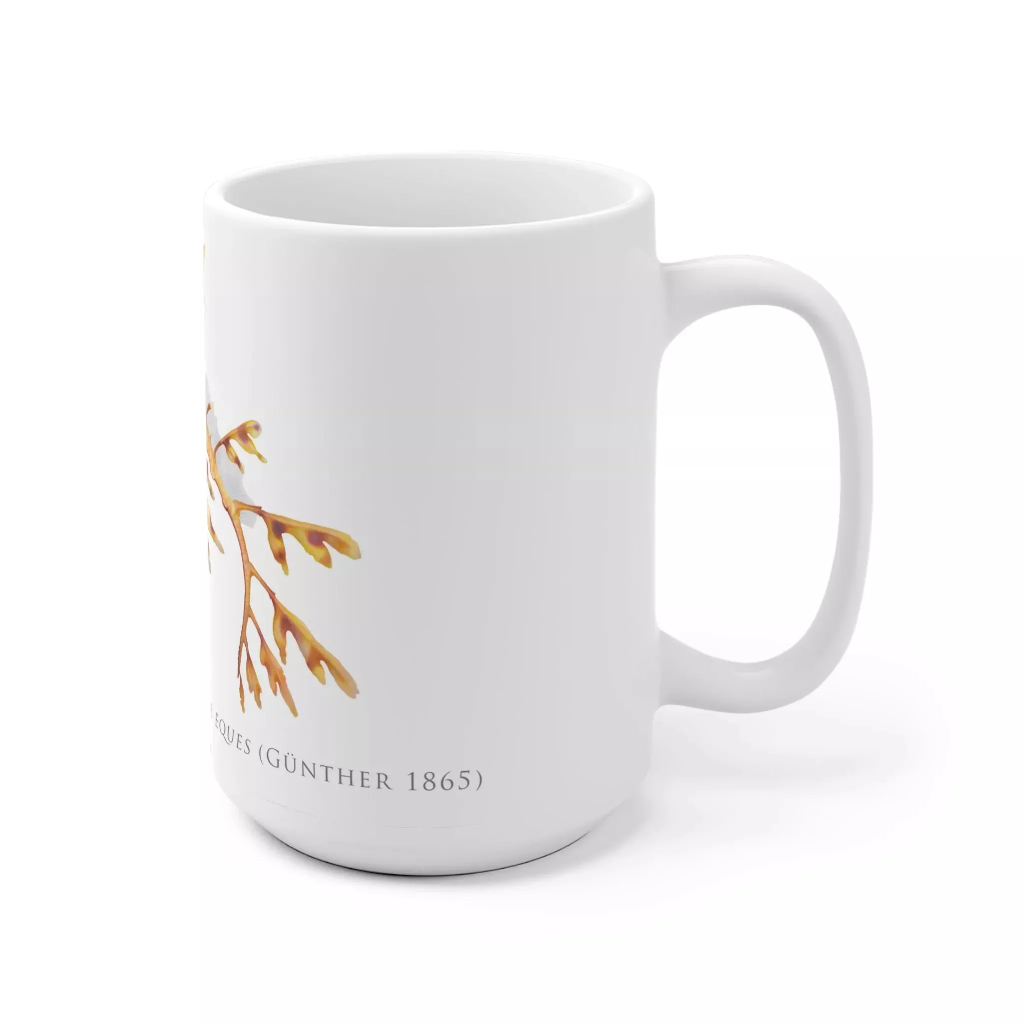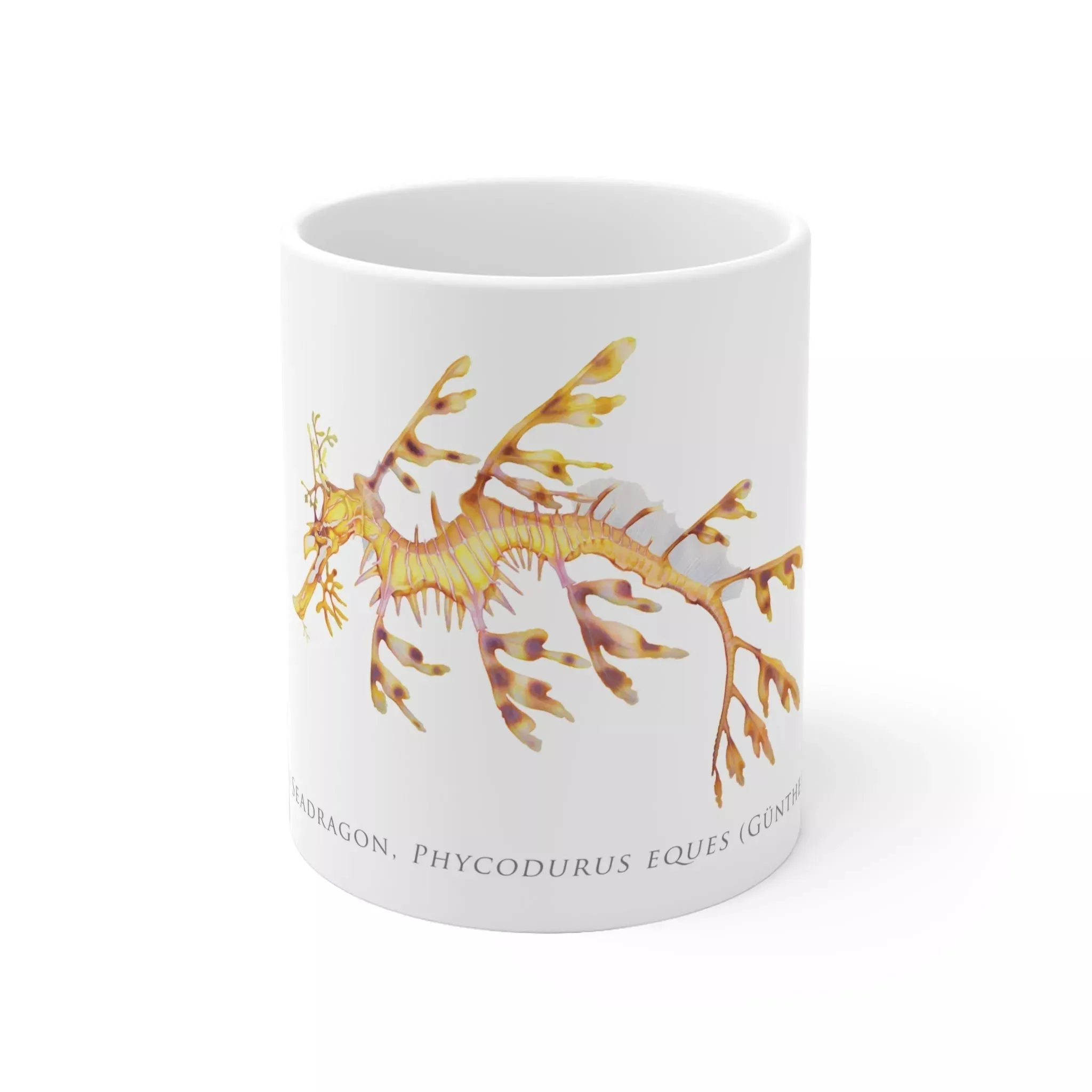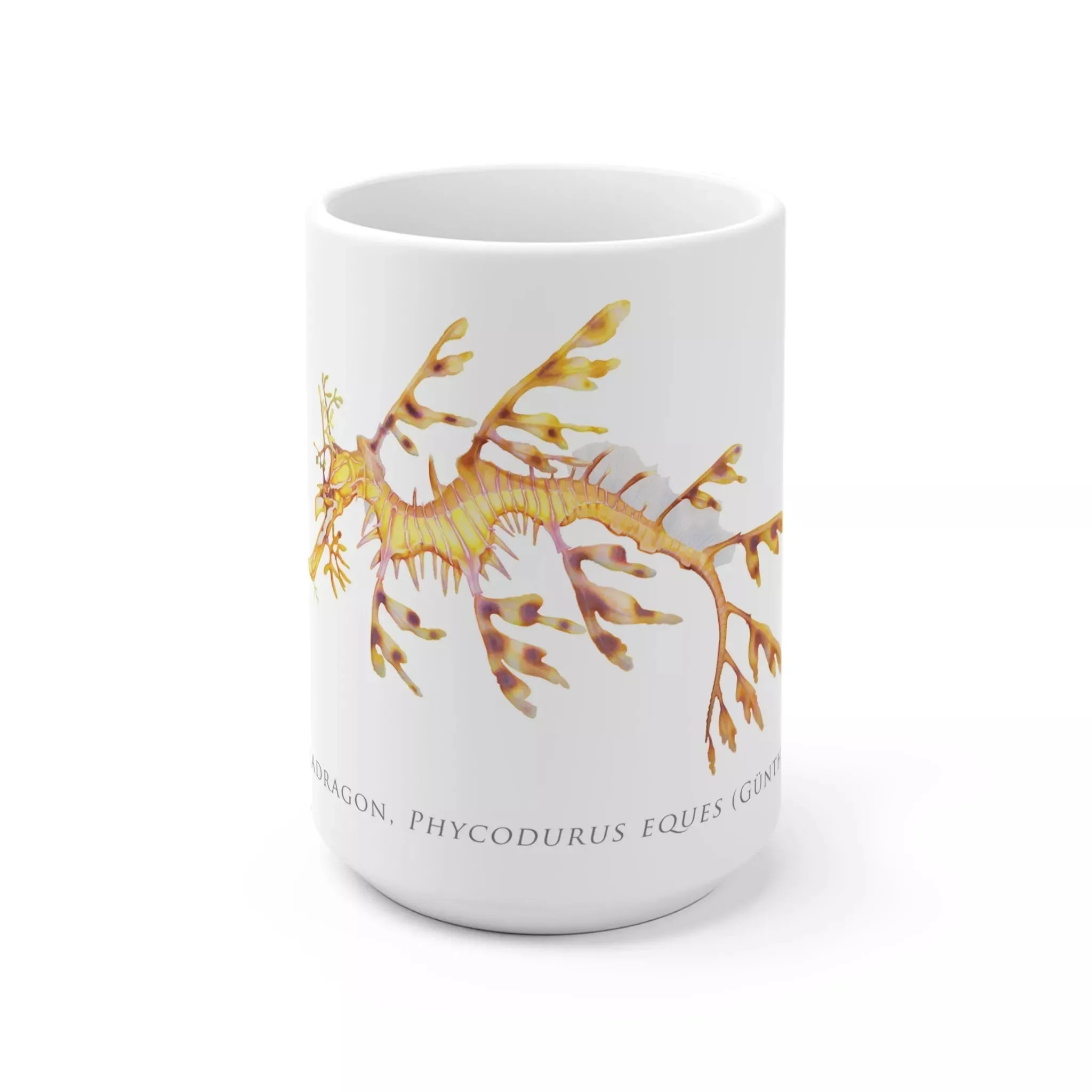 This mug is your ticket to an underwater world of wonder. Its scientifically accurate illustration of a leafy sea dragon, Phycodurus eques, brings the delicate beauty of this marine creature swimmingly to life. With its graceful, leaf-like appendages and dragon-esque snout, the sea dragon looks like something straight out of mythology. But this is no mythological beast—it’s a real species of seahorse found only in the waters of southern Australia and Tasmania. Whether you’re a scuba diving enthusiast who’s spotted one in person or an armchair naturalist, this mug lets you appreciate the leafy sea dragon’s otherworldly allure every time you sip your favorite brew. And because it’s made from durable, dishwasher-safe materials, this work of art will endure as long as your fascination with the mysteries of the deep.