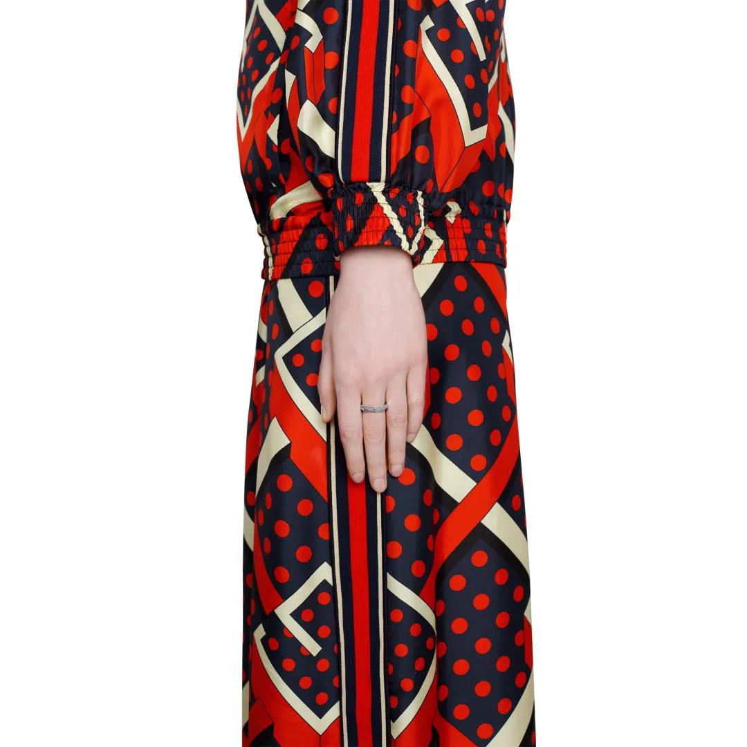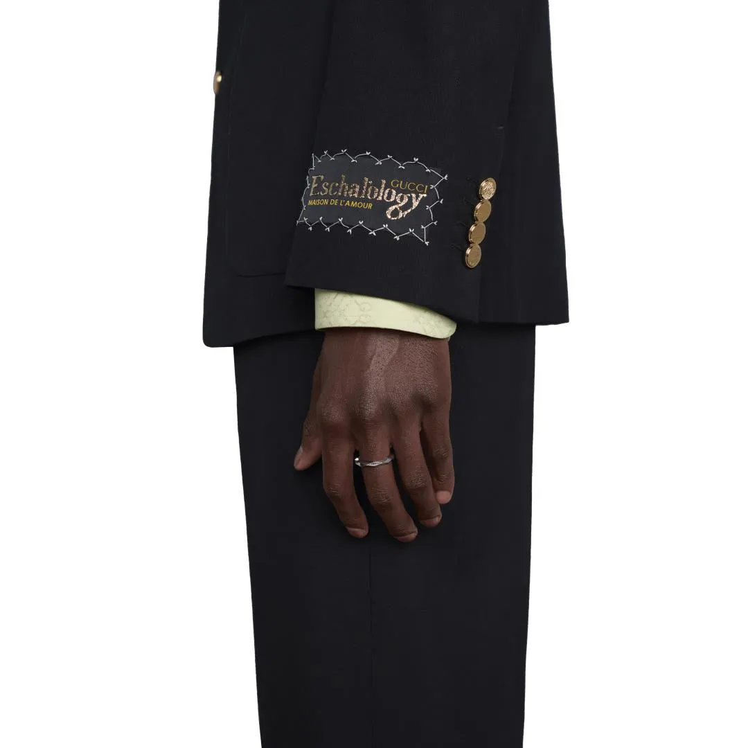 The Gucci Link to Love collection is an exploration of modern romance characterizing new symbols of love. The collection combines different gold tones and a mix of finishes blending the lines between masculine and feminine. Each piece is meant to inspire individualized ways to wear them with stackable and layered features. This 18k white gold studded ring has a stackable mechanism.