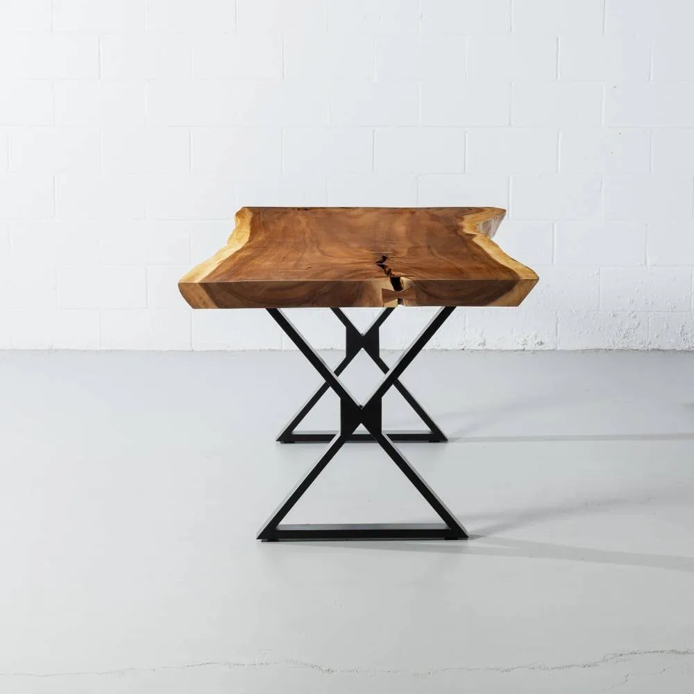 Our premium Live Edge One Piece Solid Slab Suar Tabletops are natural works of art, each with its own unique story. No matter what your decor style, a gorgeous one-of-a-kind 100% solid Suar table will bring natural warmth and timeless beauty to your dining experience. Made from one of the most durable and sustainable hardwoods, our Suar tables exude natural elegance with stunning wavy patterns and striking wood grain. The Suar tables that we carry are made from a single piece of solid wood, cut from one edge to the other. Each with its own distinctive shape. All one-of-a-kind.