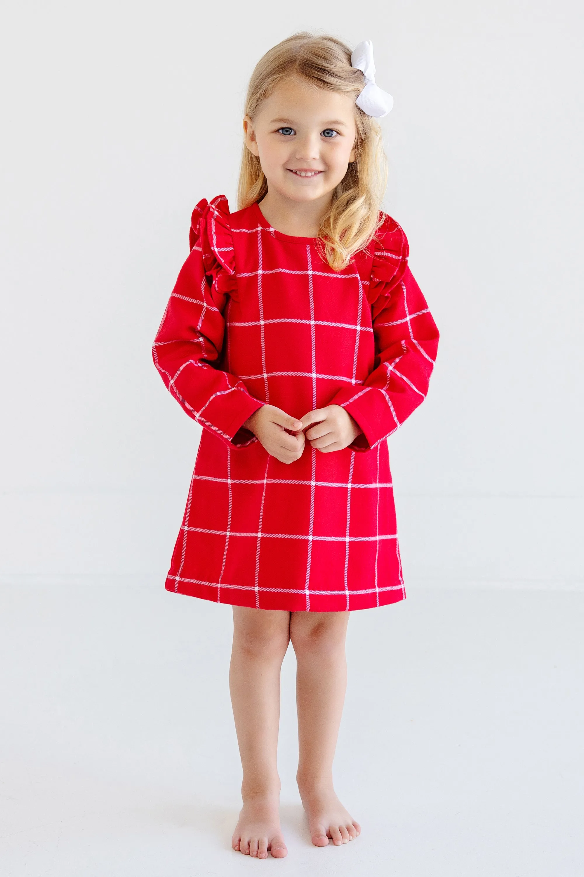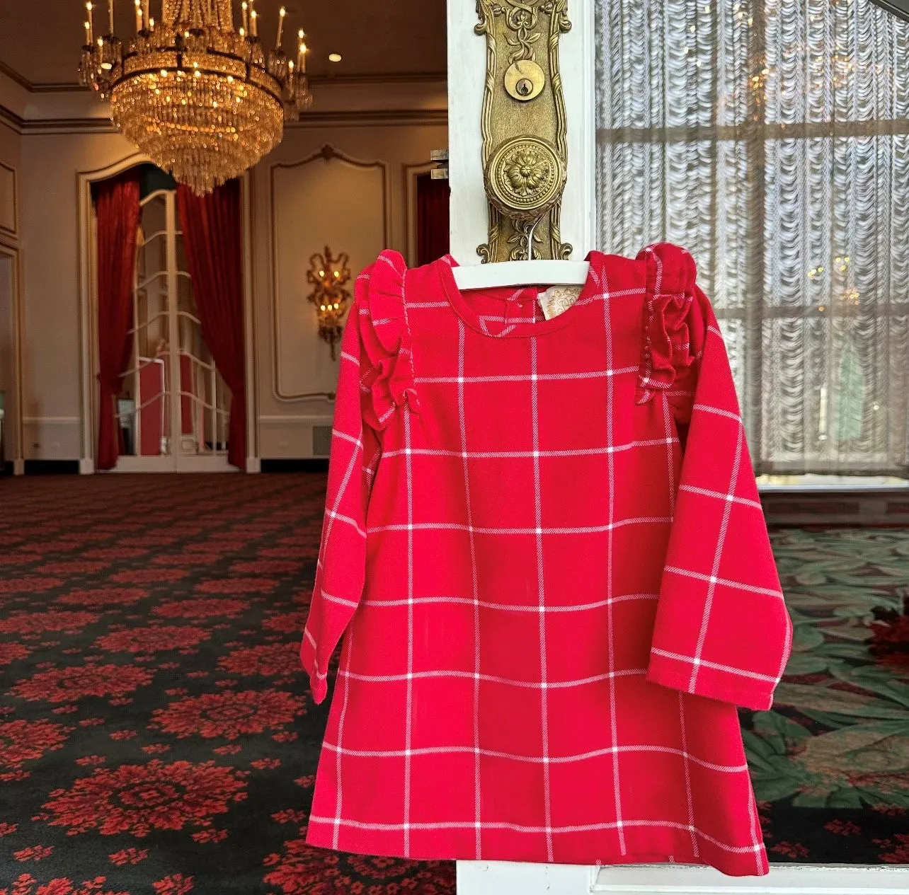 How darling is this Long Sleeve Ruehling Ruffle Dress? From the Woodland Avenue Windowpane to the ruffle sleeve detail, we are all swooning over this sweet piece... we have a feeling you will be too!