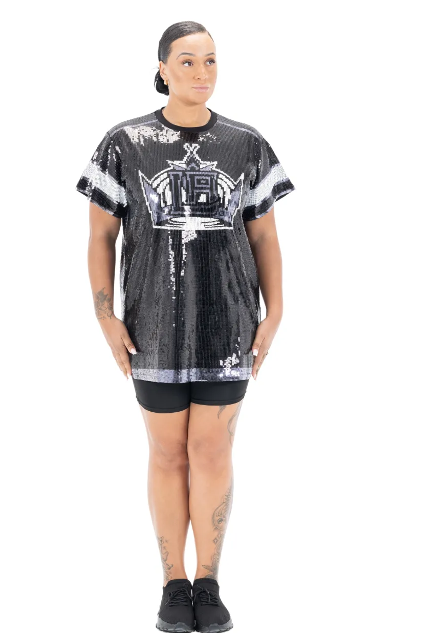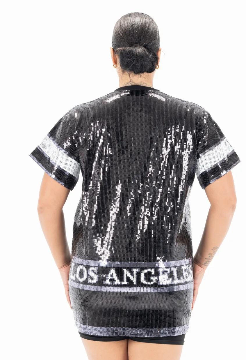 Designed by the Sequin Fans brand, this stunning Los Angeles Hockey Sequin Jersey Dress beautifully showcases your love for the Los Angeles Hockey team. Step onto the stadium or into any game day event with confidence and style with this sports glam basketball jersey dress, perfect for parties that go from day to night.