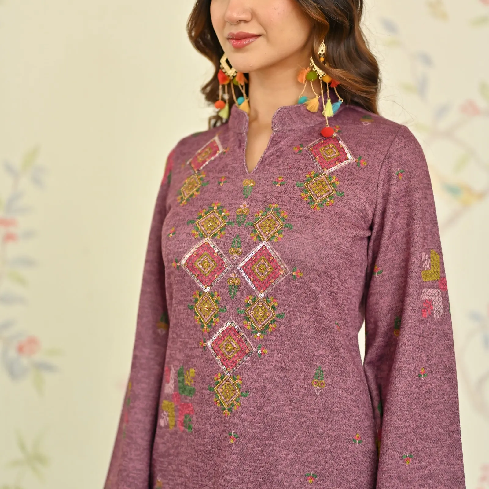 Step into winter elegance with our Phulkari Printed Woollen Kurta, adorned with exquisite sequin work. Crafted from premium winter fabric, this ensemble offers both warmth and style. The Phulkari print, known for its vibrant and intricate patterns, adds a touch of cultural richness to your look. The subtle yet stunning sequin work enhances the kurta, bringing a hint of glamour to the cozy winter fabric. Whether you're attending a festive gathering or a casual winter outing, this Kurta promises a perfect blend of comfort and fashion-forward grace.