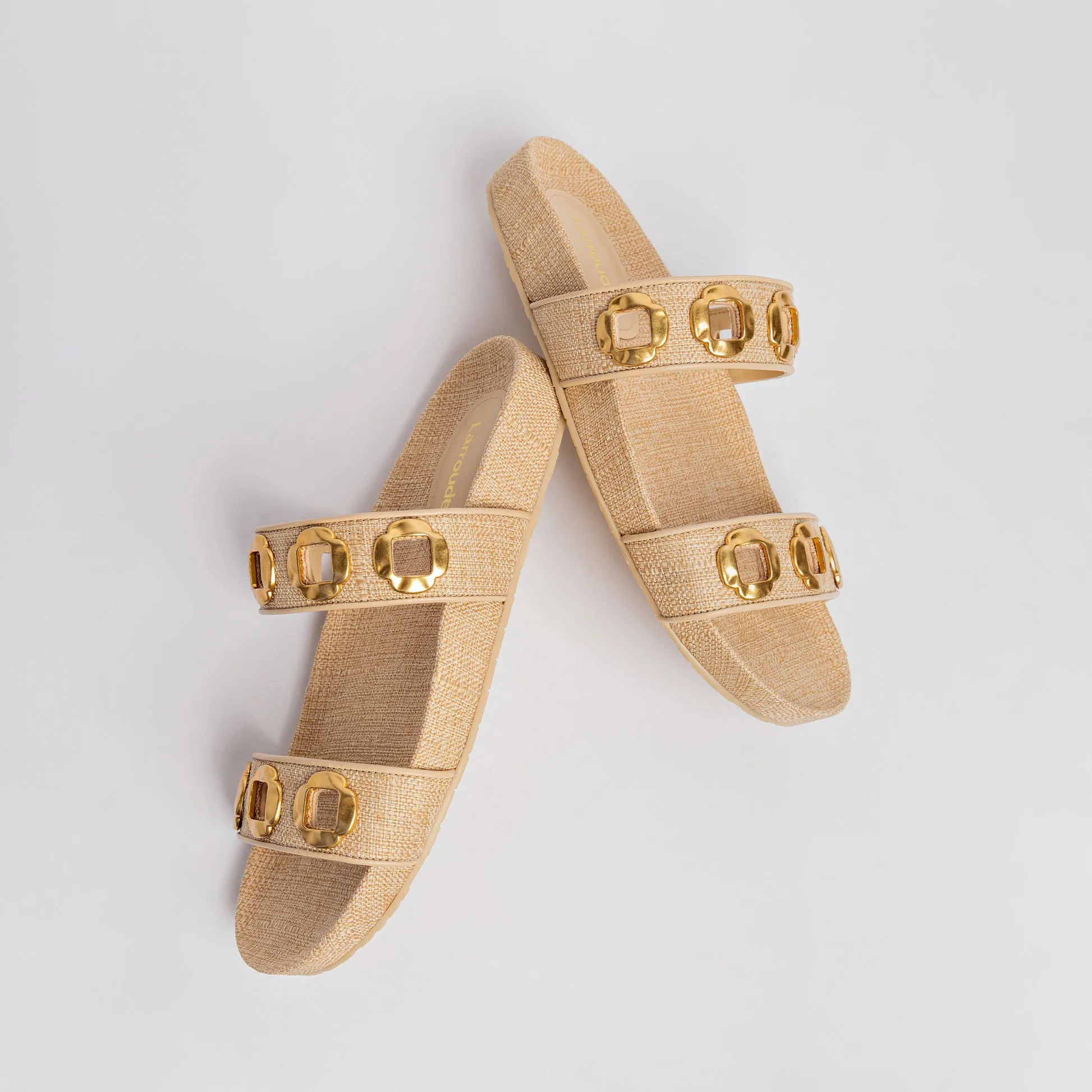 A riff on Summer's must-have sandal silhouette, these new Milan slides are a newfound favorite in raffia. With a comfortable rubber footbed that makes it both durable and perfect for sand and sea, these are the sandals you'll want to slip into any time the temps rise.