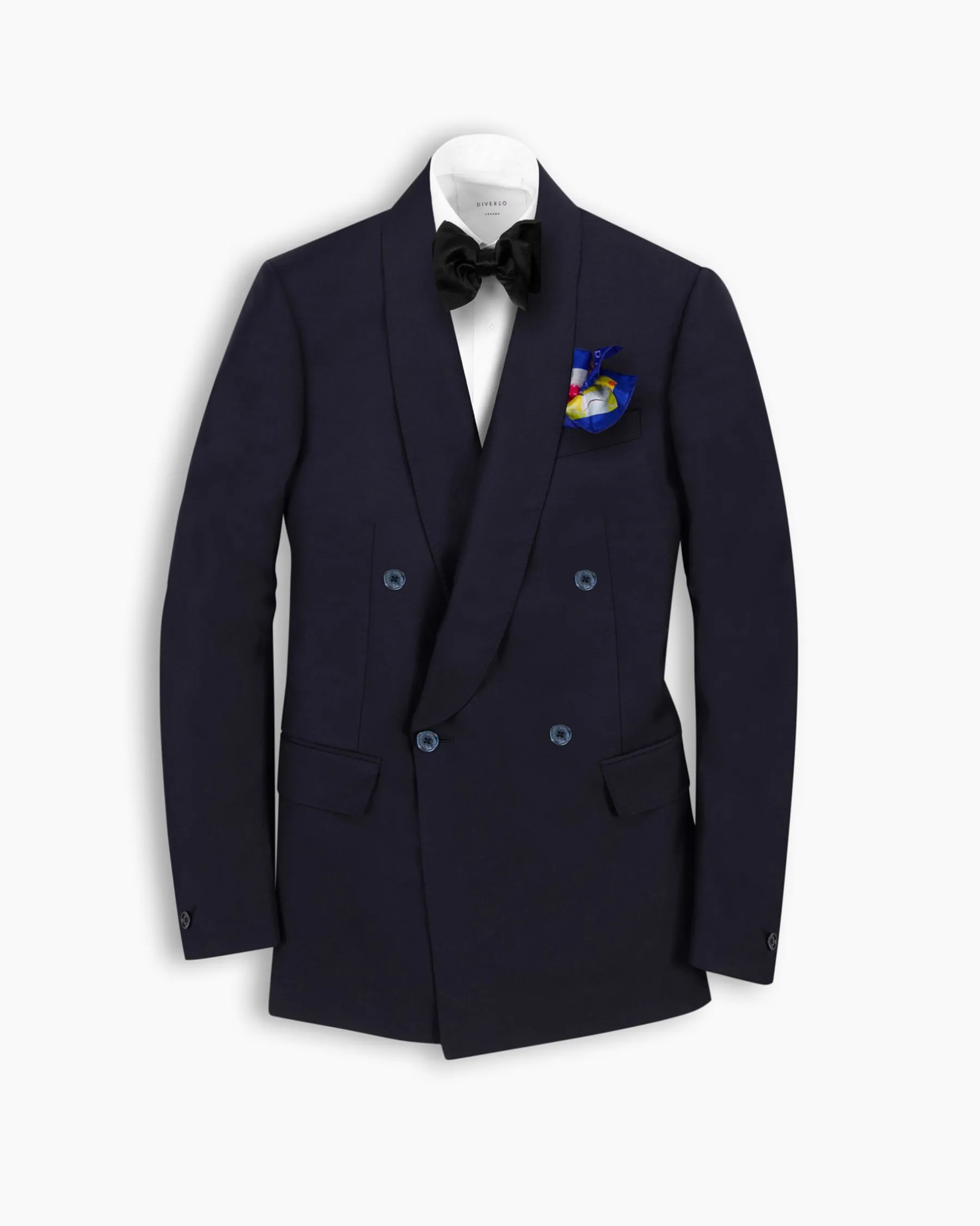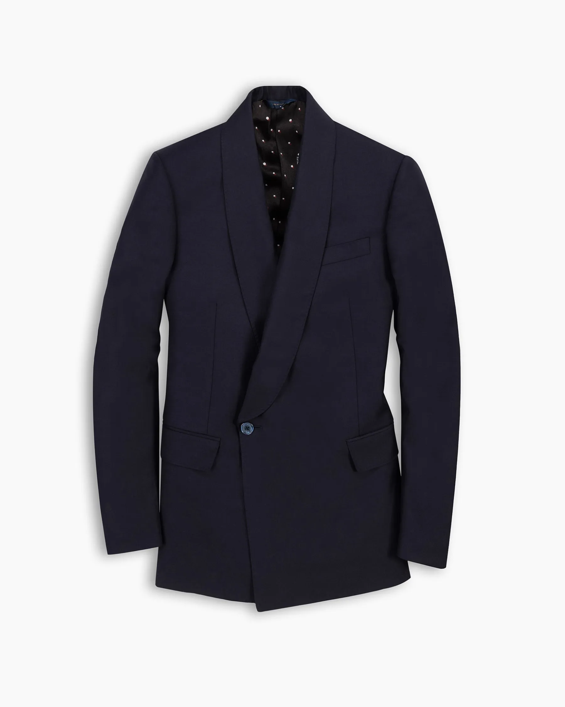 Super-fine worsted wool woven for us in Biella, Italy. Crafted on our contemporary Double-Breasted Shawl tailoring block.