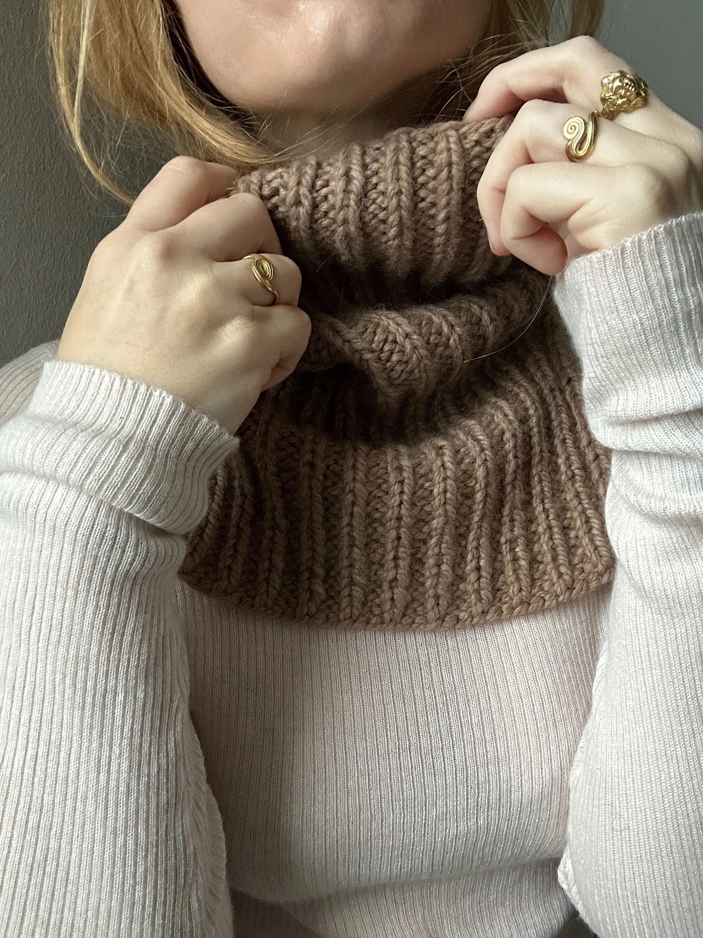 Nellie Neck Warmer is a cowl worked in a simple ribbed pattern.