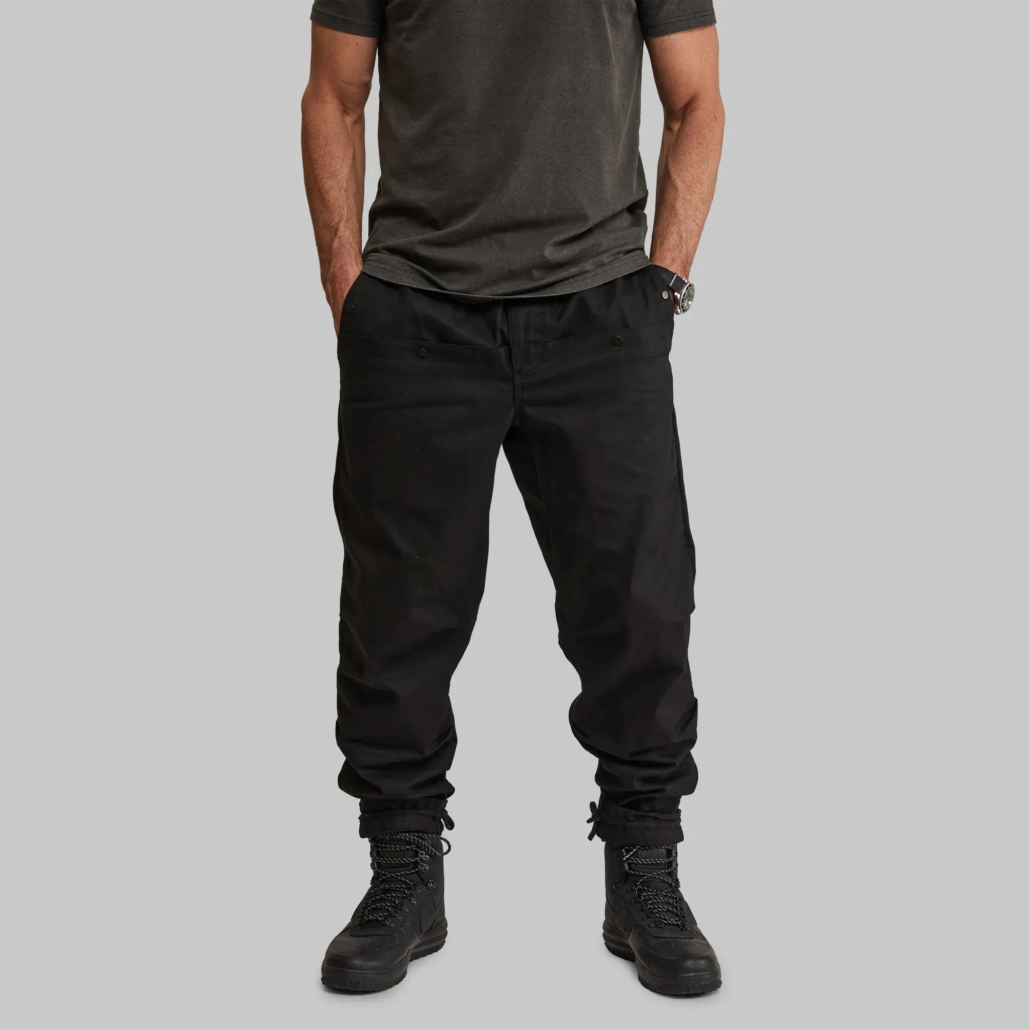 So our Off Grid range is built for a future in which you have to rebuild your life with your bare hands. Built from military strength canvas, with rope-tied ankles, a crazily tough reinforced seat, air vents, giant pouch pockets, storm flaps and gadget loops, the Off Grid Pants are incredibly hard-wearing, low-maintenance pants that are easy to clean, easy to dry, and hard to damage.