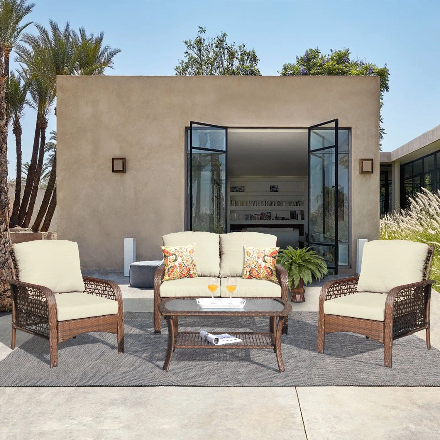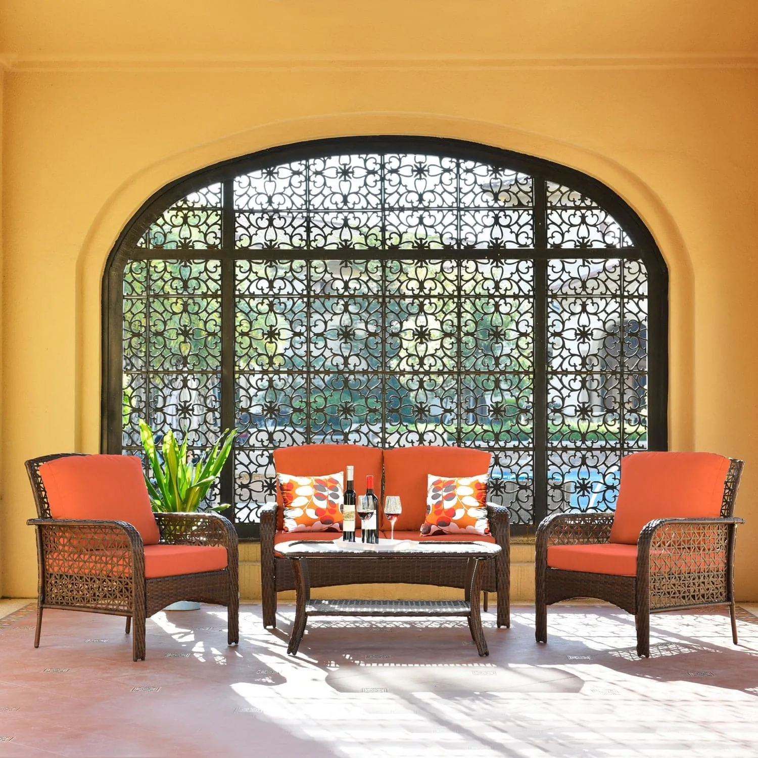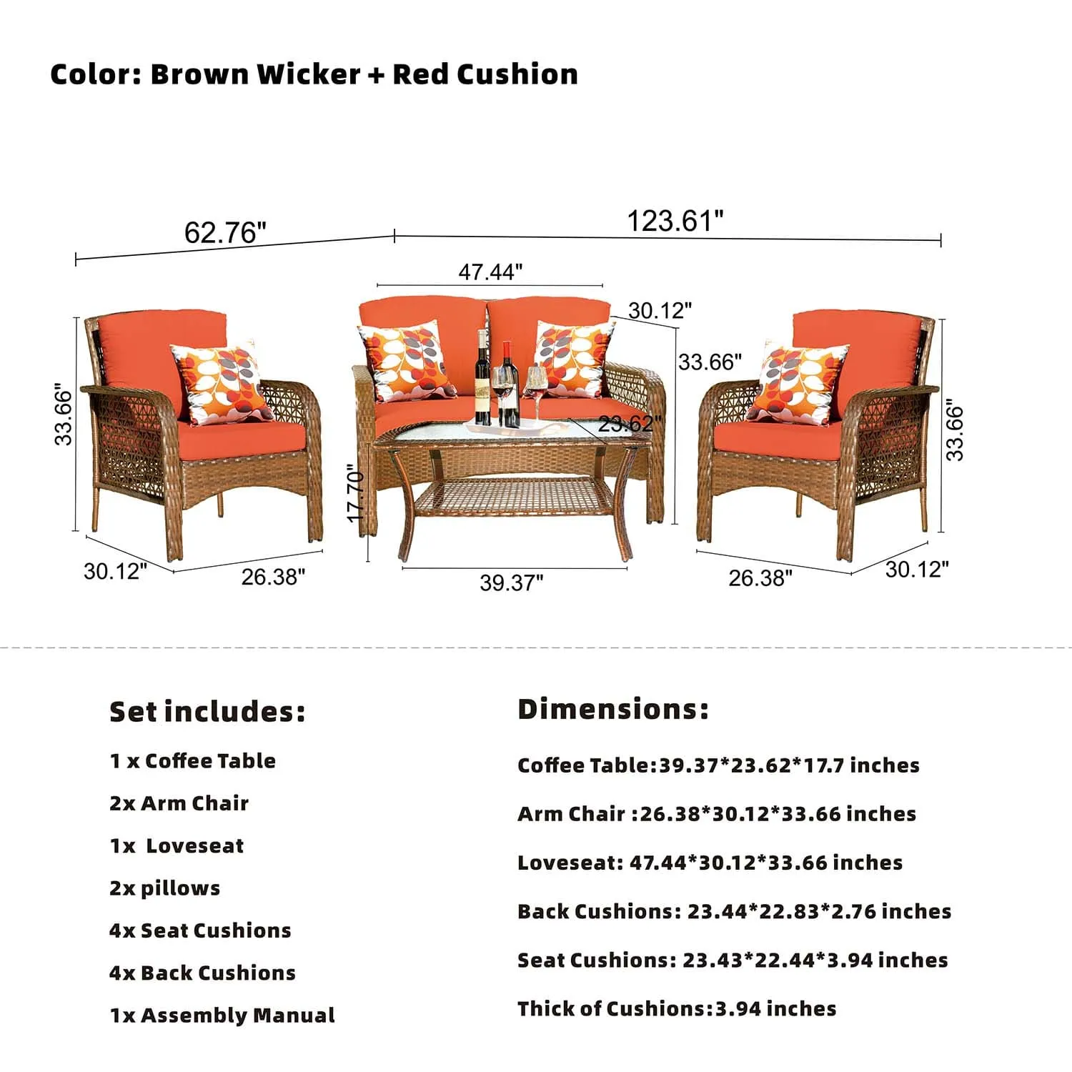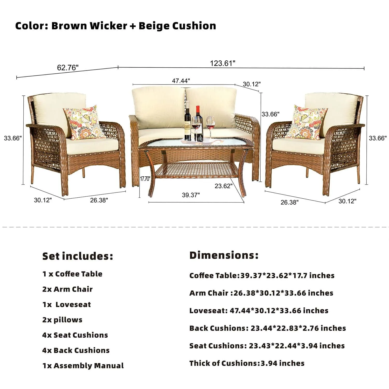 Upgraded Comfort and Deep Seating: Come with 4 pieces thick sponge seat cushion and back cushions for more comfort and relaxation, the Thick of Cushions is 3.94 inches with good resilience, soft and comfort, no slide, no sunken after a long time.