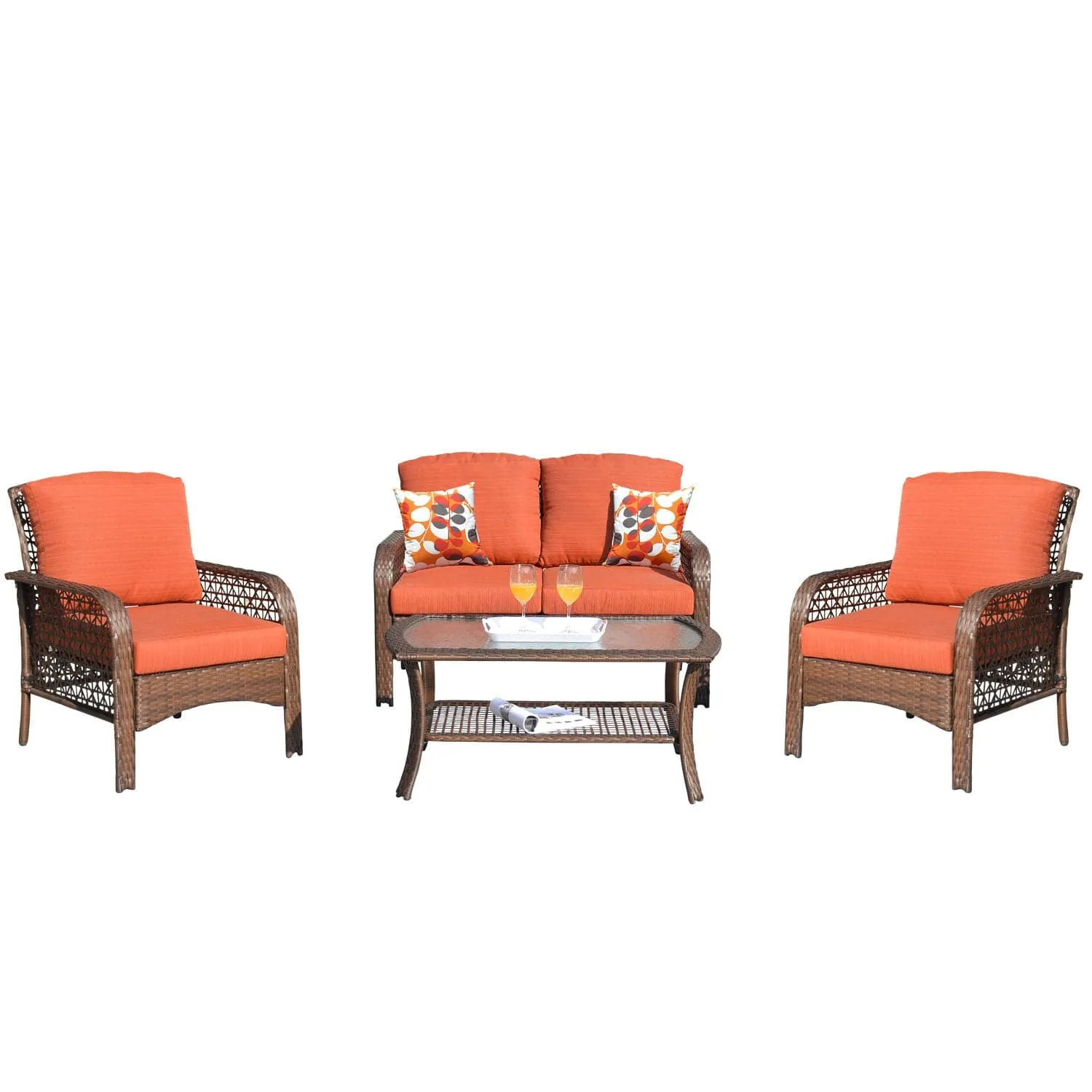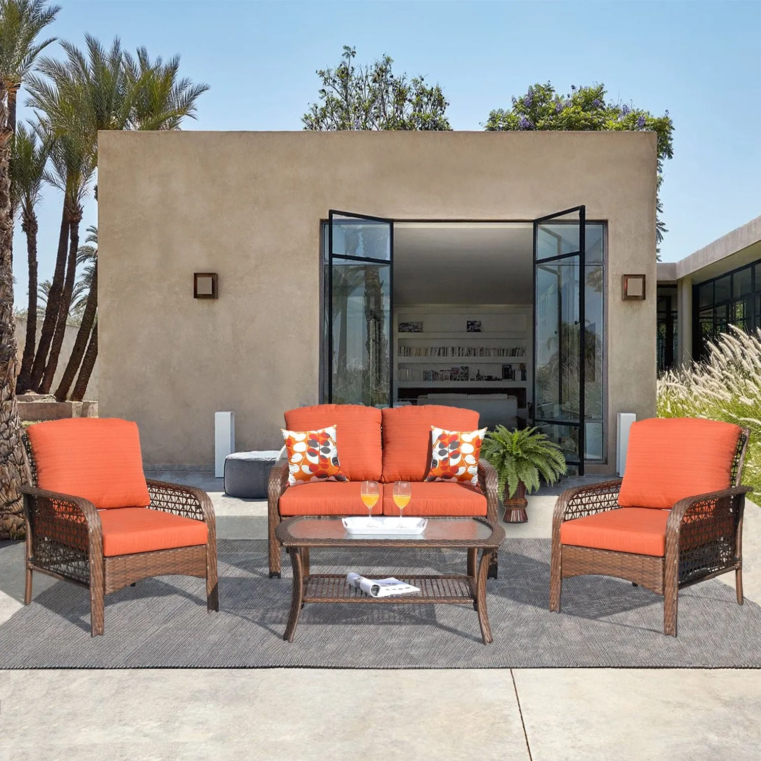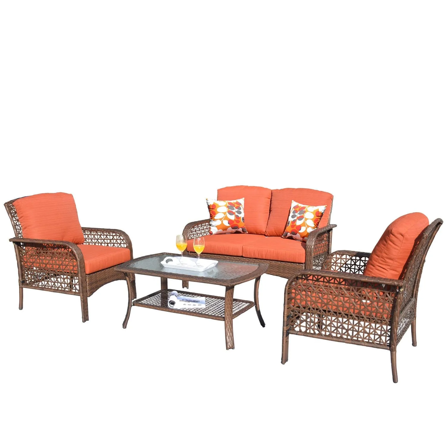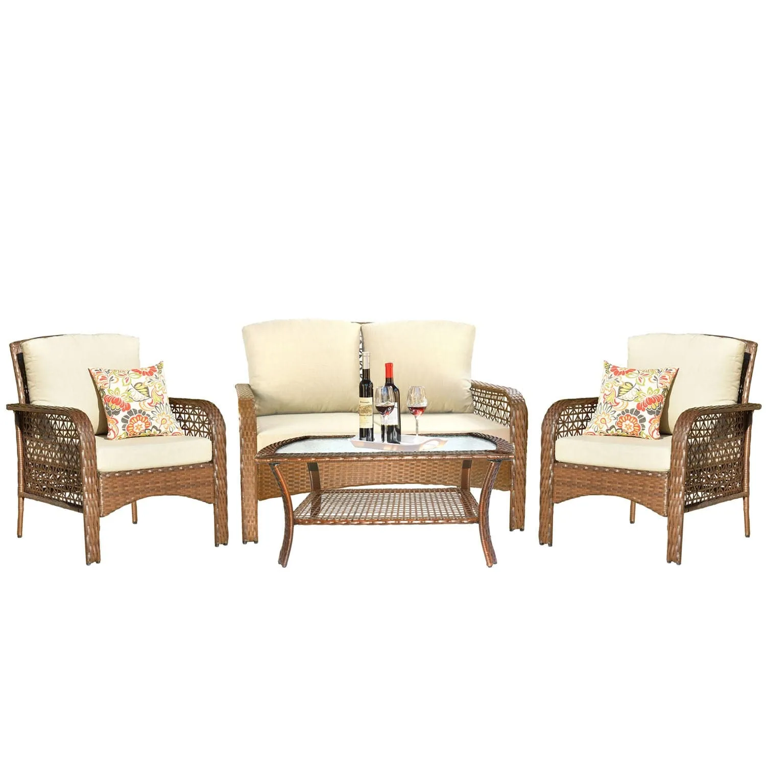 Upgraded Comfort and Deep Seating: Come with 4 pieces thick sponge seat cushion and back cushions for more comfort and relaxation, the Thick of Cushions is 3.94 inches with good resilience, soft and comfort, no slide, no sunken after a long time.