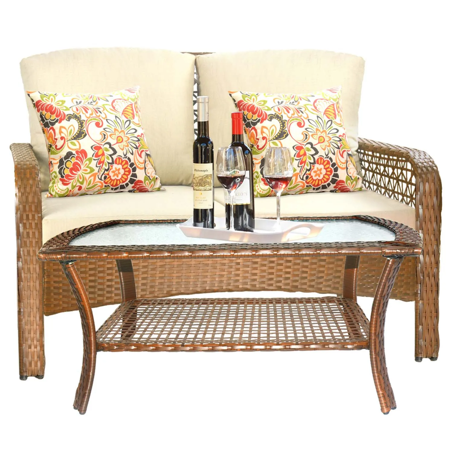 This 2 Piece Rattan Sofa Set adds a touch of elegance to the patio decor. Upgrade your patio, garden or courtyard with lavish comfort and crisp styling of outdoor’s new set. Exquisite workmanship for ensured durability.