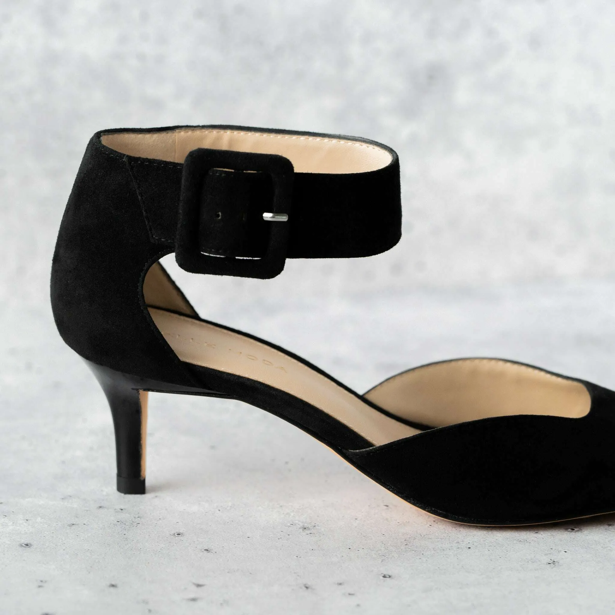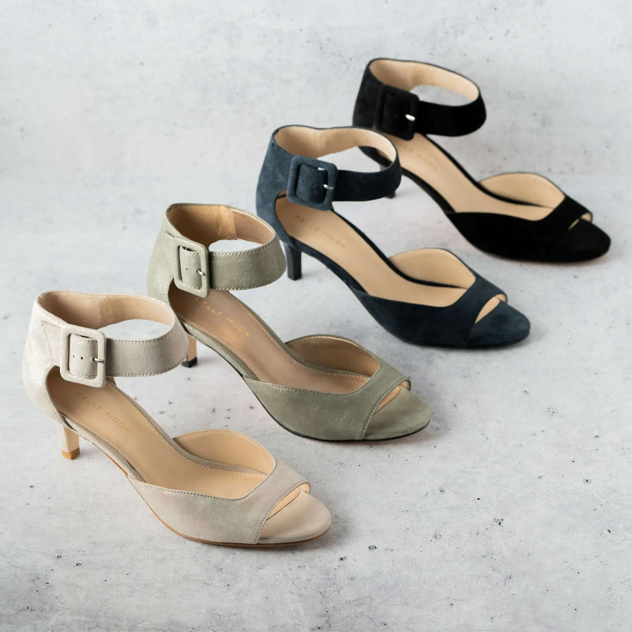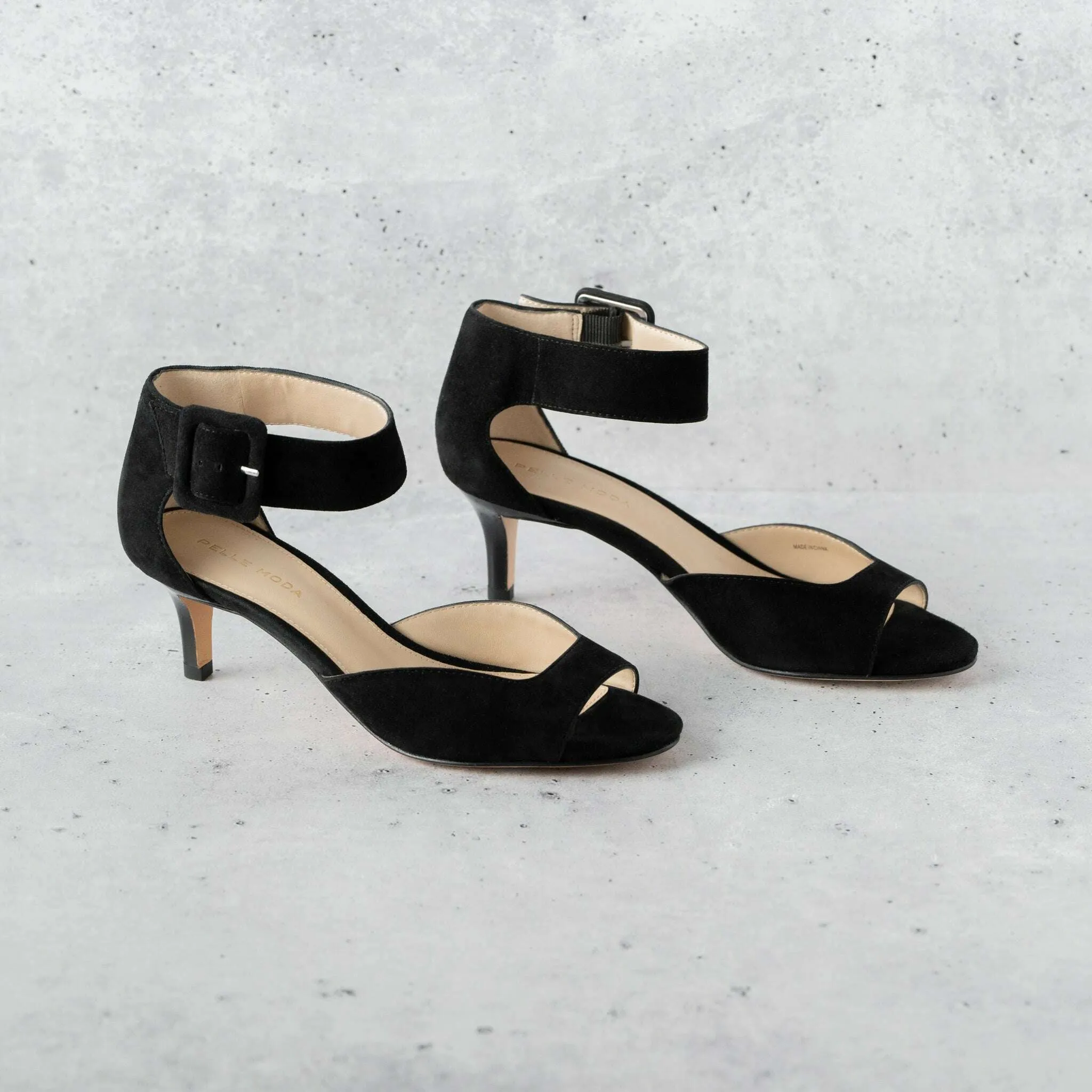 Introducing the Pelle Moda Berlin—a chic, low-heel pump that magically fits nearly any foot. This soft suede pump features a 2.5" heel, peep-toe design, and an adjustable buckle ankle strap for a customizable fit. Perfect for date night, the office, weddings, and much more.