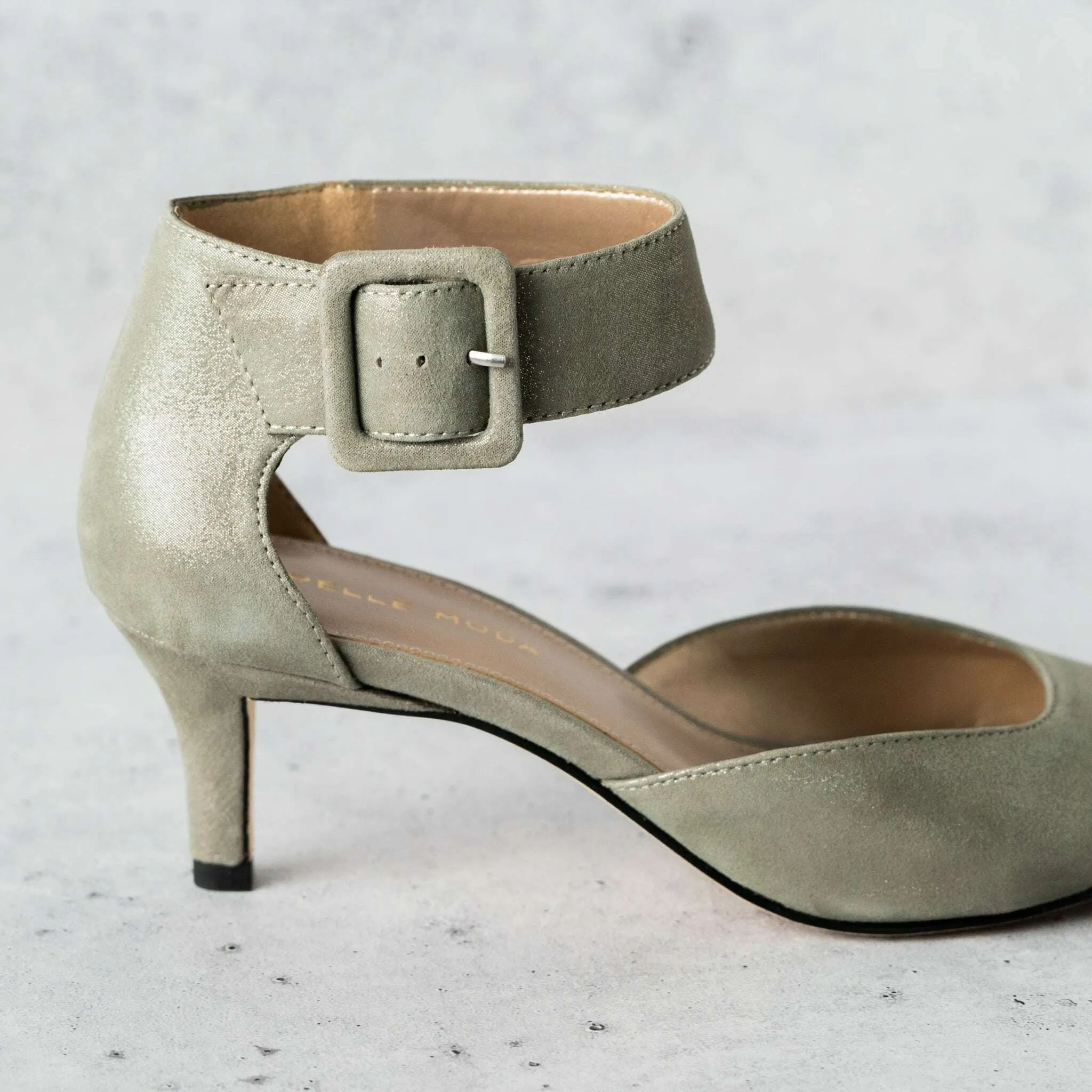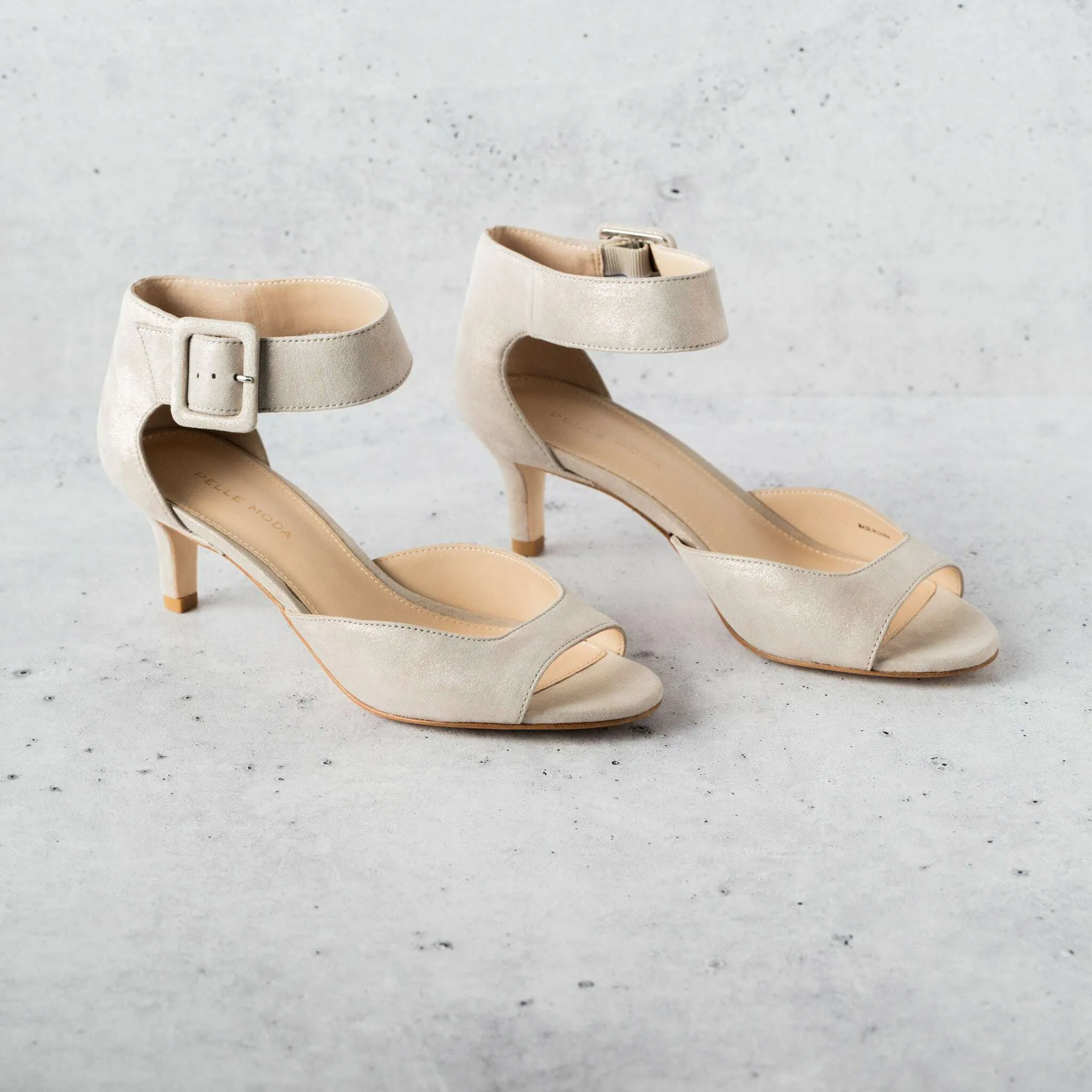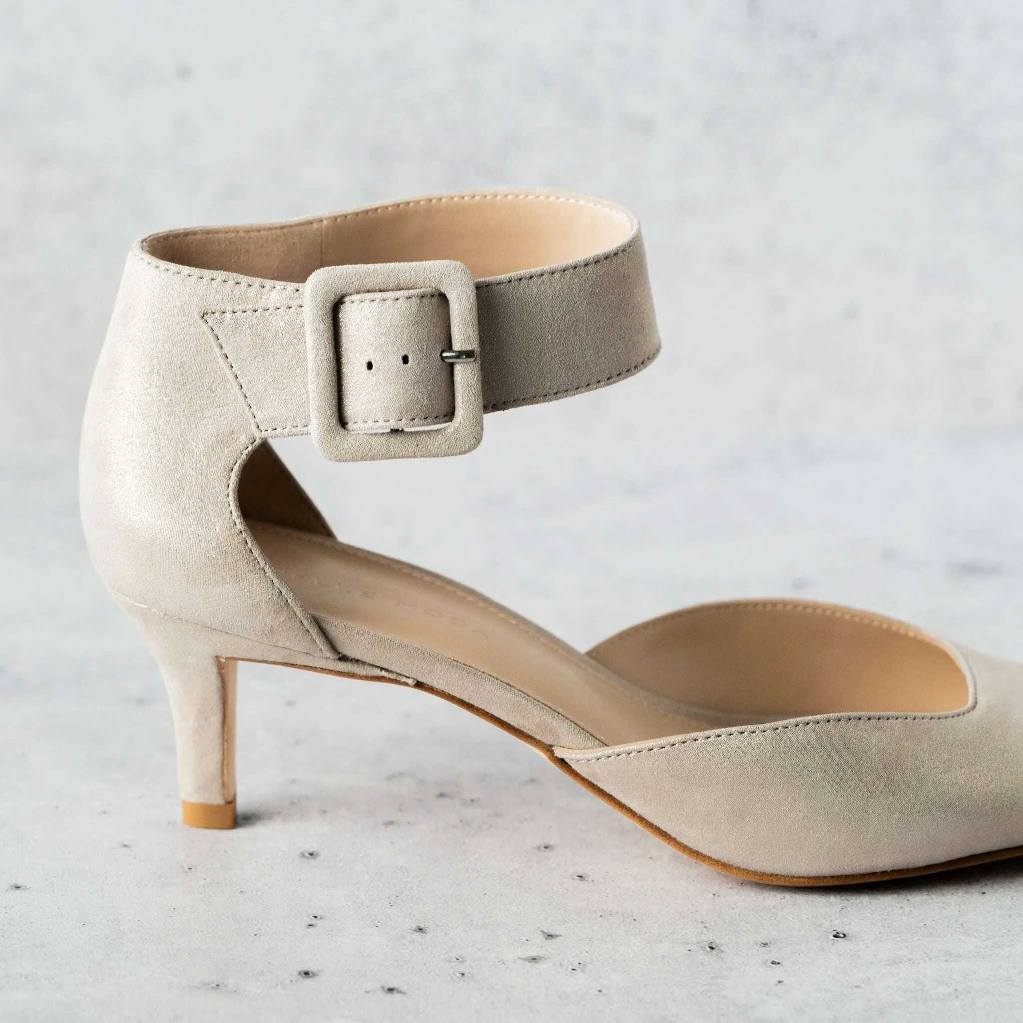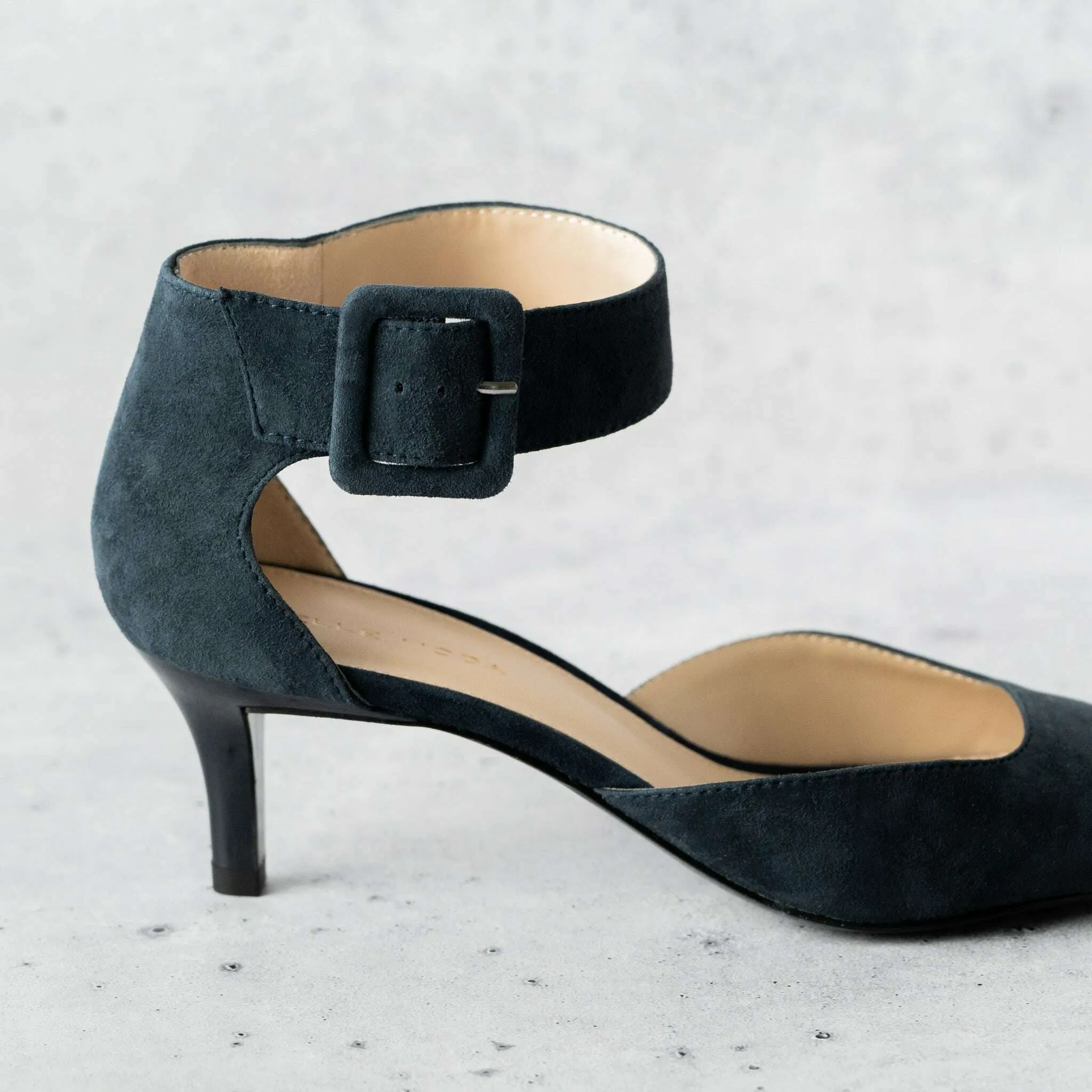 Introducing the Pelle Moda Berlin—a chic, low-heel pump that magically fits nearly any foot. This soft suede pump features a 2.5" heel, peep-toe design, and an adjustable buckle ankle strap for a customizable fit. Perfect for date night, the office, weddings, and much more.