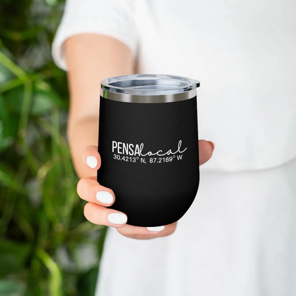 For those needing a bit of personality to go. This wine tumbler is double insulated and features a see-through plastic lid with a hole for easy sipping. Capable of holding up to 12 oz., these wine tumblers are ideal for both hot and cold beverages.