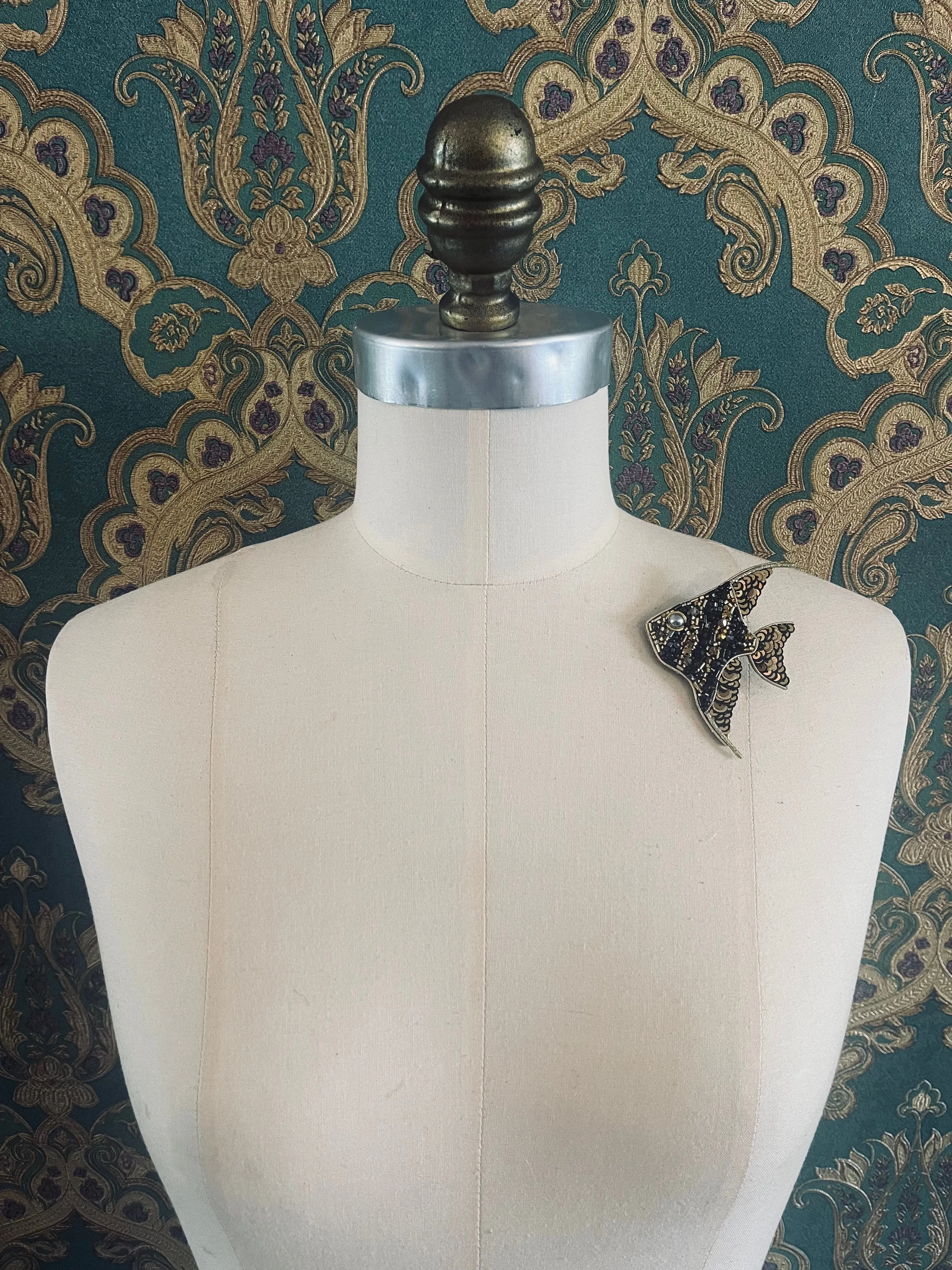 This brooch has a leather backing and single metal pin, making it suitable for easy attachment to clothing and accessories. Presented in a beautiful Broochella gift box.