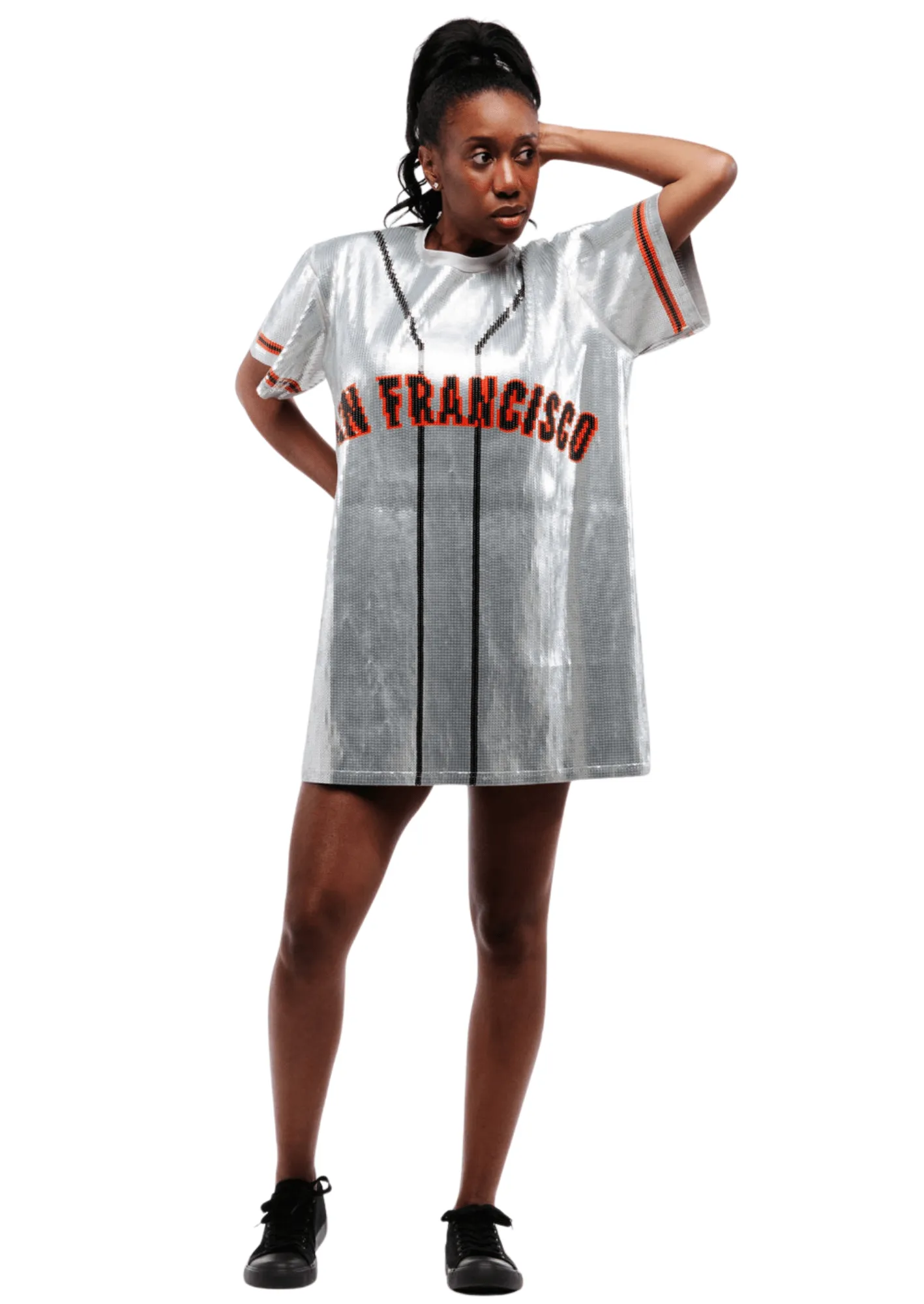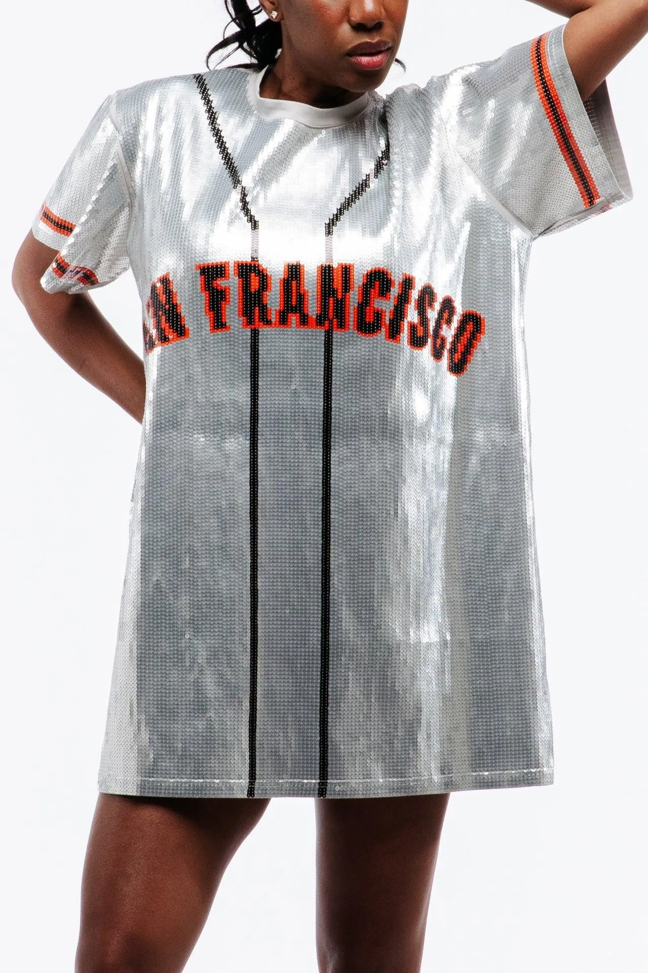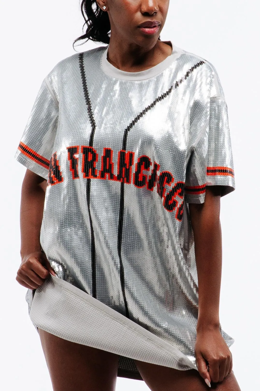 Designed by the Sequin Fans brand, this stunning San Francisco Baseball Sequin Jersey Dress beautifully showcases your love for the San Francisco baseball team. Step into the stadium or into any game day party with confidence and style with this sports glam baseball jersey dress, perfect for parties that go from day to night.