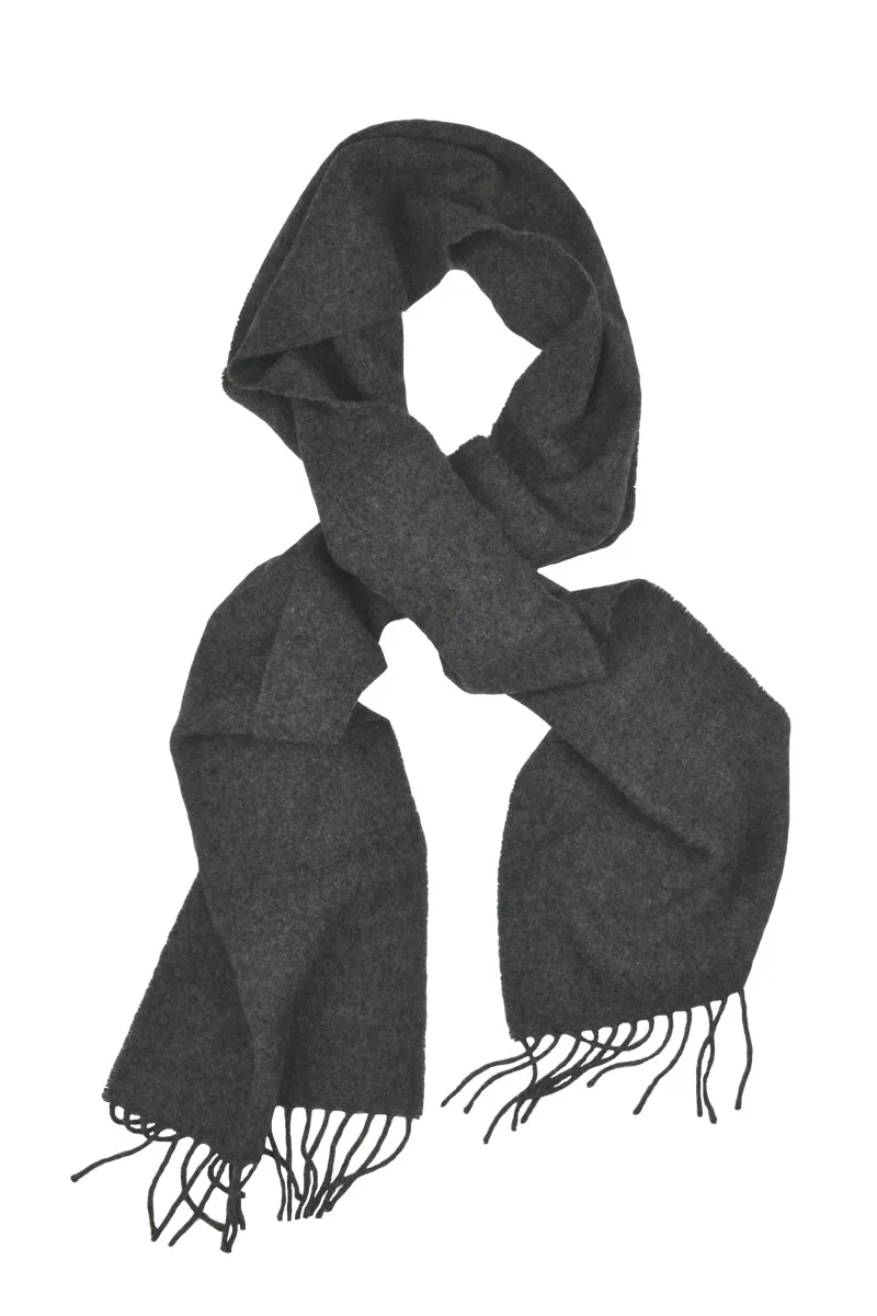 Stay warm in this soft Scottish lambswool scarf. This classic mid grey woven scarf is of the highest quality.