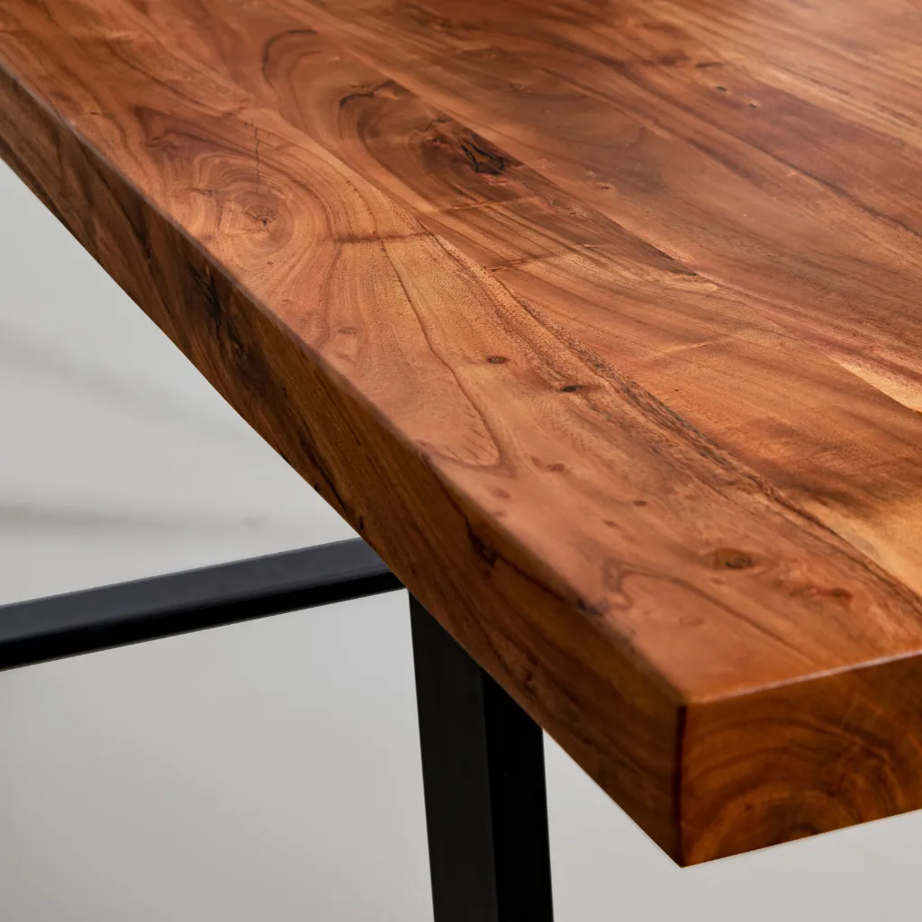Each solid natural Acacia table slab is truly one of a kind and every bit as unique and beautiful as you are. The colour and character of the wood grain may vary a little, and natural cracks and fissures may develop with changes in humidity and temperature, this is a natural characteristic of solid wood furniture. This means your piece is developing a unique personality and character, and over time it will become a well-loved part of your home and family.