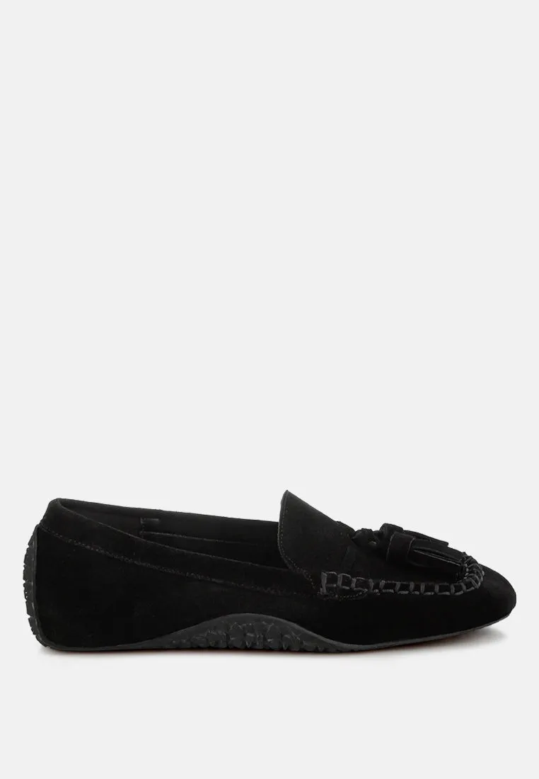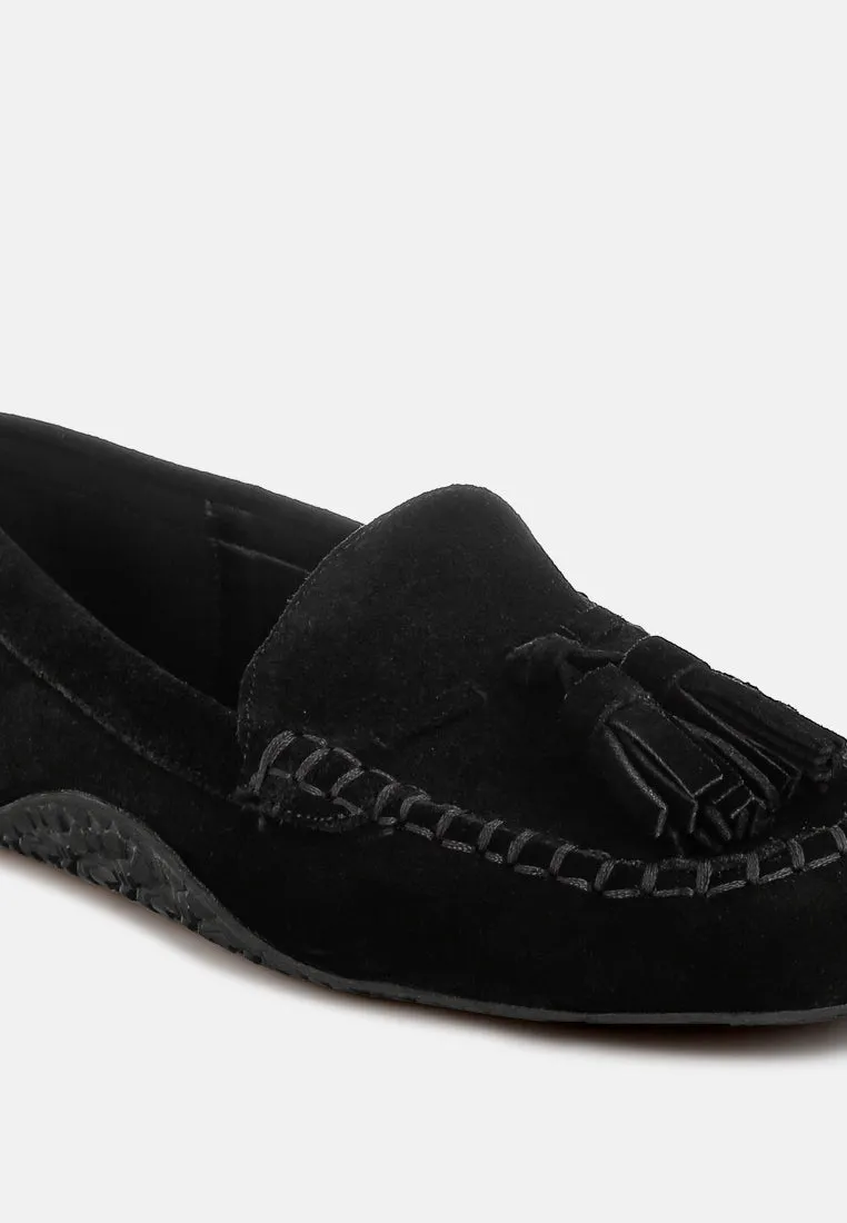 To perfectly complement your outfits, we present this pair of suede loafers that blend comfort and style. Expertly crafted and designed for easy wear, the tassel-embellished loafers are the ideal choice to enhance your most basic outfits.
