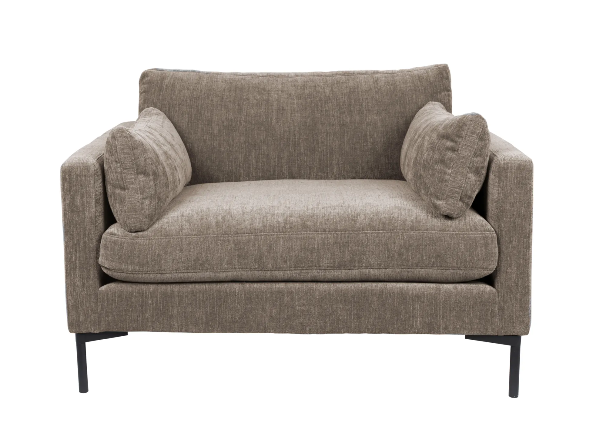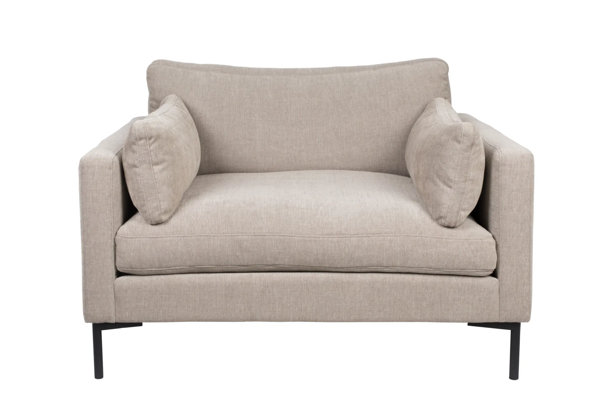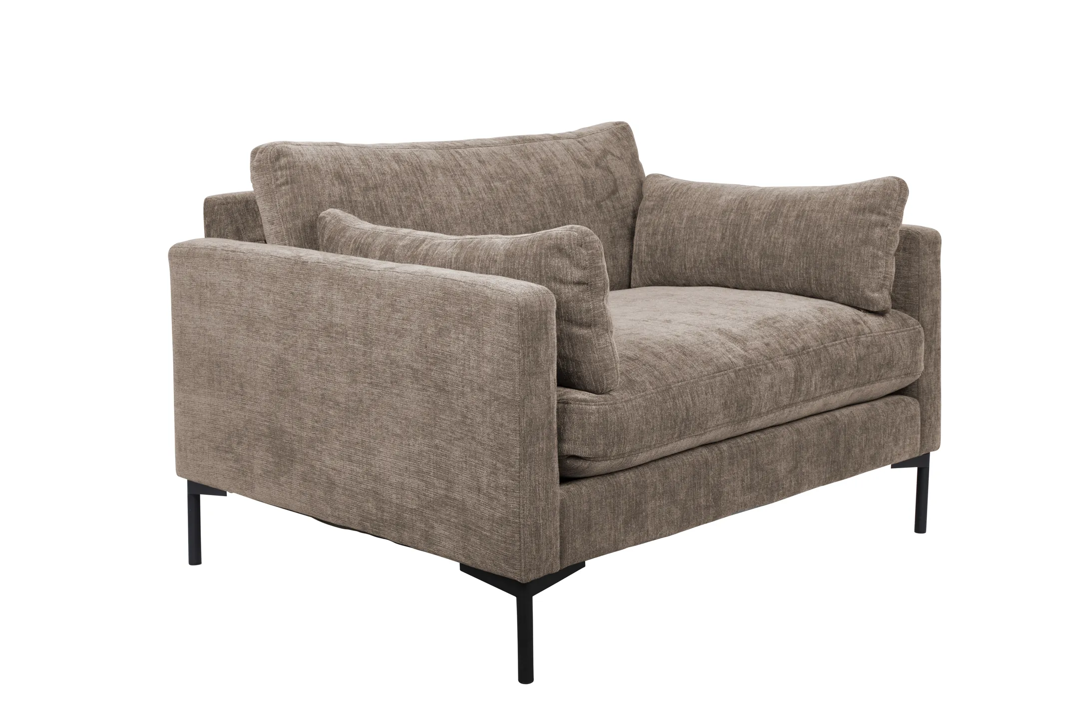 This chair measures 101x125x82 cm and is made of mixed fabric upholstery ( 65% polyester, 35% acetaat), High resilient PU foam, no-sags suspension.