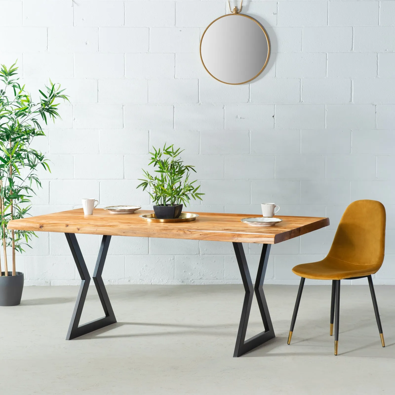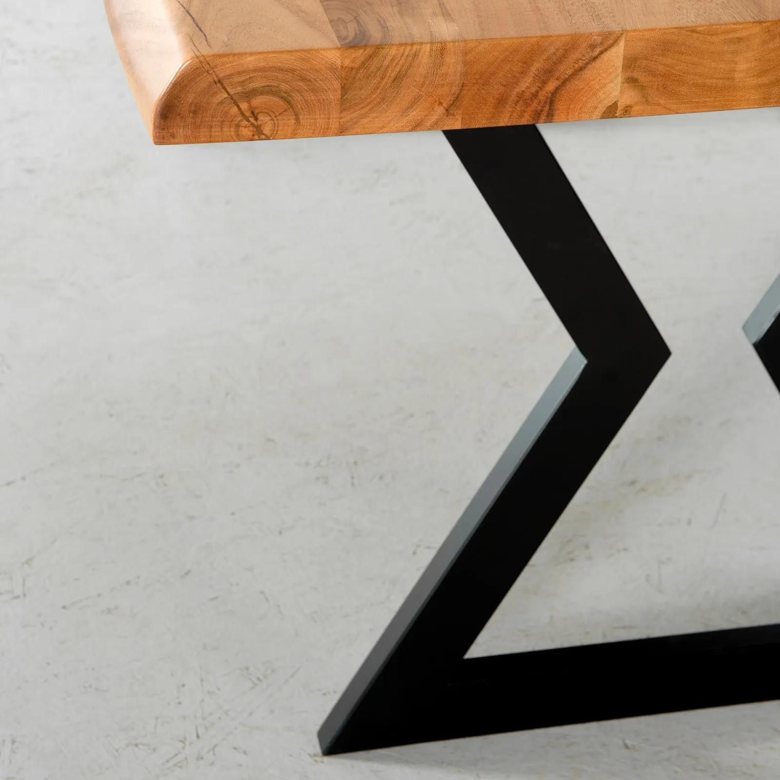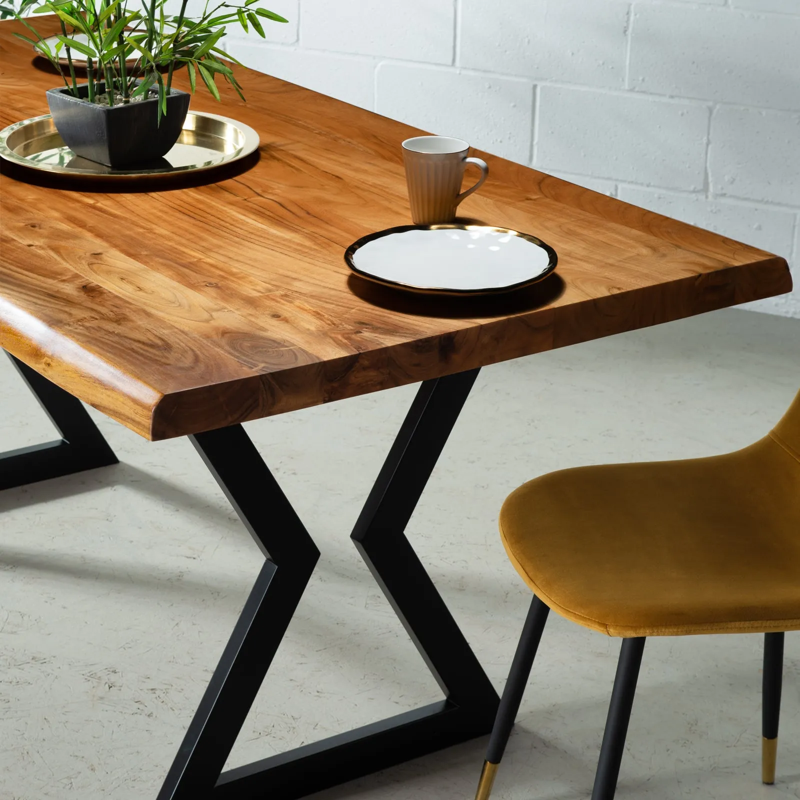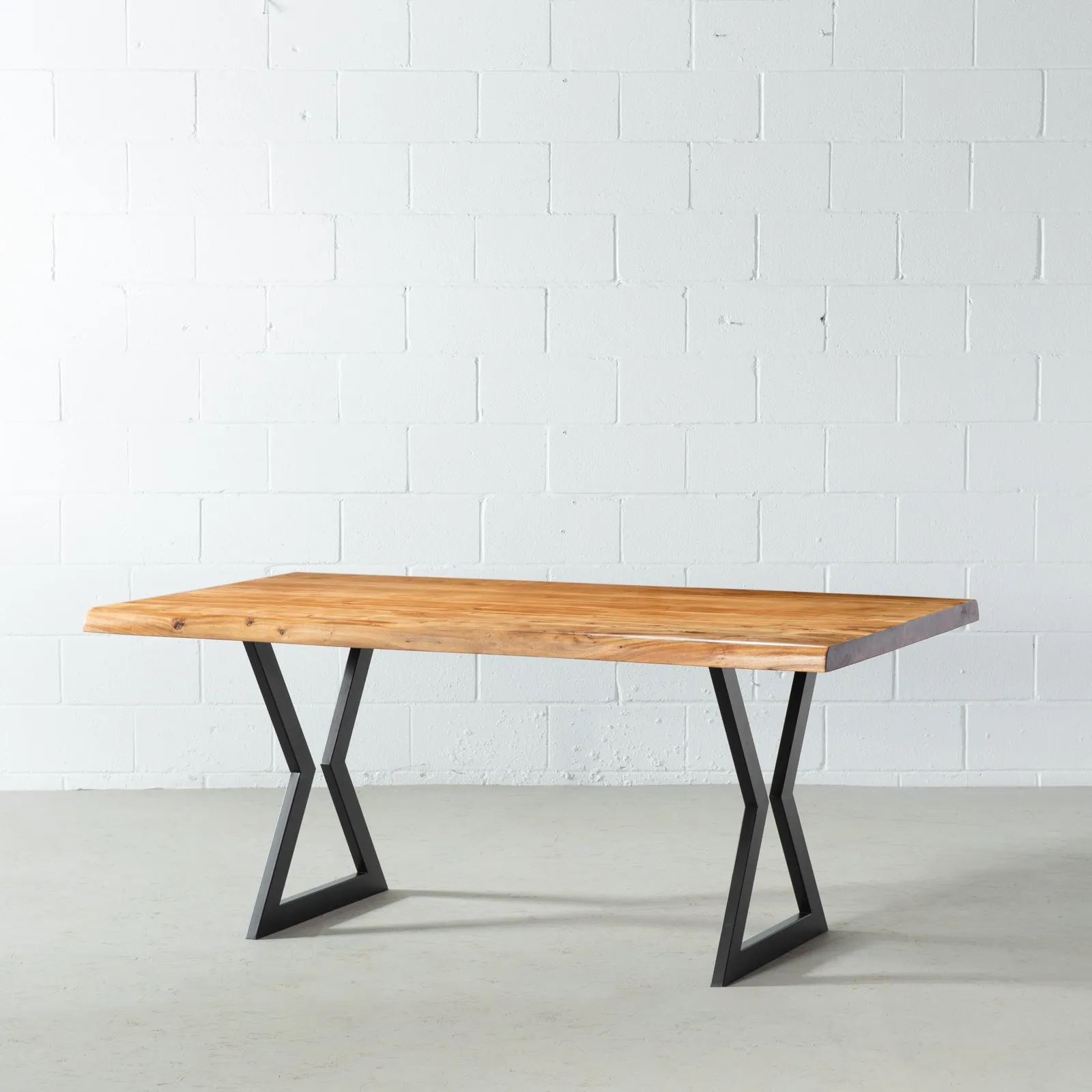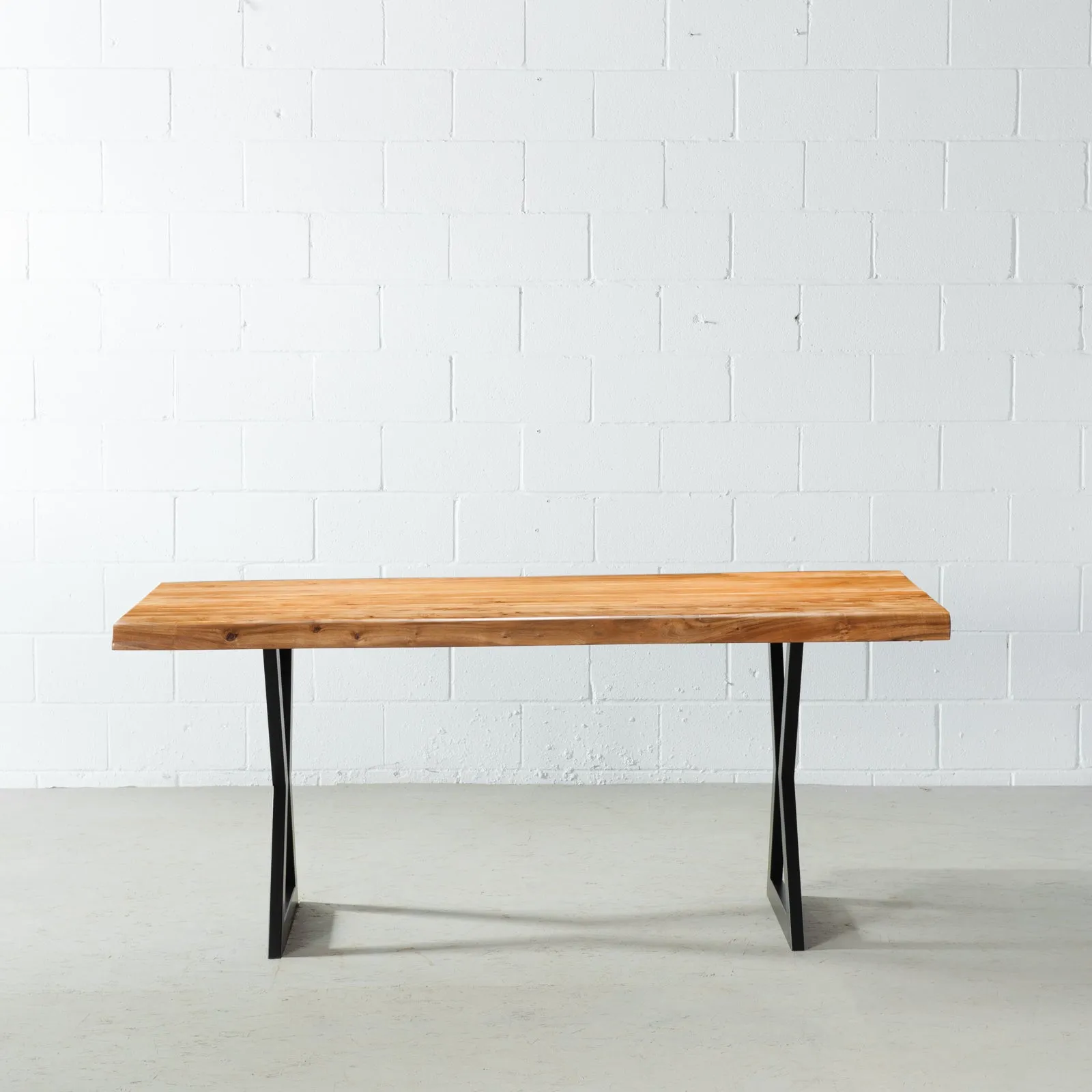 Each solid natural Acacia table slab is truly one of a kind and every bit as unique and beautiful as you are. The colour and character of the wood grain may vary a little, and natural cracks and fissures may develop with changes in humidity and temperature, this is a natural characteristic of solid wood furniture. This means your piece is developing a unique personality and character, and over time it will become a well-loved part of your home and family.