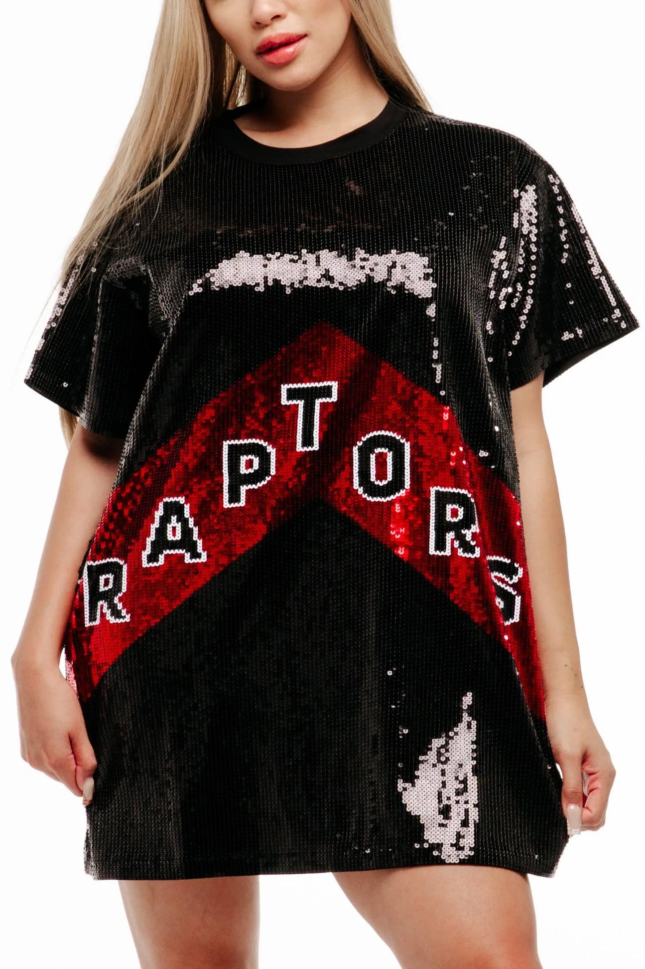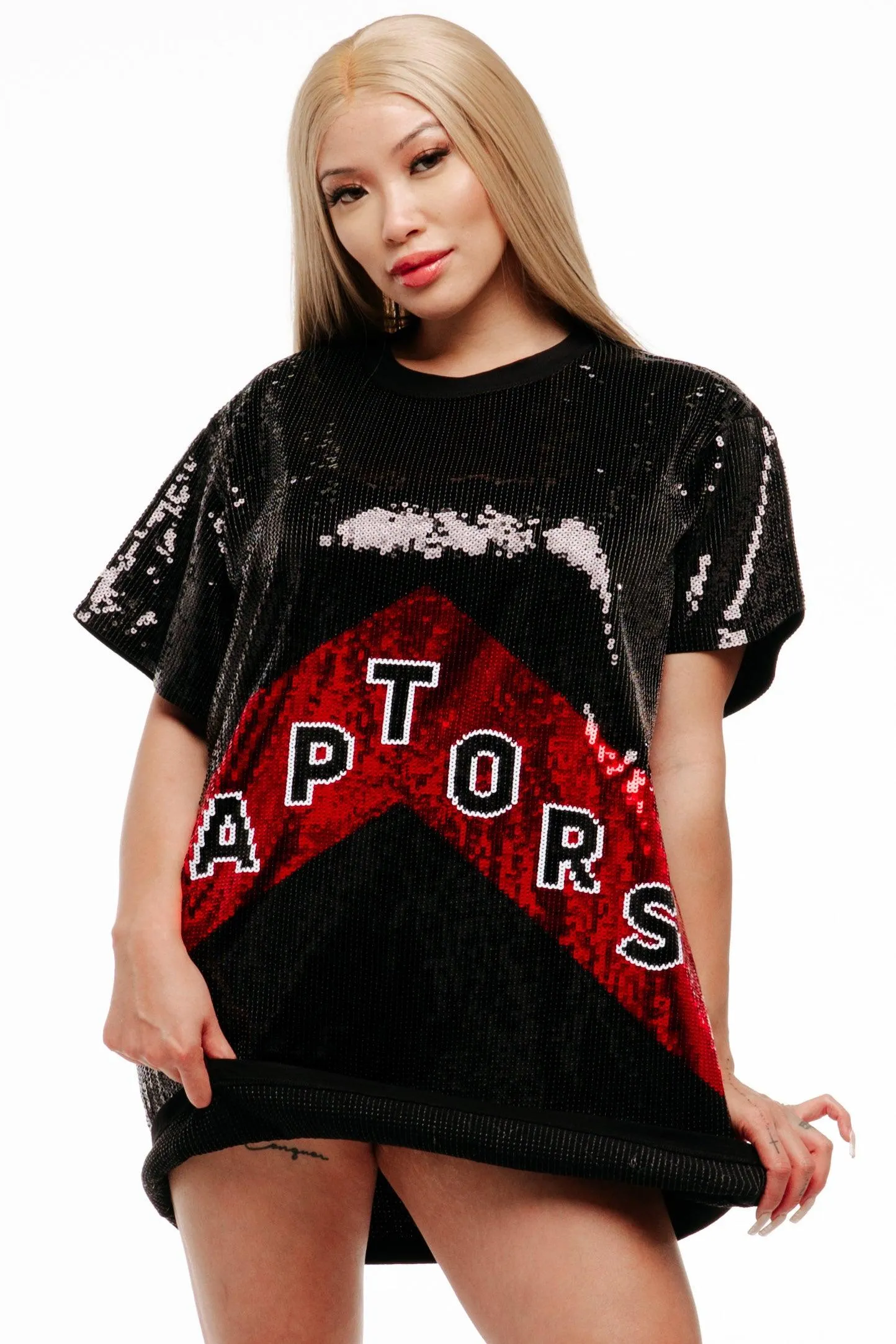Designed by the Sequin Fans brand, this stunning Toronto Basketball Sequin Jersey Dress beautifully showcases your love for the Toronto Basketball team. Step into the stadium or into any game day party with confidence and style with this sports glam basketball jersey dress, perfect for parties that go from day to night.