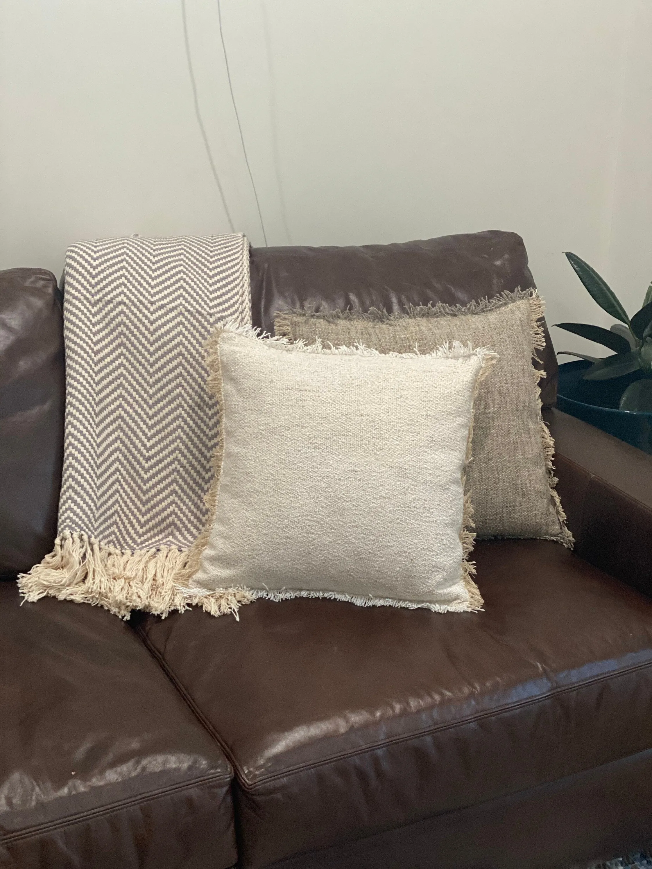 Bring home the relaxed design pillow accented with frayed edges decor cushions, made from super soft, comfortable yet heavy weight linen fabric. Invisible zipper closure and fancy handmade fringes on all four sides, compliment with outdoor & indoor setting. Perfect to mix & match with all colors. The cushion cover is easy to maintain. Preshrunk. the more you wash the better it gets.