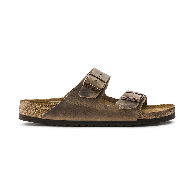 The BIRKENSTOCK Arizona is a genuine classic. This individually adjustable unisex two- strap sandal is now available in a casual version in oiled nubuck leather. The soft leather features an open selvage finish, emphasizing the handcrafted and natural look of these stylish sandals.